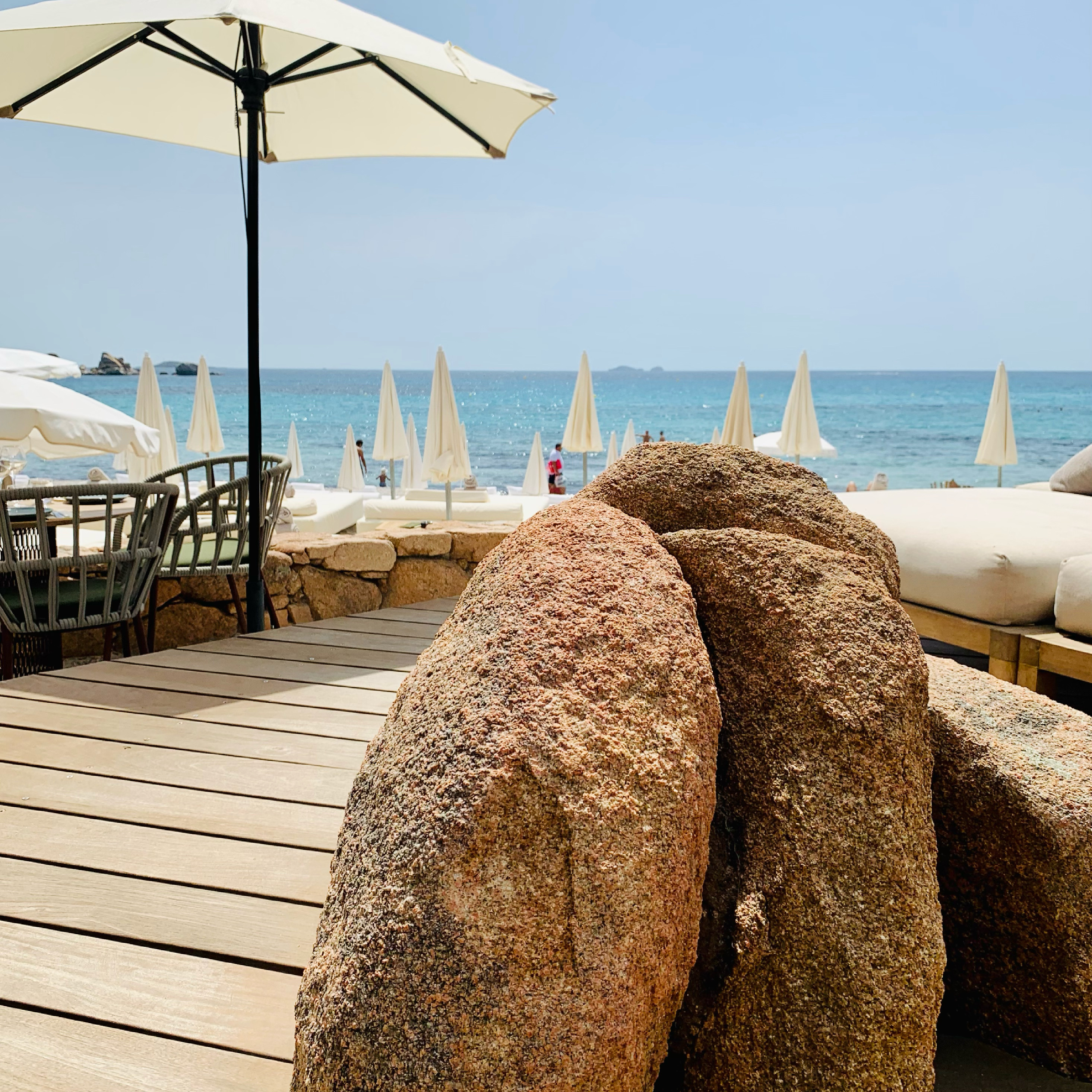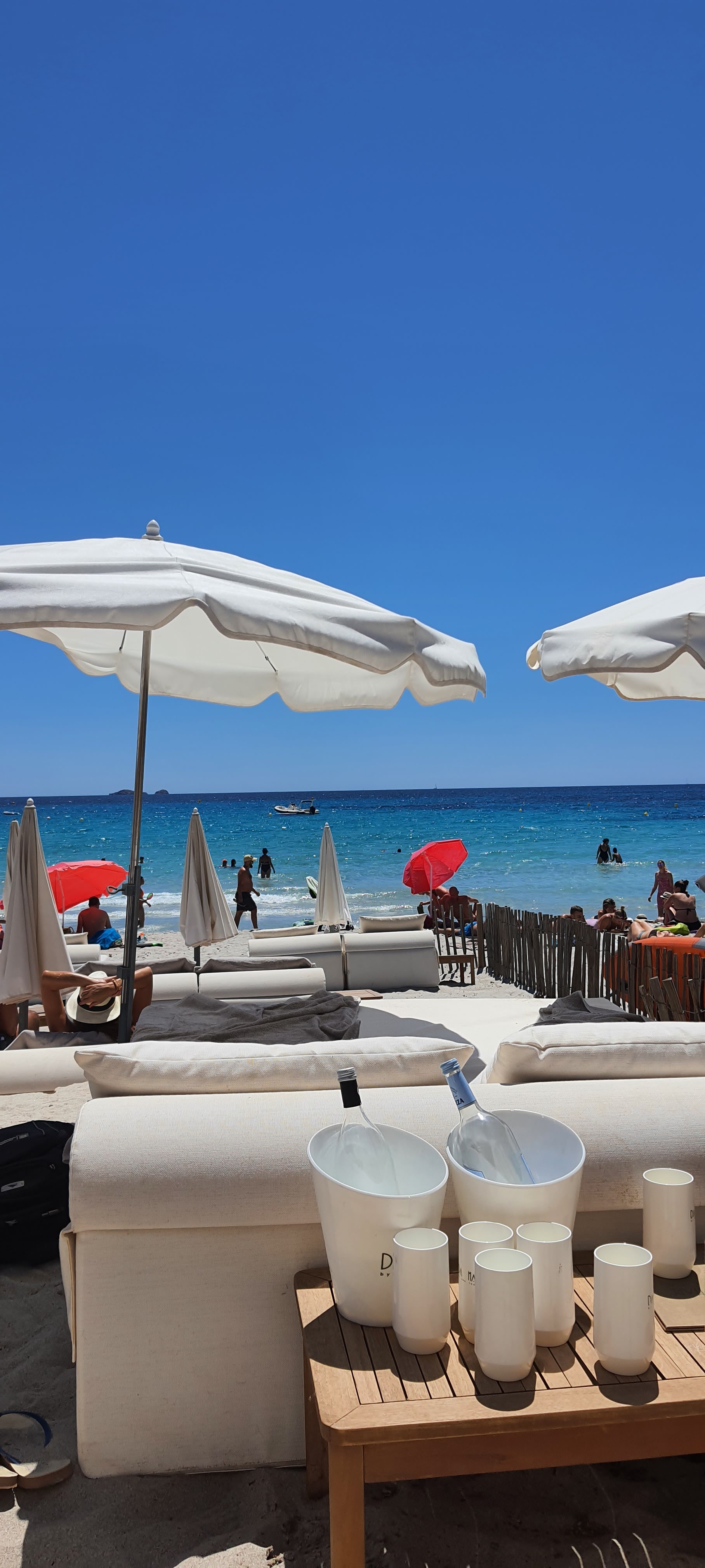 Bar-restaurant en bord d’une plage sublime, eau turquoise. Les doubles transats sont à 70€ (sans prix dégressifs en fin de journée… donc si vous venez à 16h c’est meme tarif qu’à 9h du matin…) Le service est très gentil et efficace, c’est très beau et chic, les cocktails sont bons. On se croirait à St Trop, Ibiza ou Mykonos.