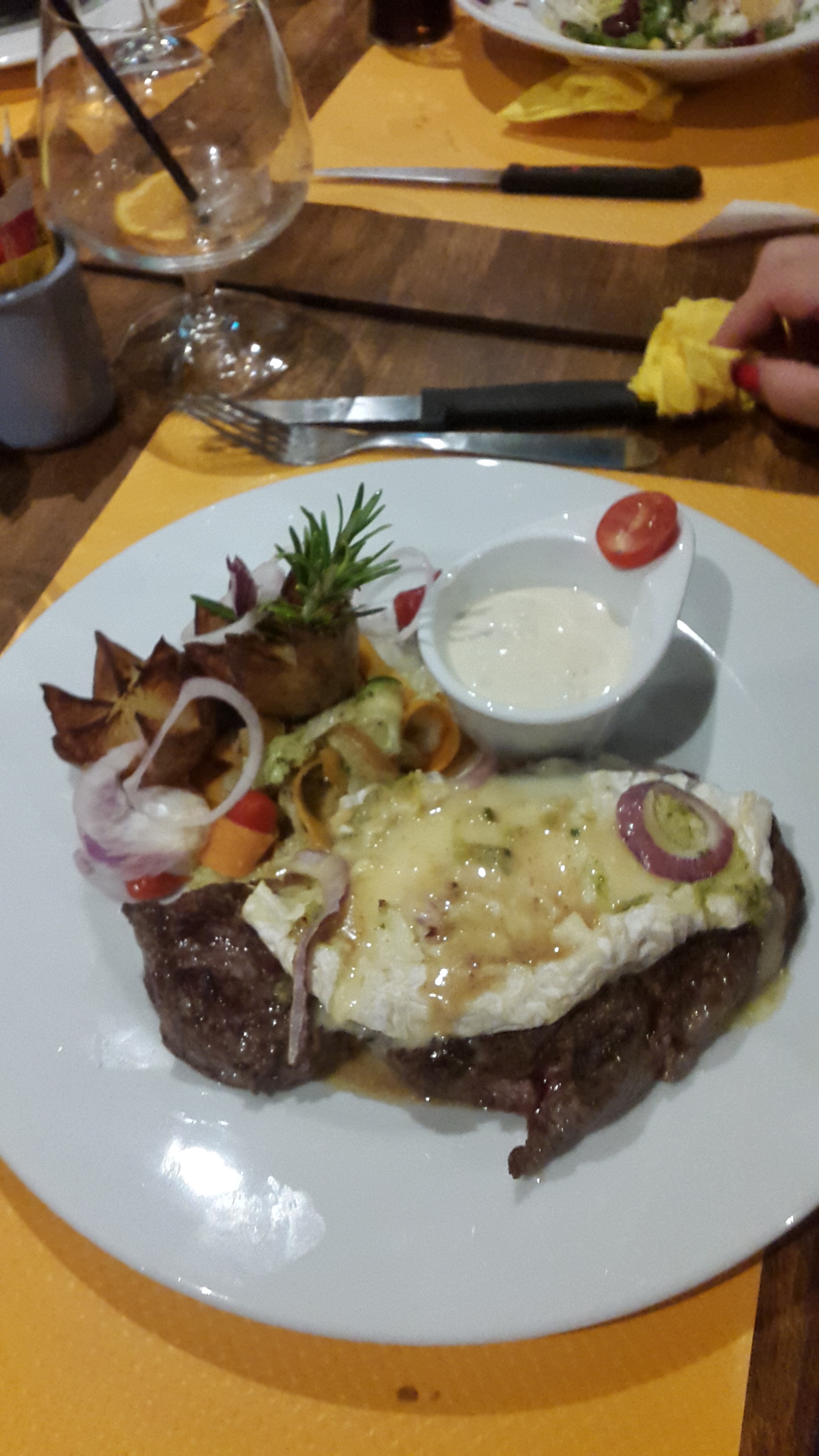 Très bon accueil, la serveuse était sympathique. Le repas était bien copieux et bon (magret de canard et pièce du boucher). Dommage de faire payer 2 euros pour le supplément de sauce.