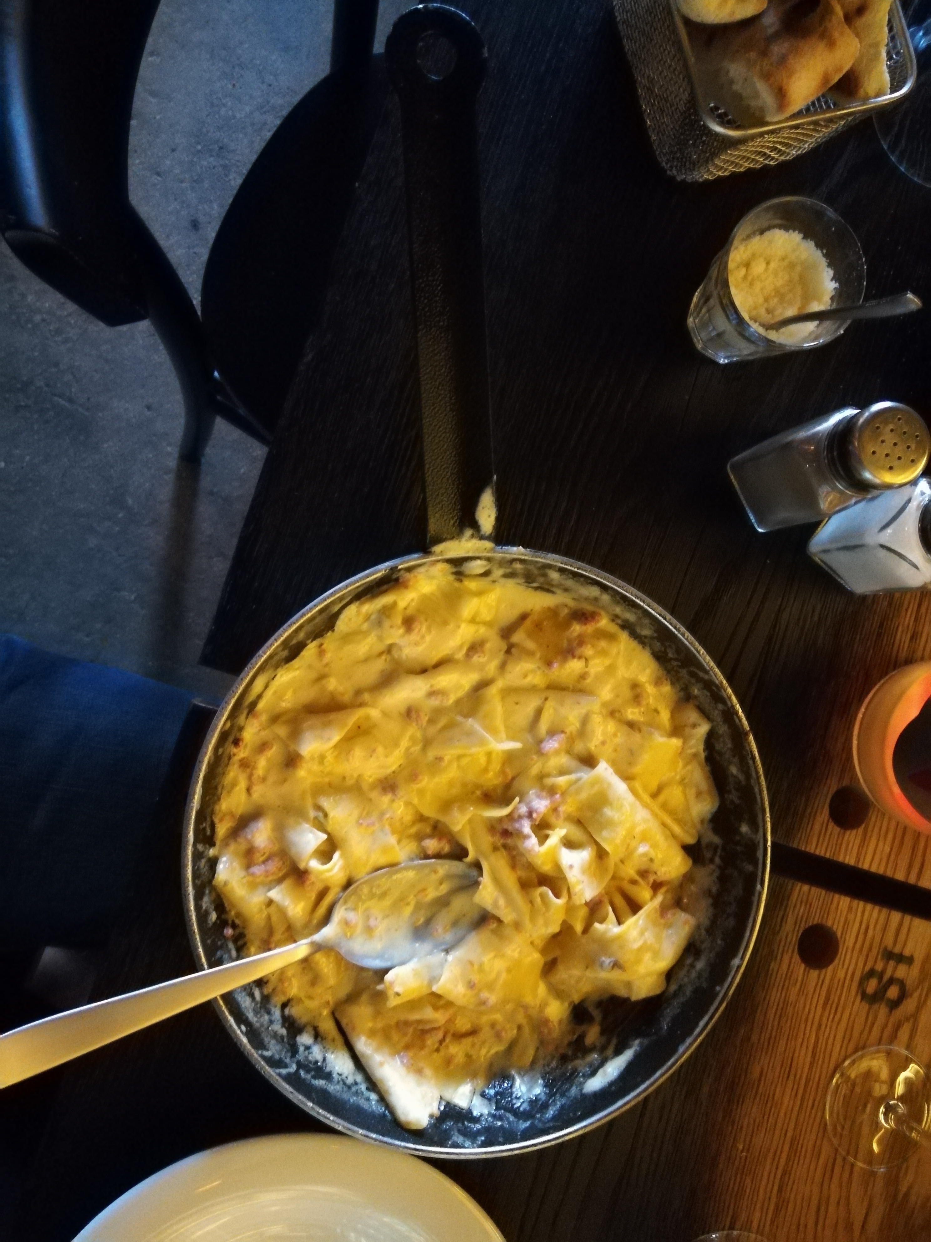 Ambiance sympa. De bonnes pizza pour ma part. Les pâtes sont servies à même la poele. A recommander