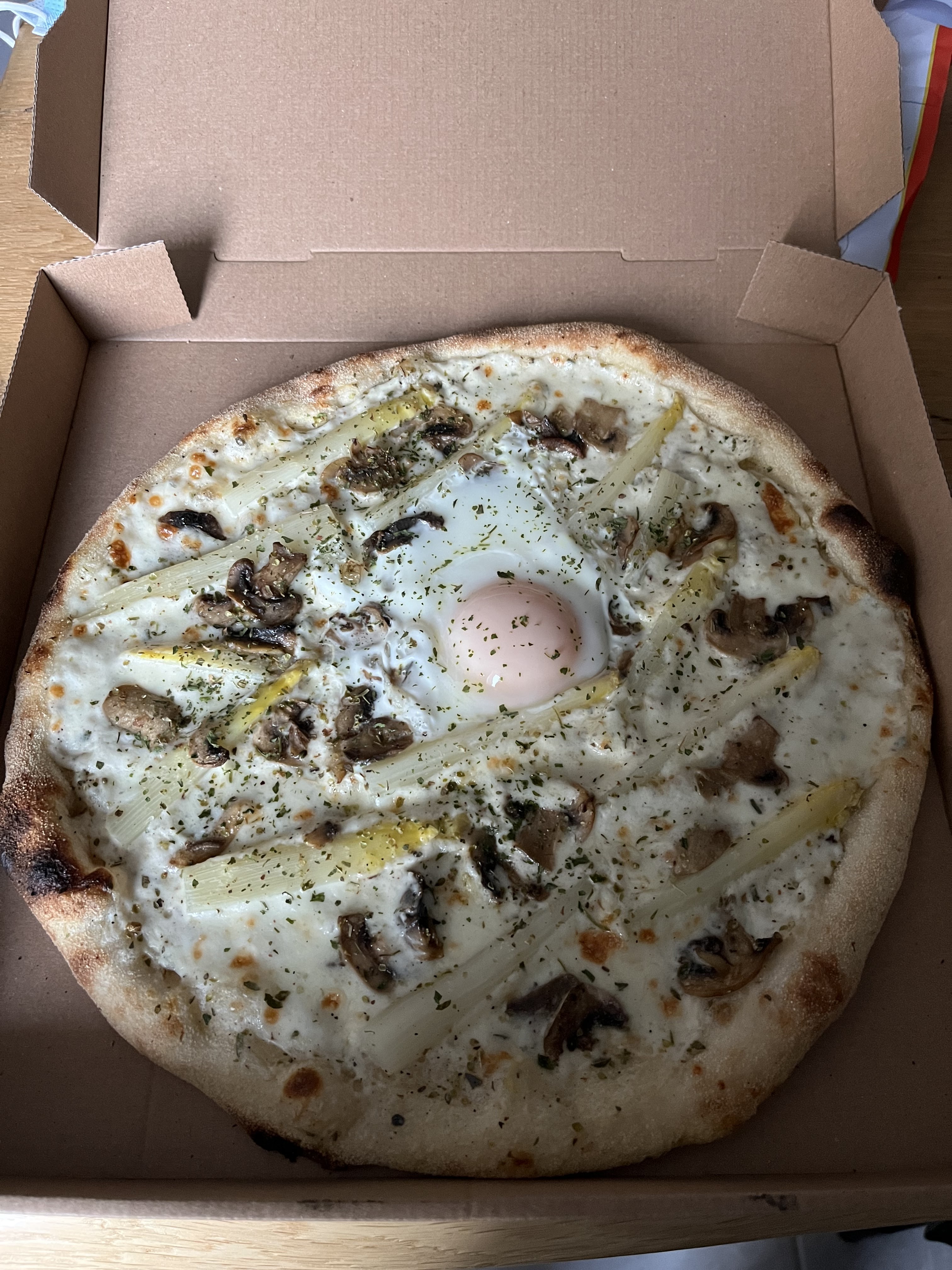 Client depuis le début, tous les mois ils nous proposent une pizza dites du « Mois » Ce mois-ci c’est « Asperge » ! Une tuerie ! La pauvre elle n’aura survécu qu’une petite vingtaine de minutes ! Je vous recommande aussi bien Da Mimmo pour les pizzas que pour le personnel ! Miam 😋