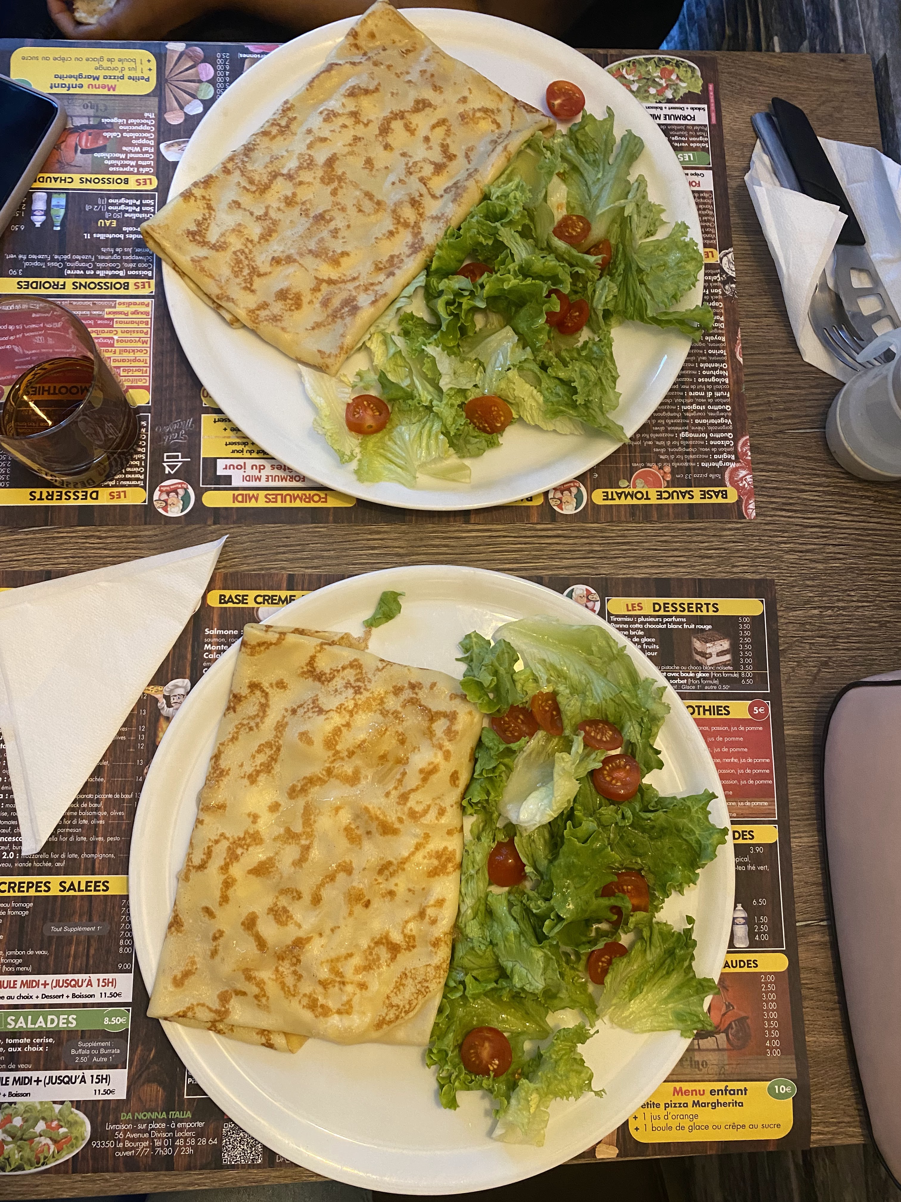 Ils sont top ! J'ai pris une pizza et en dessert une crêpe au Nutella - rien à signaler. Le restaurant est propre, très bon accueil du personnel. Il était seul mais il a préparé plusieurs plat. C'est dommage que l'attente était dû au manque de personnel. L'ambiance parfait. Je suis venu avec les amies, c'était agréable. Bonne continuation Je reviendrais pour d'autres plats!