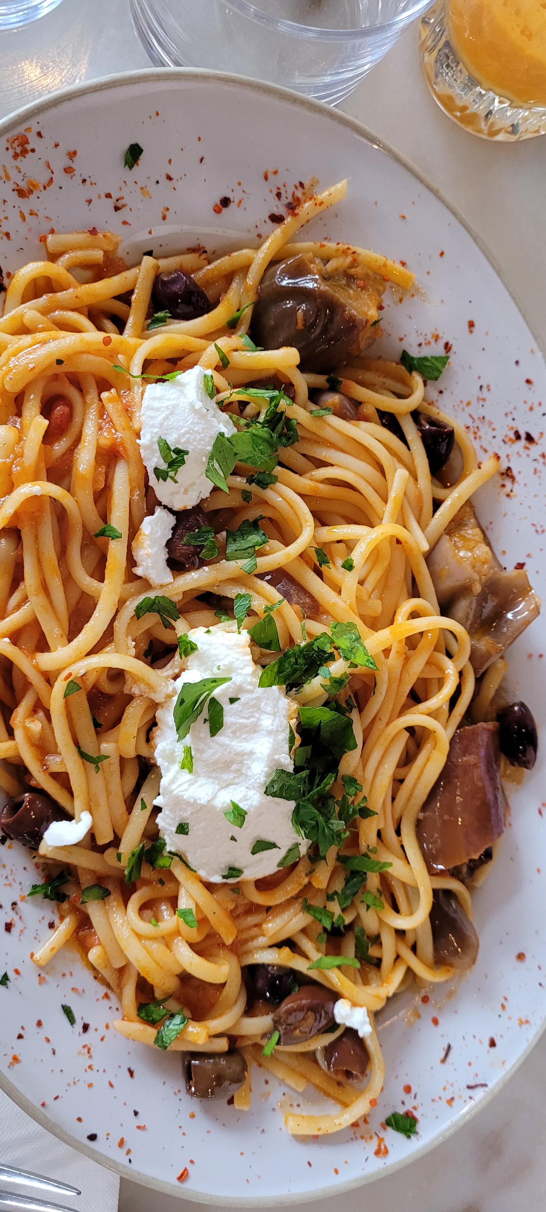Nourriture délicieuse, service sympathique, bonne musique, t-shirts sympas. L'artichaut grillé était excellent.