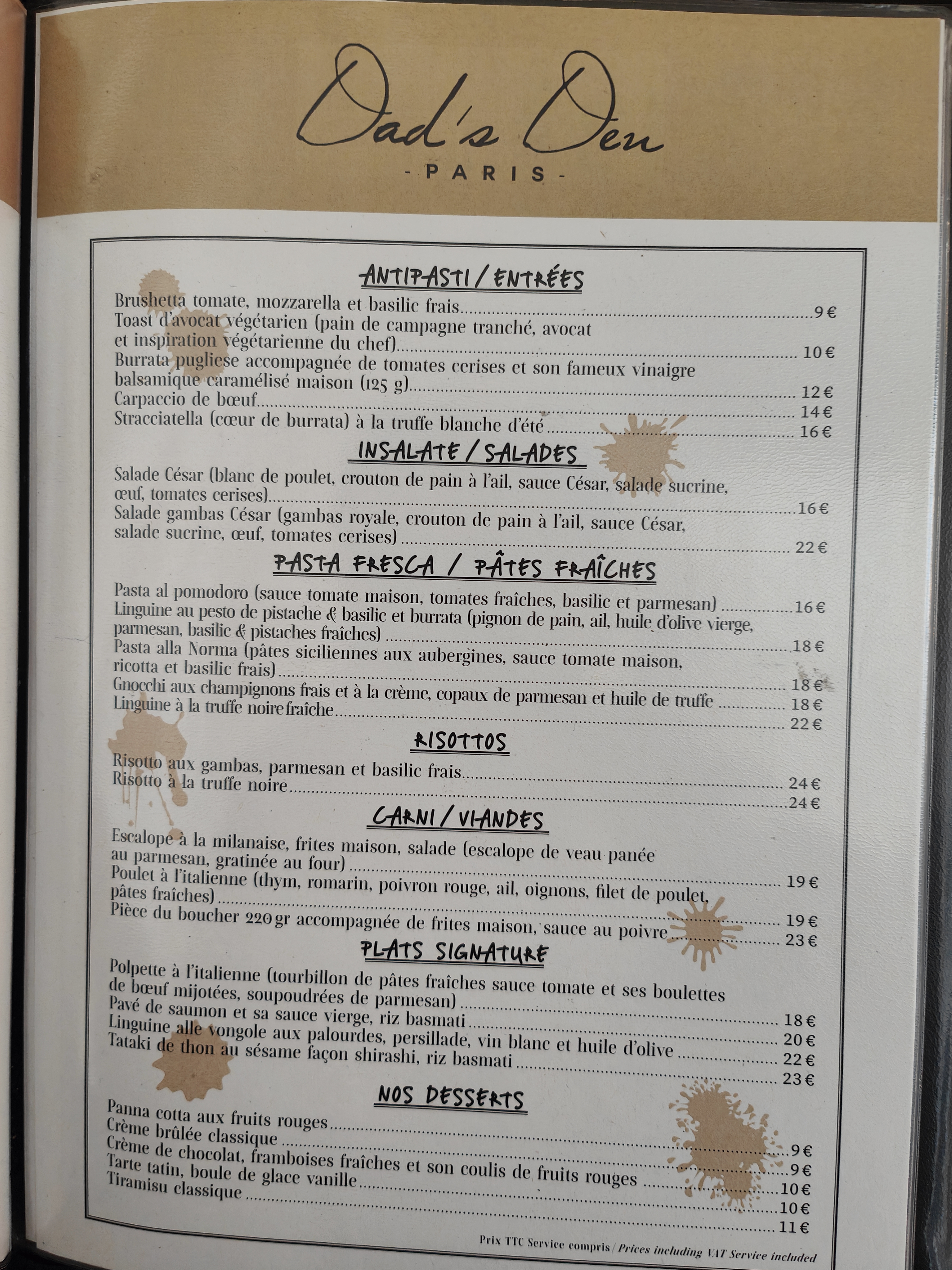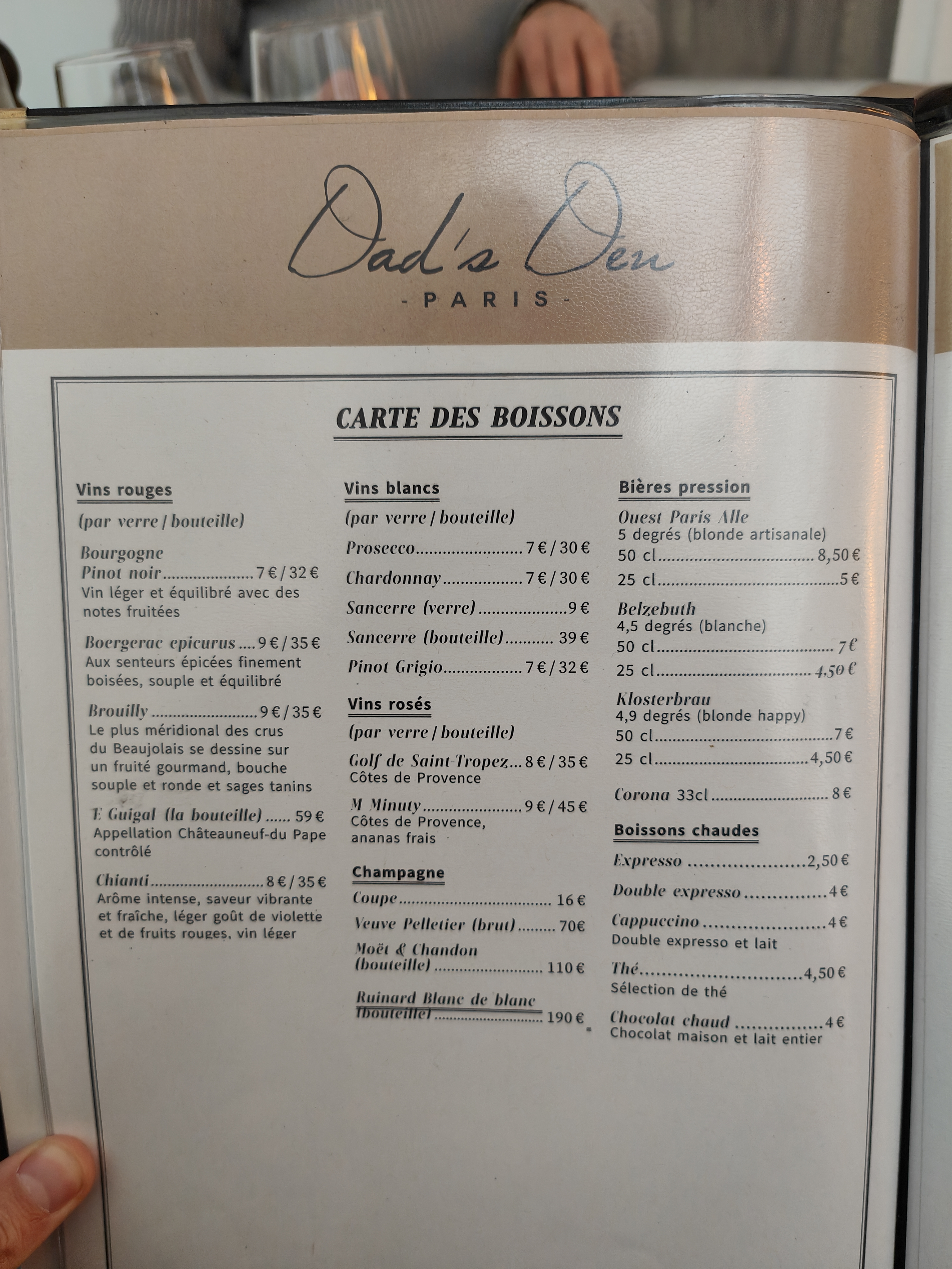 J ai déjeuné chez Dad's Den ce midi. Le cadre est agréable, le service est très bon (serveur très sympathique et les plats sont servis rapidement) et la nourriture est très bonne ! Par ailleurs, le resto est très bien situé dans Le Marais. Je le recommande donc sans hésitation :-)