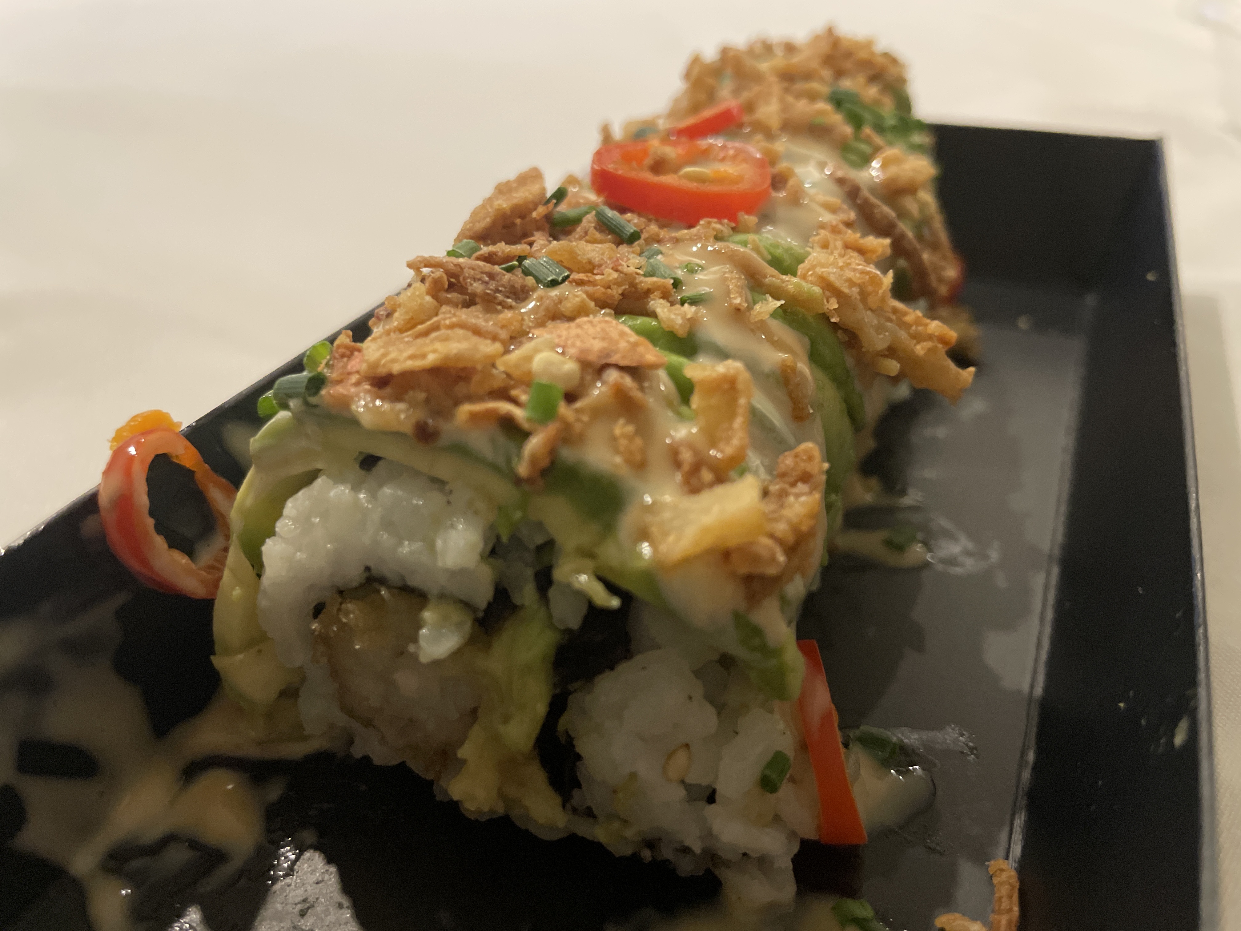 Plat prit à emporter car je vis a l’opposé dans la ville mais contente d’avoir ce nouveau restaurant moi qui adore les saumons rolls cheese! Copieux et bon merci !