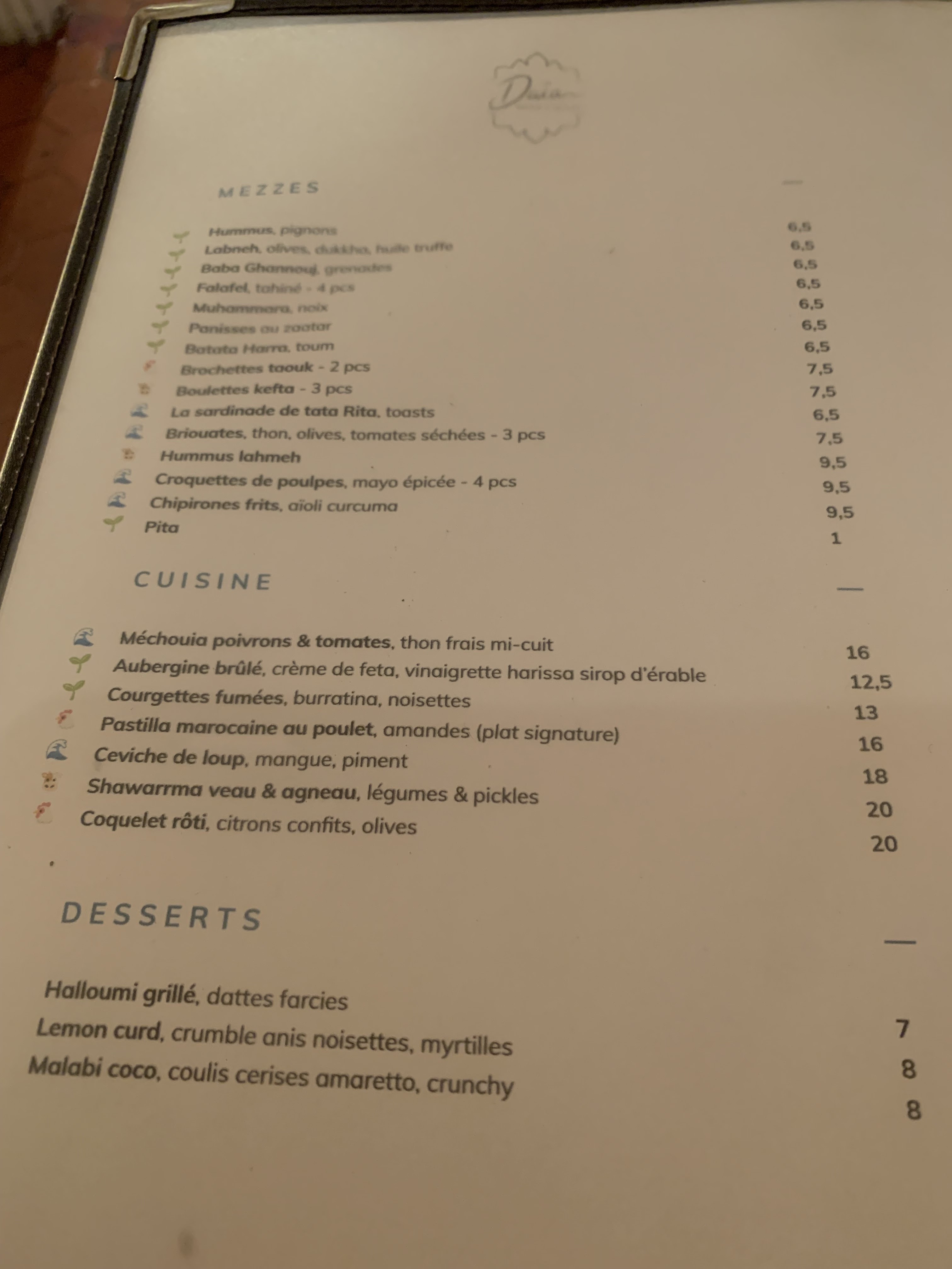De passage à St Jeannet, nous avons eu la bonne idée de nous laisser tenter par le Daia. De l'accueil, au service, en passant par la vaisselle et, surtout, la nourriture, c'est un sans faute. Les mezze sont tous (en tous cas les 5 que l'on a testé) délicieux et le dessert (fraise pistache) au top. Restaurant à essayer si vous êtes dans la région !