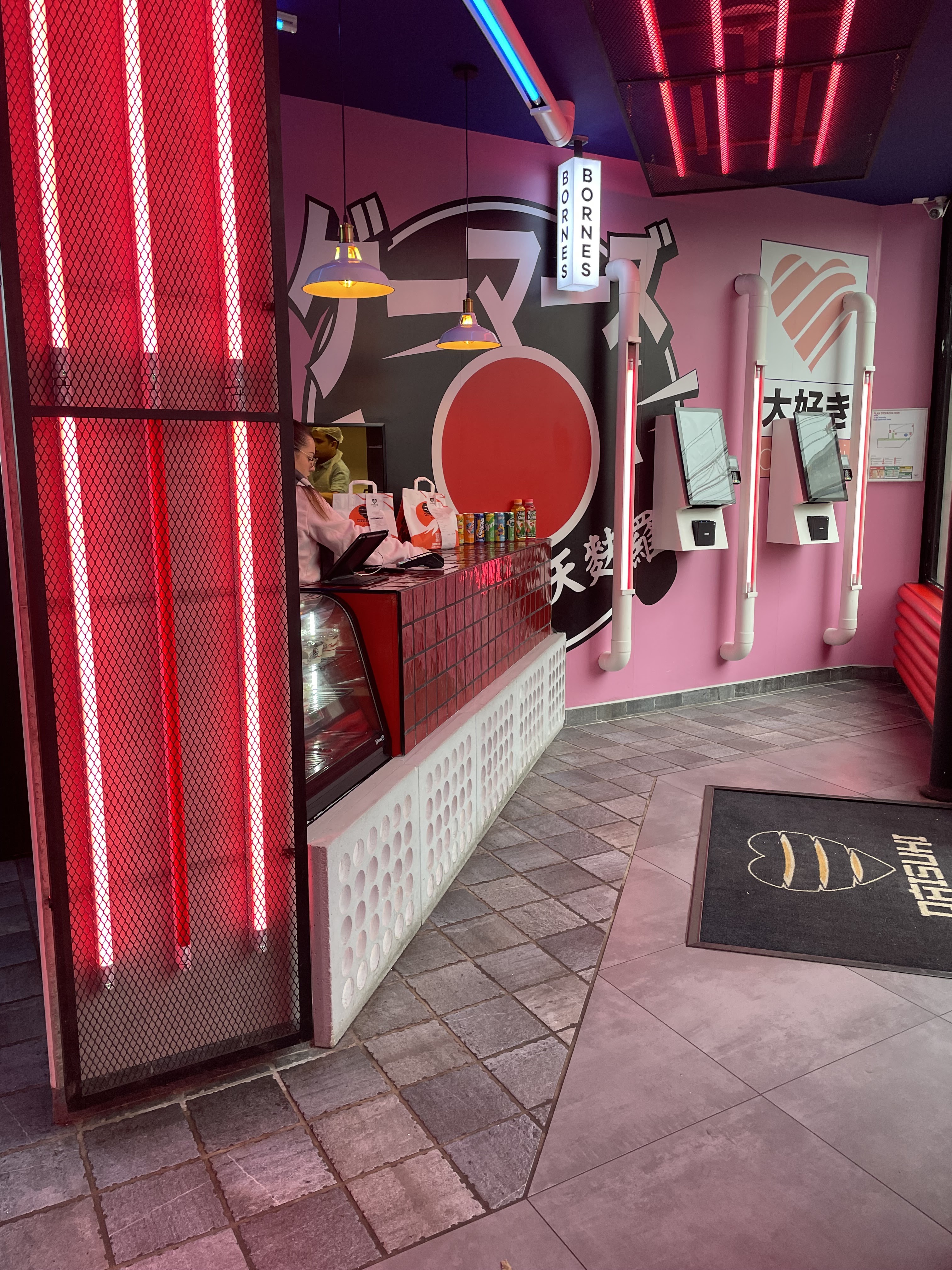 C'était ma première fois dans ce restaurant. La décoration est réussie avec une ambiance nippone omniprésente. Le personnel est agréable. Les bornes dédiées pour les prises de commande sont compliquées. La navigation n'est pas très intuitive et ça a le mérite d'agacer le client. Côté cuisine : je n'ai pas aimé la soupe, trop persillé. Les sushis n'étaient pas bons: arrière goût du poisson, riz très dur. La sauce sucré était particulière. Les brochettes baignent dans une sauce bizarre sur une feuille de salade. Les brochettes de poulet sont pas oufs. Bref j'ai été extrêmement déçu malgré l'effet whaou à mon arrivée.