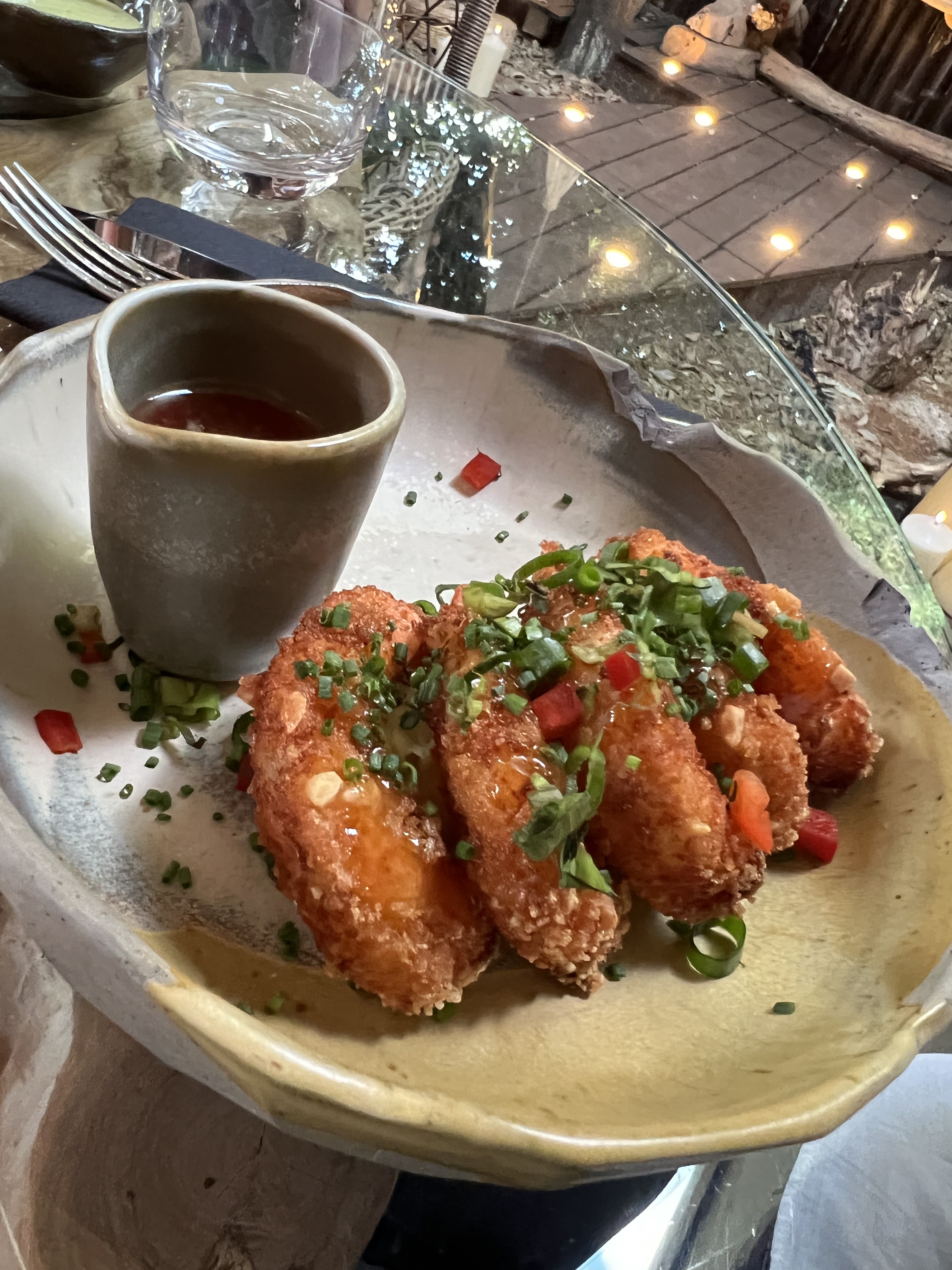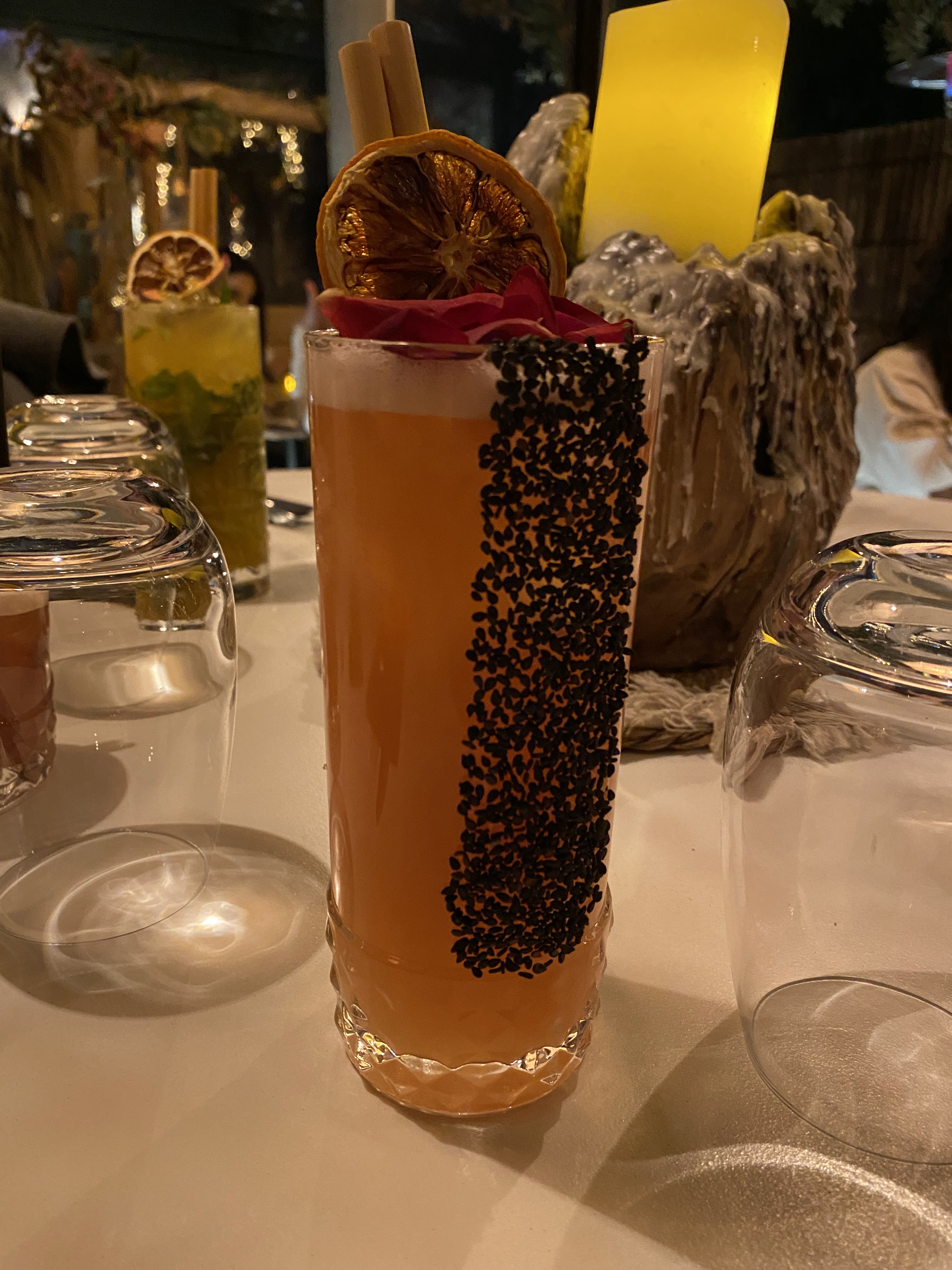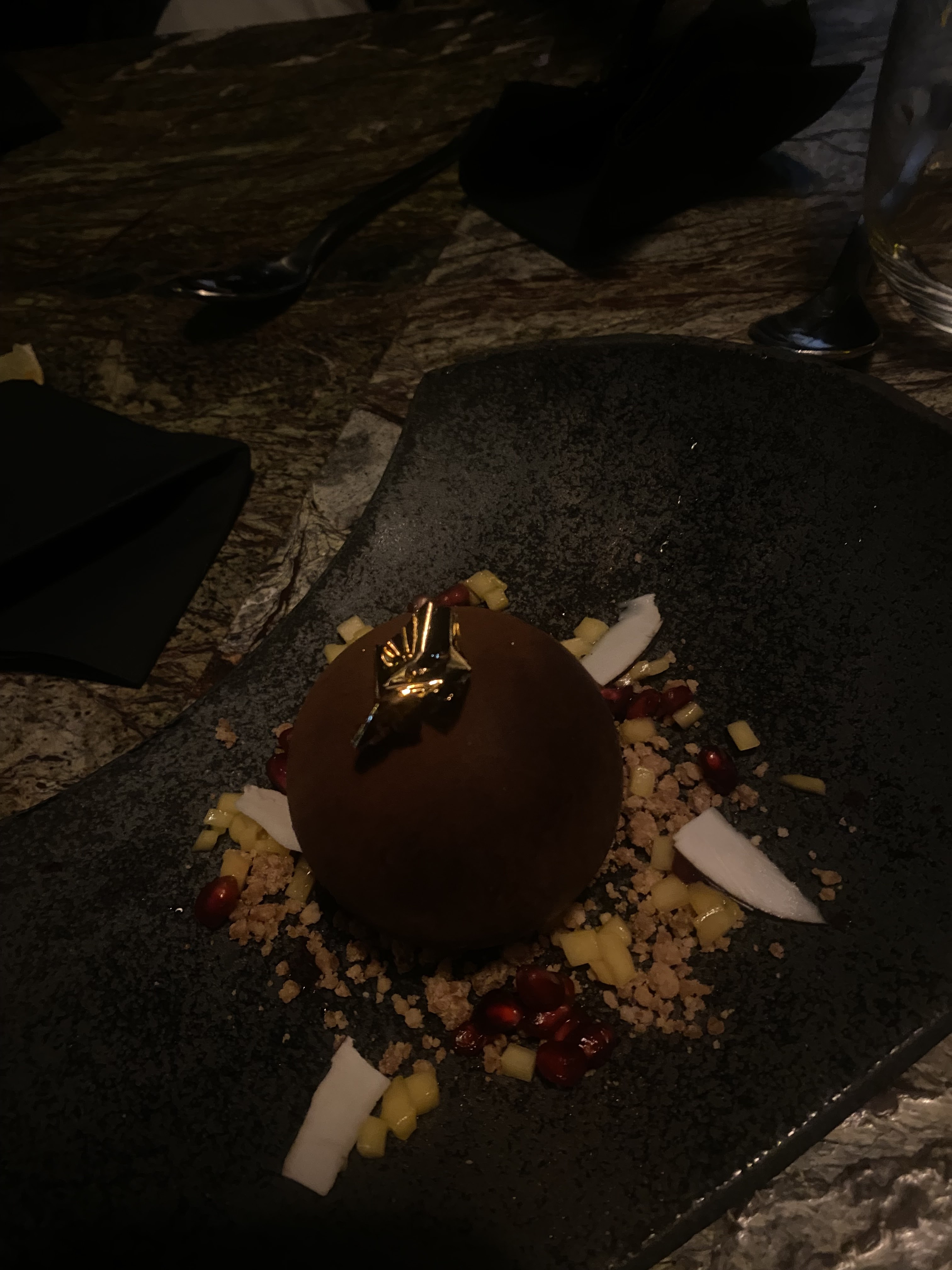 Le décor est très beau , malheureusement les plats manque de saveur, dommage que l’on mange dans le noir et que l’on ne puisse pas s’entendre à cause de la musique