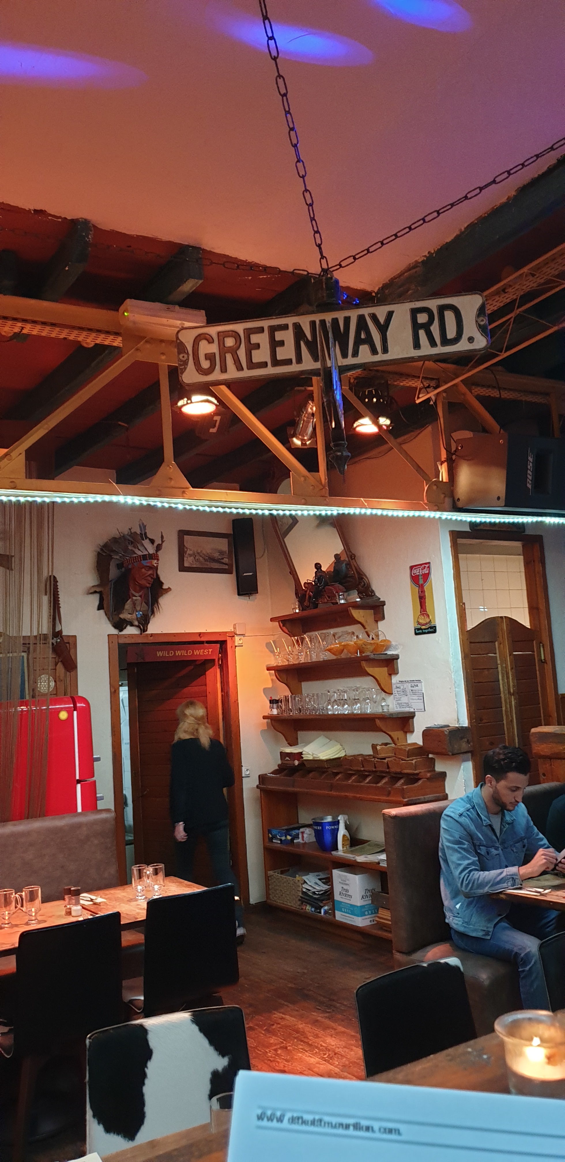 C'était notre première dans ce restaurant, ambiance western niveau déco, nourriture excellente, service au top, et ambiance garantie, le patron est très sympathique, il met des musiques pour l'ambiance et d'autres choisi par les clients pour le karaoke. Une très belle soirée, merci.