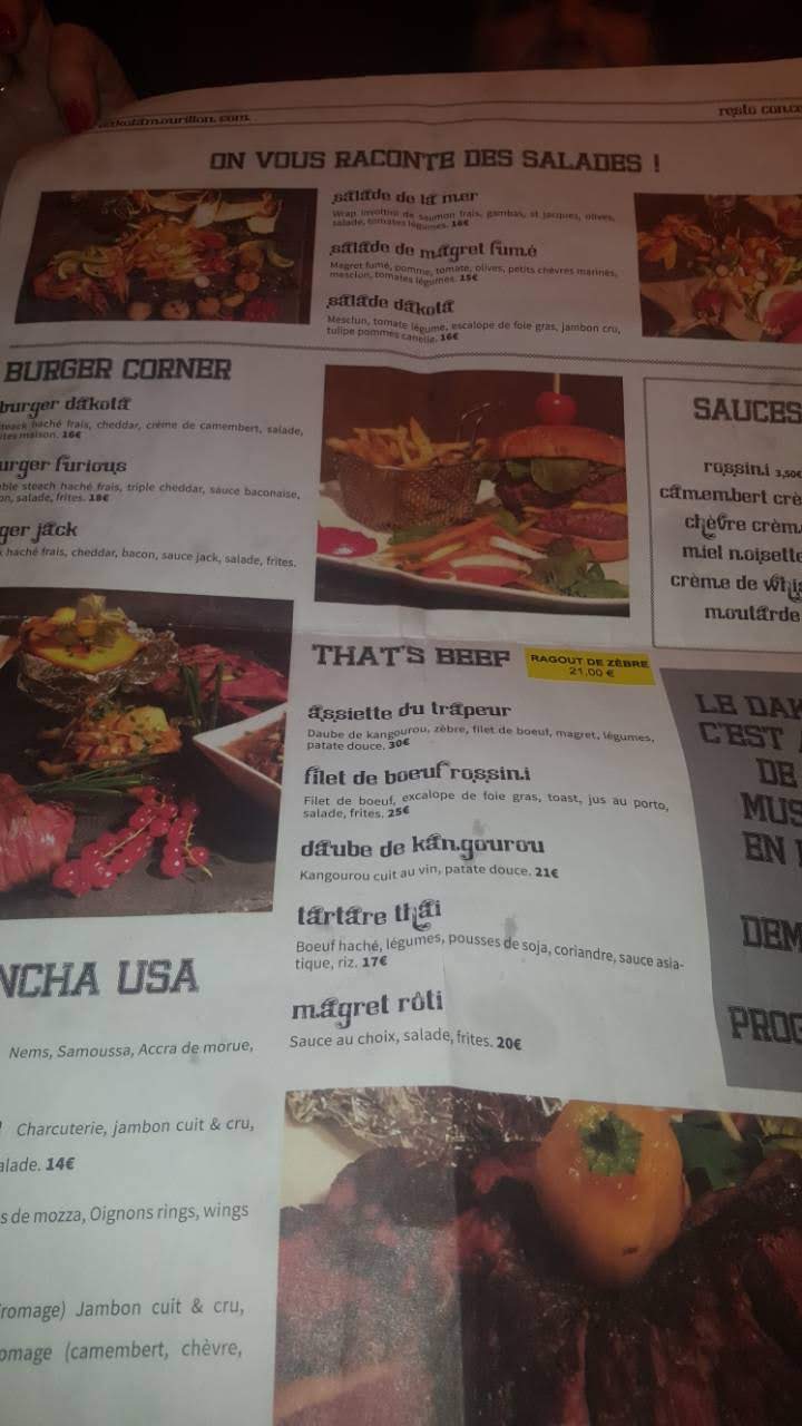 Un gérant au top, un kangourou au top, de la très bonne viande pour les amateurs de viandes ! Une quantité incroyable !!! Des profiteroles excellentes et en quantité ! Et en plus une bonne ambiance avec un petit plus pour l'animation pour mon anniversaire !! Je recommande vivement, et lâchez vous 😘