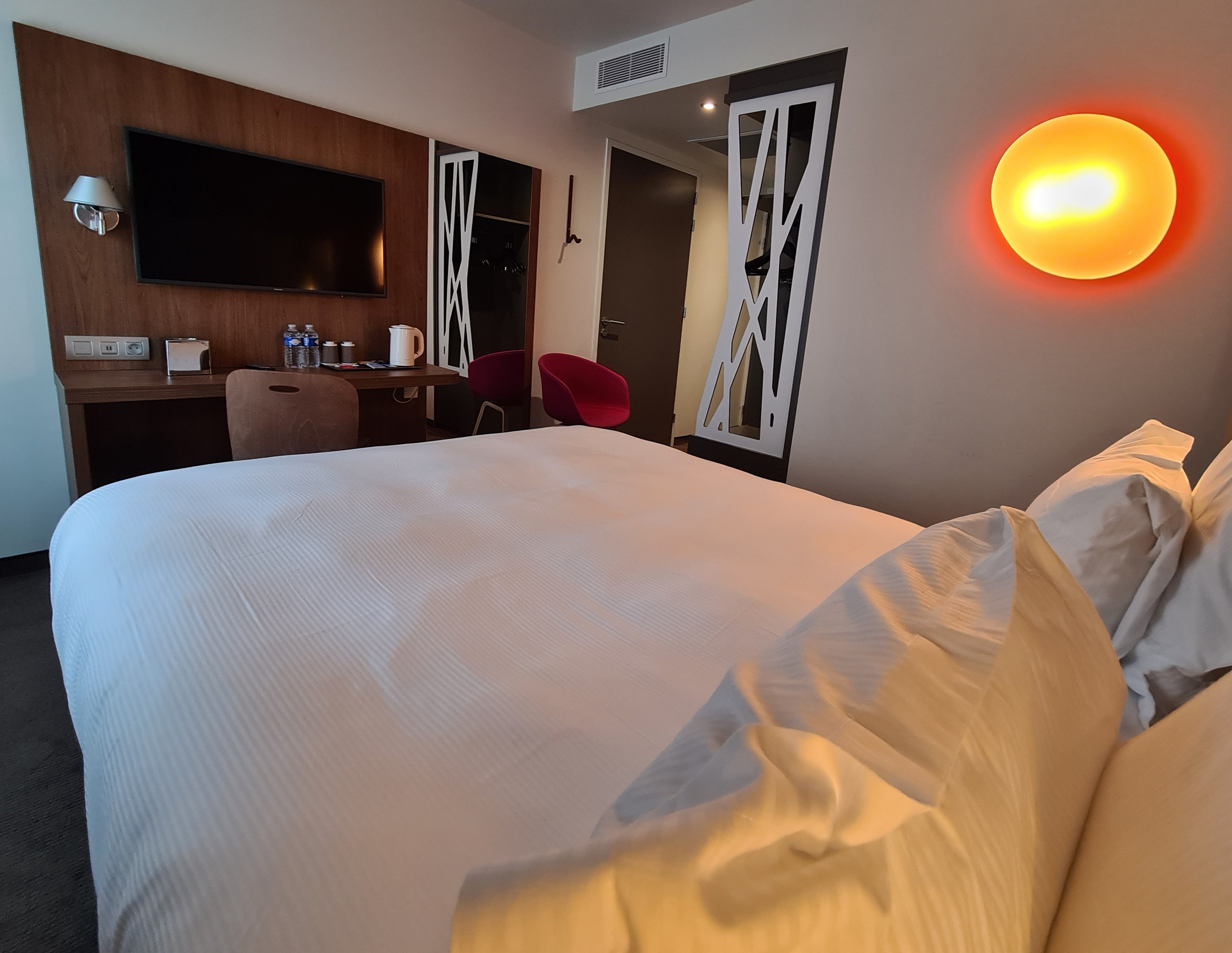 Espace d'accueil chaleureux. Chambre très confortable et propre. Bonne literie. Personnel aimable. Wifi opérationnel. Très bonne situation : à proximité du palais des congrès et du centre ville. Petit bémol sur la restauration qui est un peu cher à mon avis.