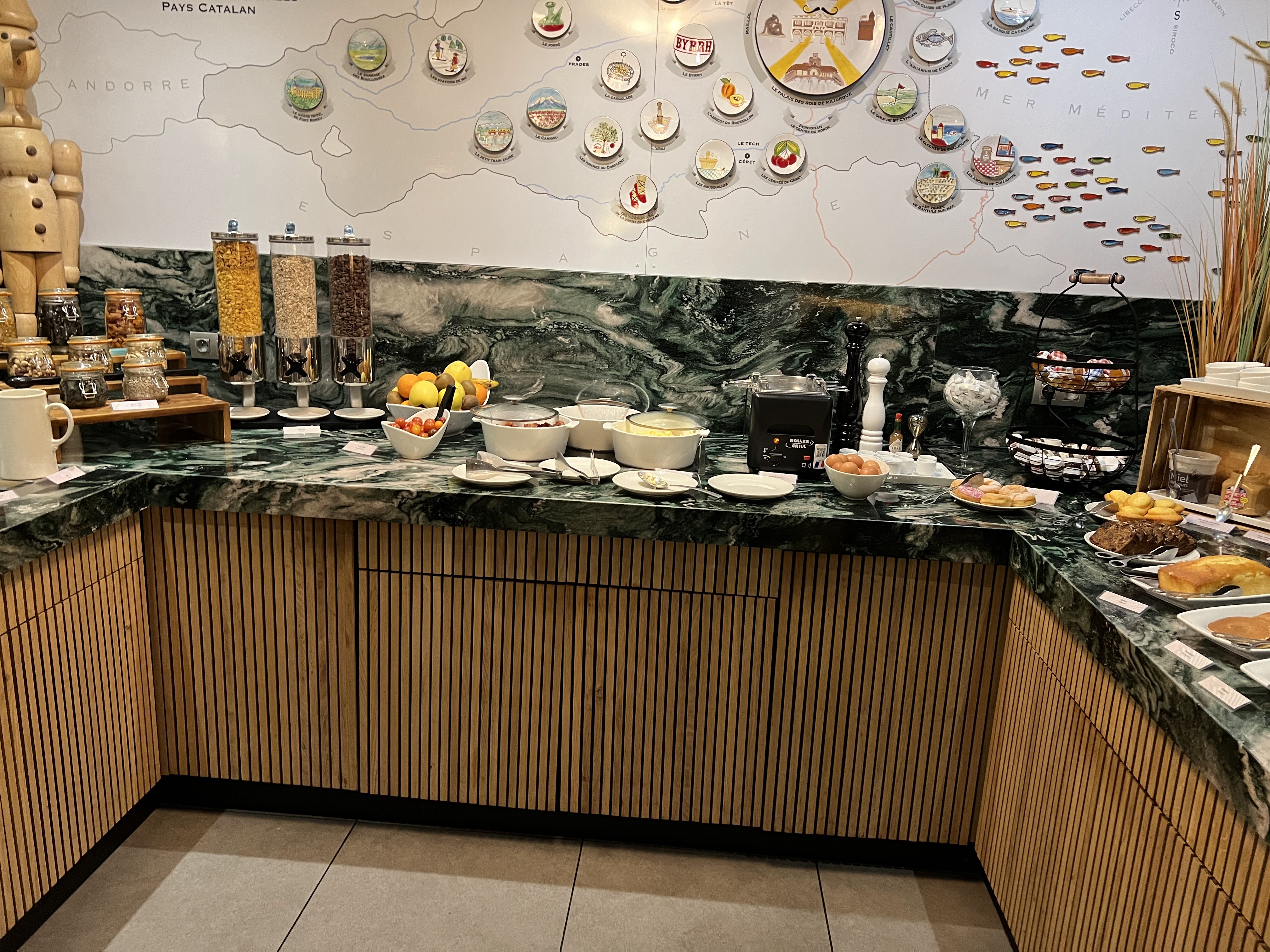 Hôtel agréable , personnel très serviable et souriant . Petit déjeuner appétissant . Terrasse rooftop sympa et décoiffante !( Perpignan et son vent ) nous reviendrons