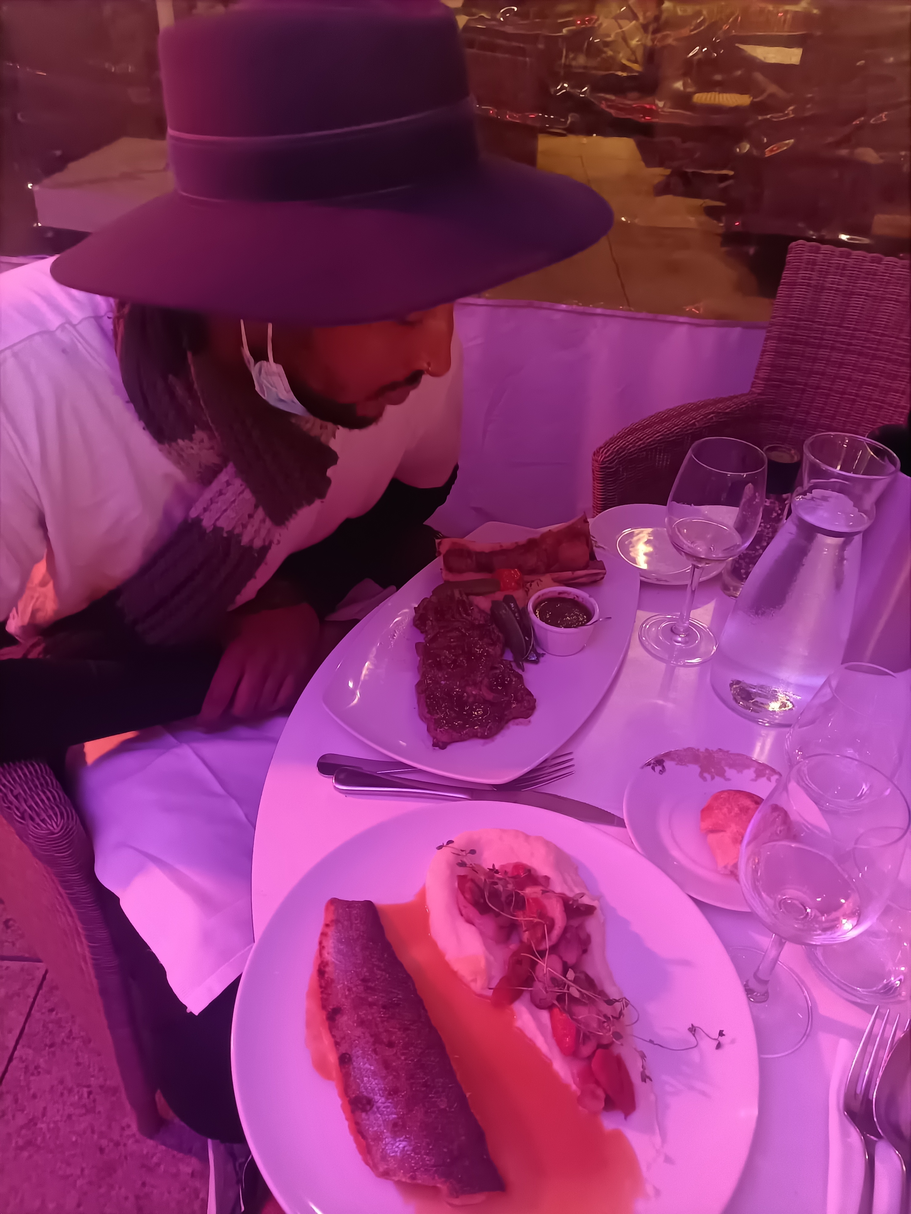 Prise des commandes, avec un masque sous le nez pour le serveur. 2 verres de vin blanc commandé, relativement peu servi, 1 seul apporté. Il a fallu demander 2 fois pour l'avoir. Il a fallu demander aux serveurs du pain par 3 reprises. Le serveur ne nous a pas demandé ce que nous voulions malgré la possibilité normalement de choisir. Il nous a été jeté dans l'assiette à la va vite. La qualité du service n'était globalement pas terrible. 1 seule parmi les 6 personnes était presque parfait. Concernant la qualité de la cuisine, il n'y a rien à dire. La qualité des plats était aux rendez-vous. Il manquait peut être un peu de poulet dans ma commande mais bon, c'était bon. La cuisine contrebalance la note du service par conséquent, seulement 3 pour une cuisine qui en vaut 4,5 voire 5