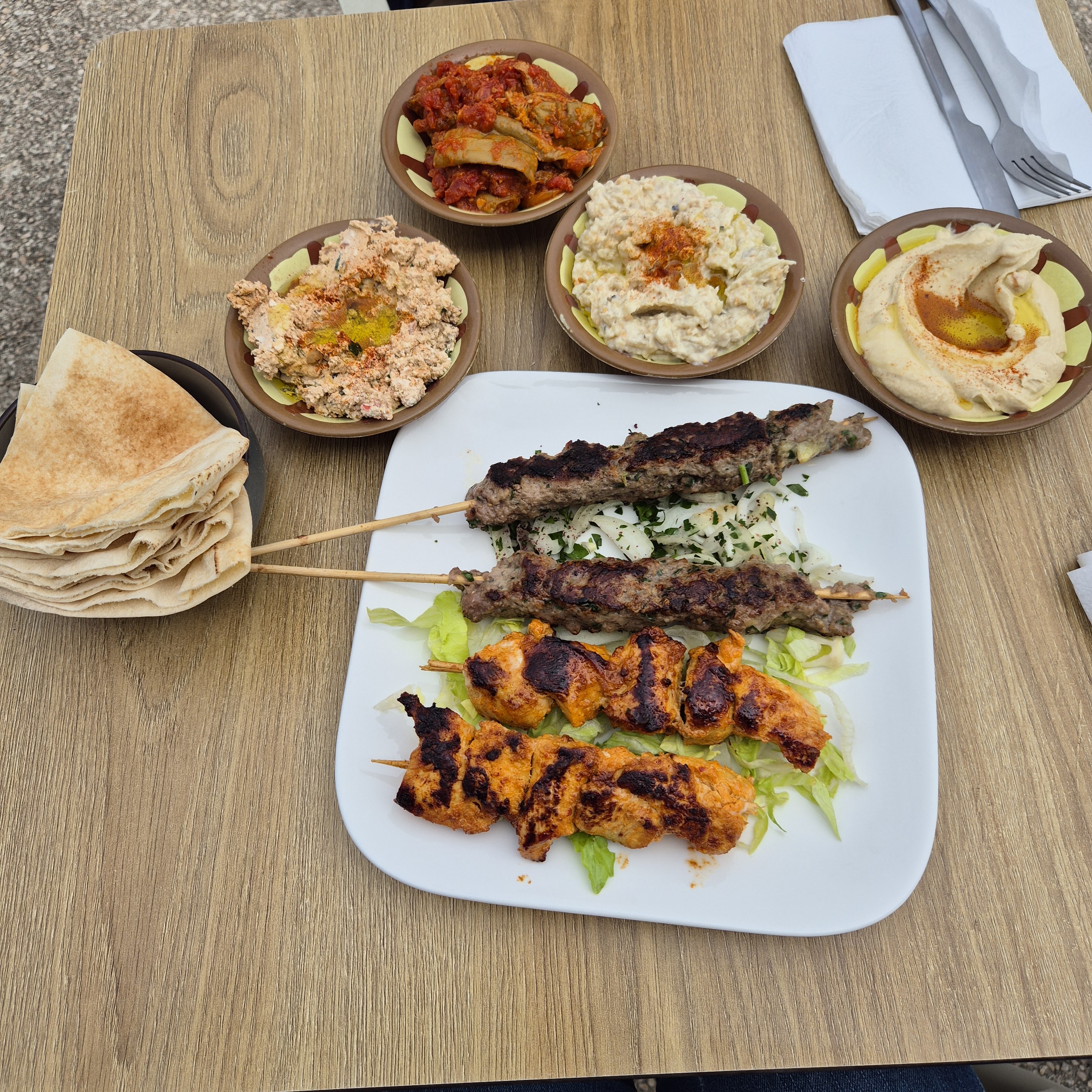 Accueil formidable, service formidable et prix raisonnables. Très bonne cuisine Délicieux le pain Libanais avec la kefta, mercii, damaski.