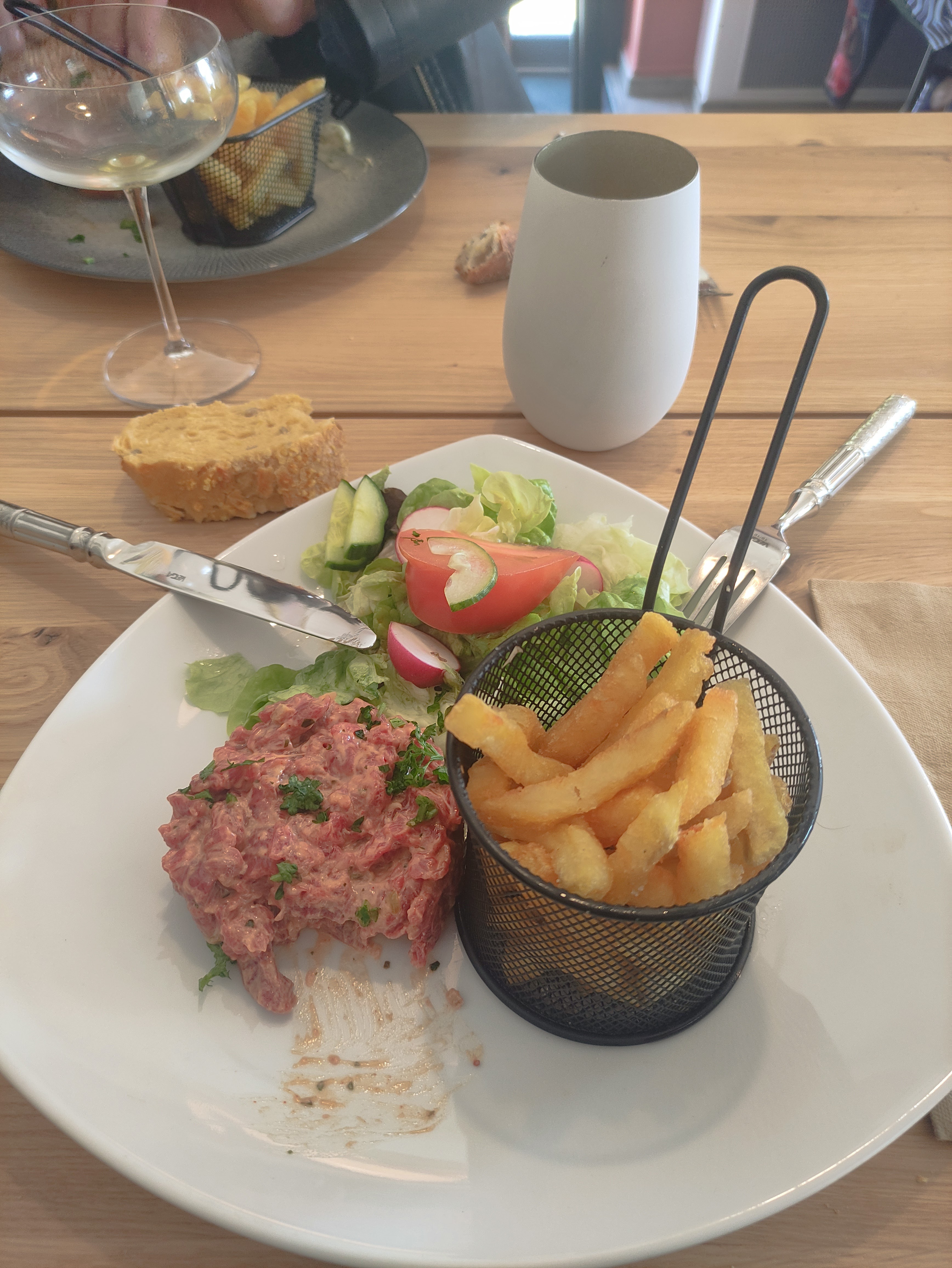 C'est un bistrot, 1h sur place... Vin de qualité médiocre. Plats corrects , frites maison mais froides. Service du plat principal aussitôt l'apéritif servi. Bien pour un repas en semaine mais pas pour y fêter un anniversaire le jour de l'ascension. Très déçue