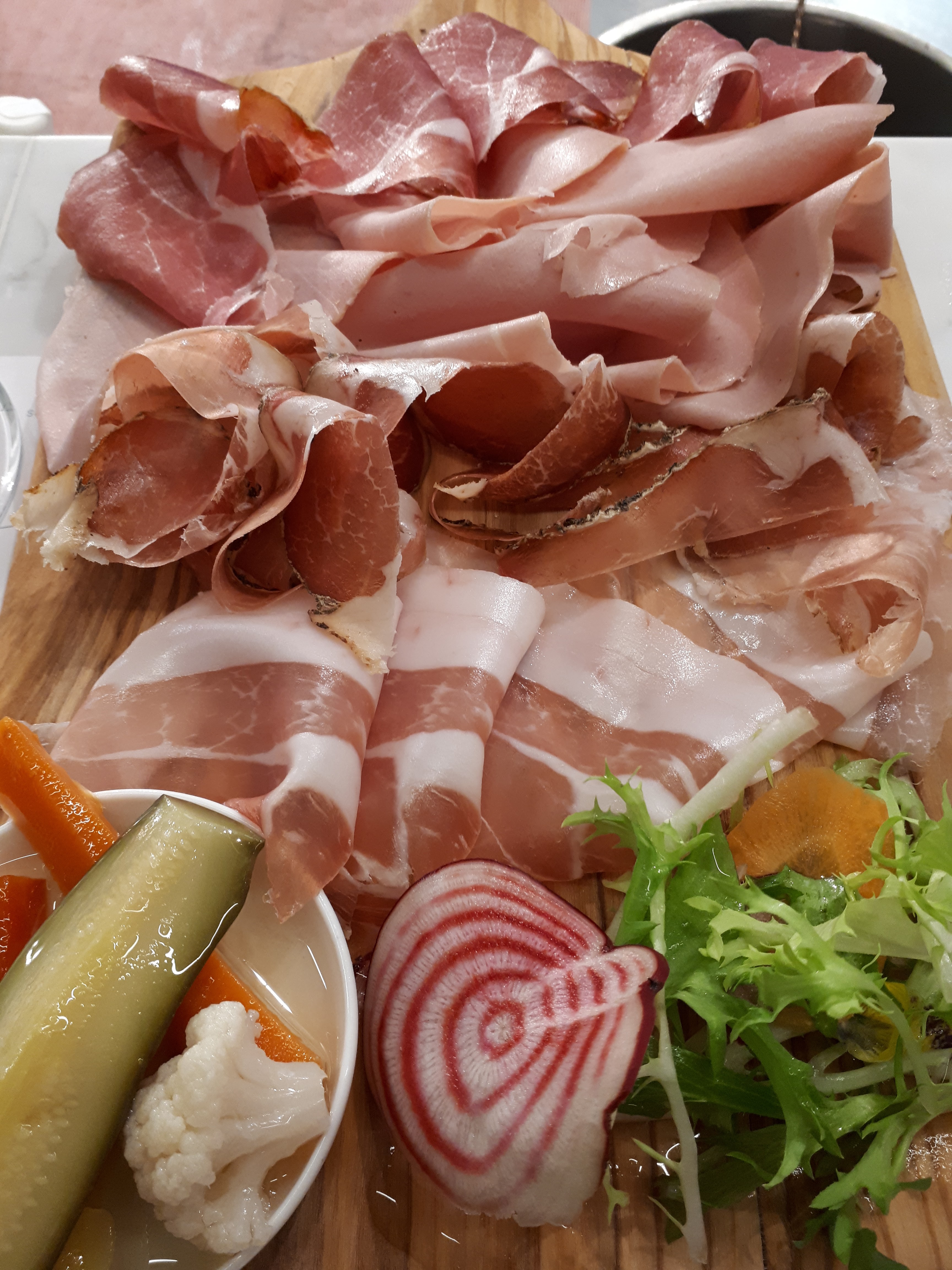 9 personnes, un problème à chaque plat :une entrée oubliée remplacée par une avec du porc alors que la personne n'en mangeait pas trop tard la cuisine est fermée. Une côte de veau supposée accompagnée de julienne de speck non c'est les pommes de terres qui sont parfumées, ah non c'est la viande alors, julienne c'est un mot comme ça. Des raviolis à la betterave et à la panchetta,bien entendu pas de panchetta mais non c'est dans la farce.. Et la personne qui ne mange pas de porc, c'est dans la farce aussi ?! Scandaleux pour des plats à 25 euros, une arnaque sans saveur ni surprise.