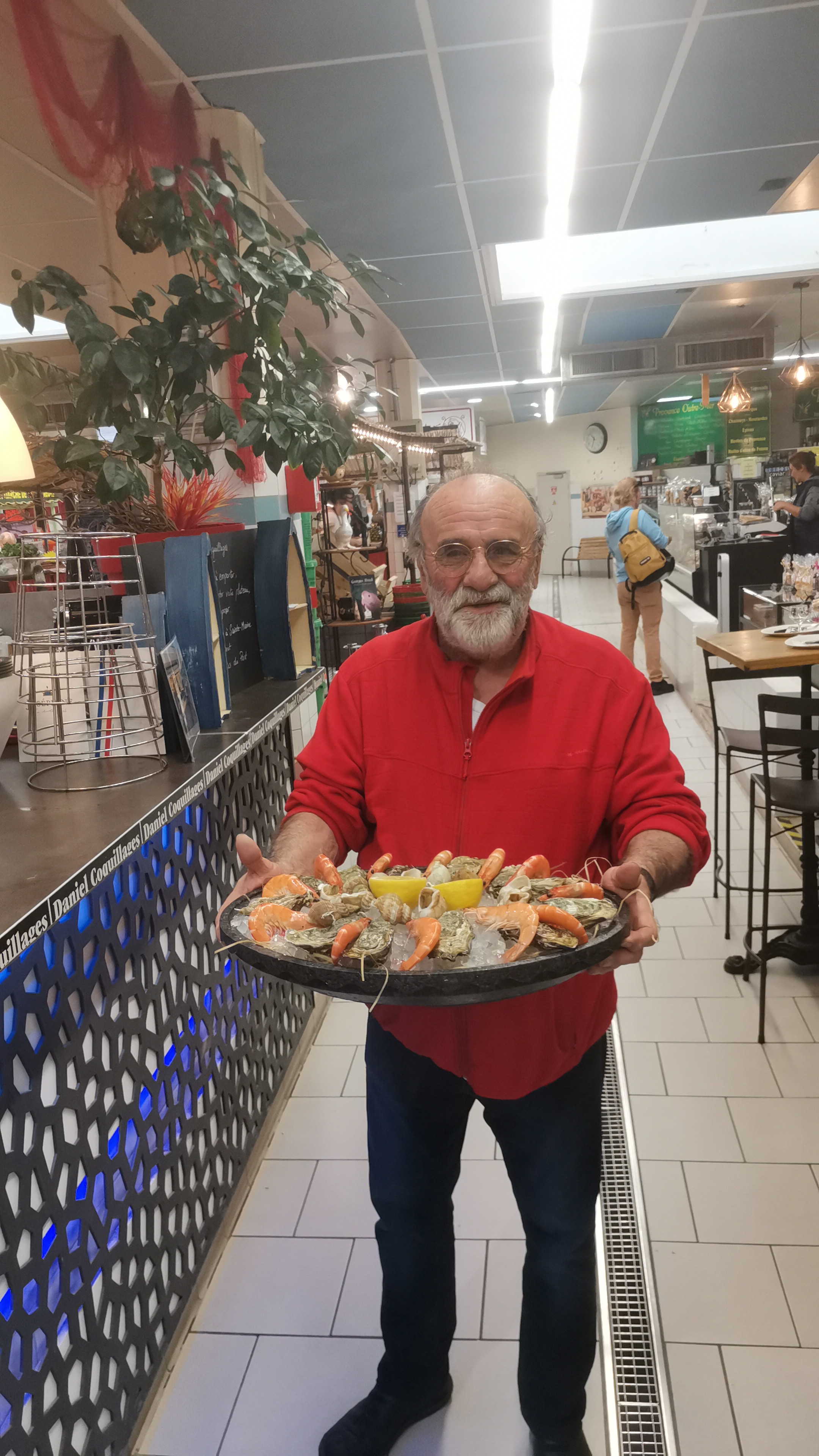 Ce n'est pas mal vu les alternatives, mais pour être à la fois administrateur et vendeur, on pourrait demander bien plus. Des prix pas en adéquation avec les marchés, oui en adéquation avec le quartier. L'espace où l'on peut manger des coquillages se trouve à quelques mètres de l'étal du marché. Le préposé allait et venait et n'a pas rendu un bon service, il n'était pas disponible pour les clients. Avec un plateau d'huîtres et autres coquillages ils ne servent pas de pain mais il faut aller l'acheter séparément sur un autre stand extérieur. Ils ne vous fournissent pas d'aliolì mais de tristes sachets unidose de mayonnaise. Bref, si vous avez envie de coquillages, mangez-les avant ou après Saint Tropez pour éviter ce genre d'endroits. La qualité n'est pas mauvaise mais le service et le rapport qualité/prix laissent à désirer.