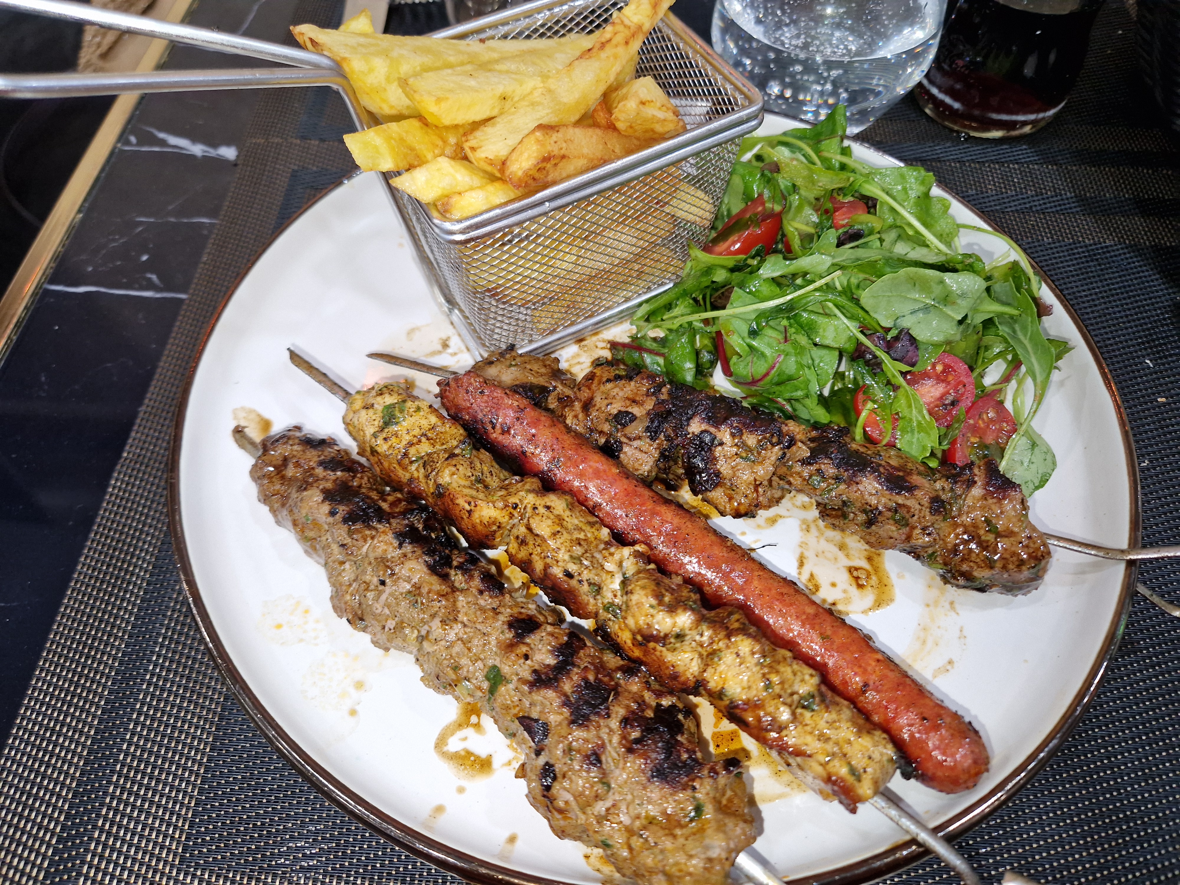 Dans l’ensemble , bon repas et bon accueil … mais entre ce qu’on voit sur Instagram et la réalité c’est pas trop ça , c’est à dire plat servie dans une petite assiette blanche , petit morceau de poulet avec 6 olives , pas de boisson gazeuse … Faut vraiment que ce qu’on voit sur insta et la réalité soit identique .
