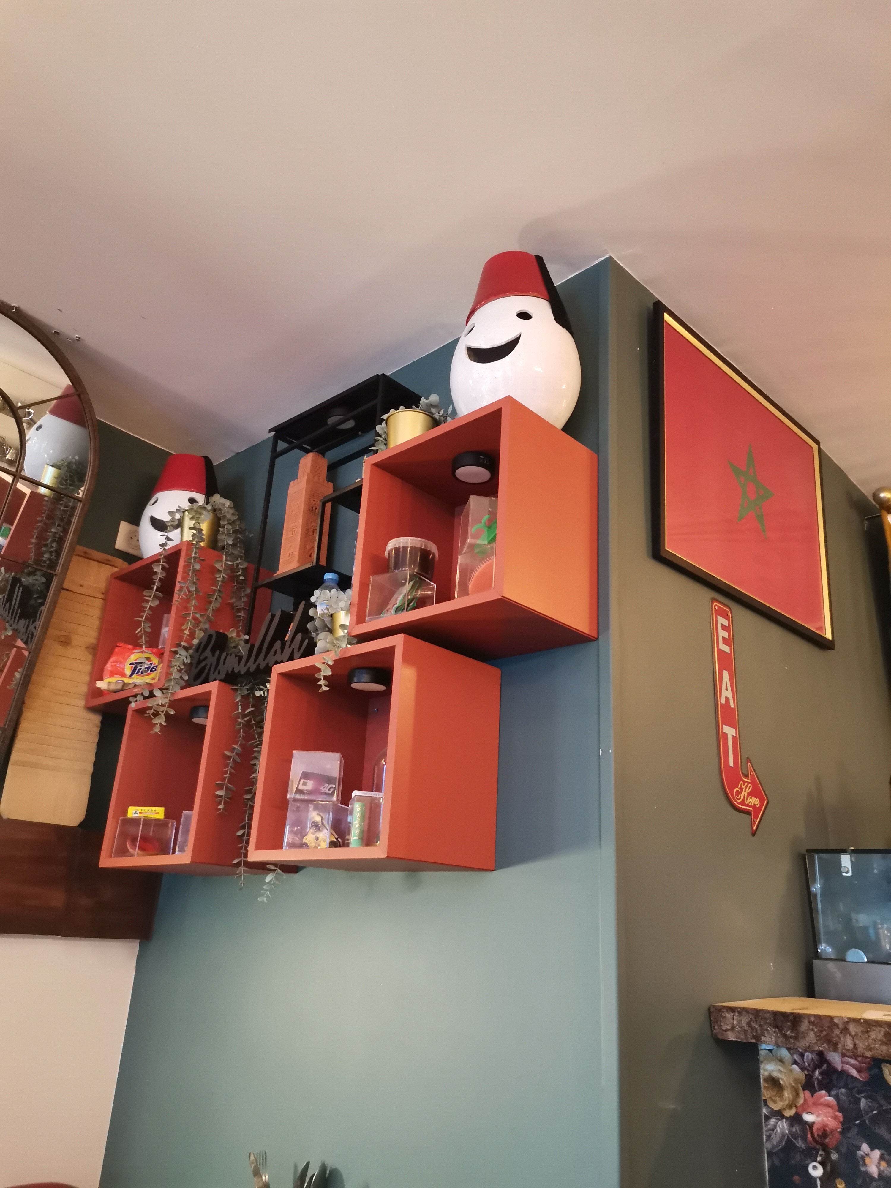 Nous avons brunché ds ce petit resto il y a deux jours et l expérience fut bonne Les œufs étaient bien assaisonnés, le thé au top et le msemen très feuilleté! Nous avons été bien reçu. On testera les tajines la prochaine fois