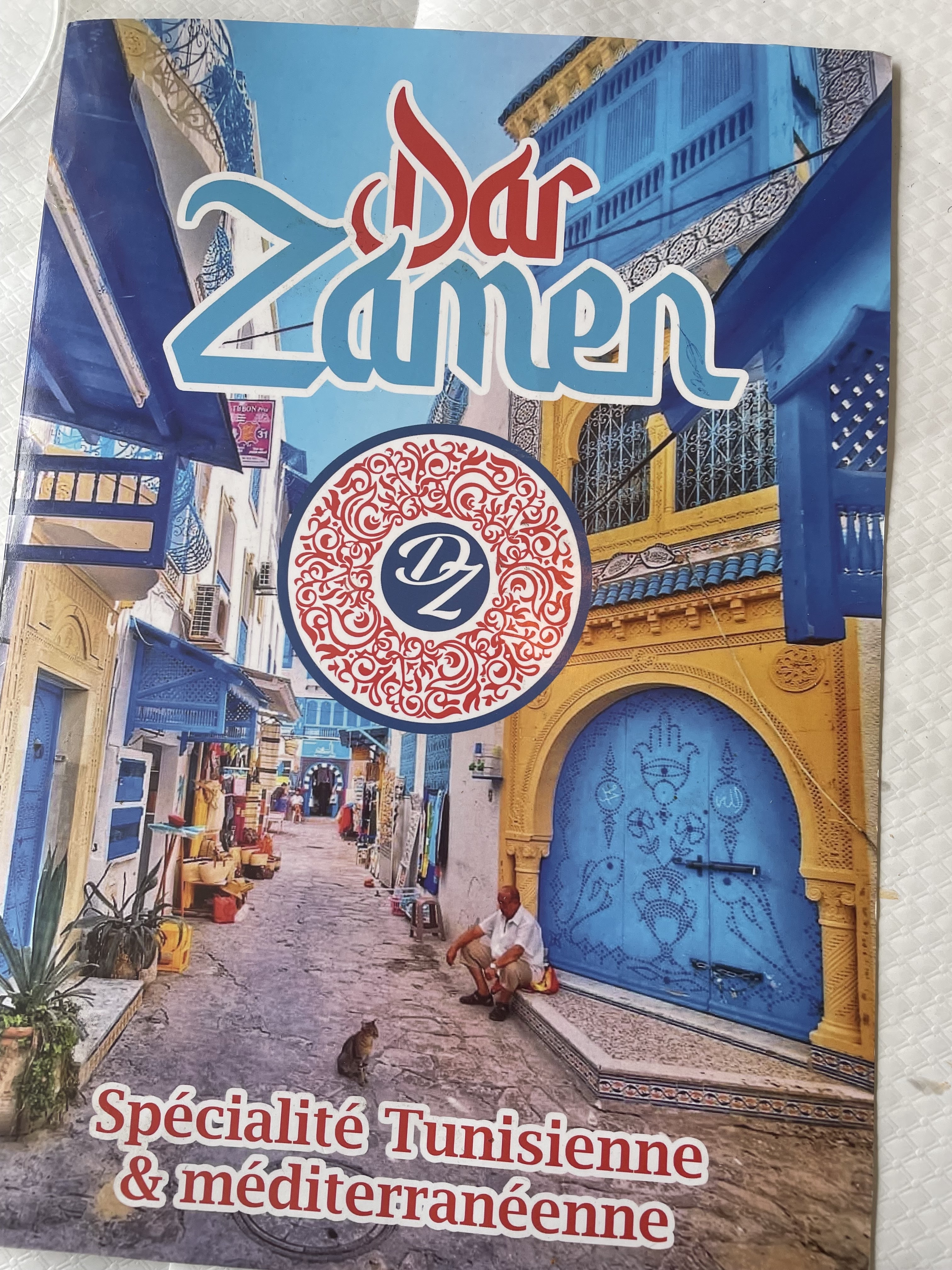 Je vous invite au voyage a Dar Zamen. Ce restaurant aux spécialités culinaires tunisiennes vous convie à l'évasion dès que vous franchirez le Seuil de Bab Dar Zamen. Accueil chaleureux, ambiance conviviale, dépaysement garanti.Excellent rapport qualité/prix👌👌🙂 Un énorme merci à Mohamed Ali, un serveur en or, souriant, aimable, attentionné et aux petits soins🙏🙏🙏