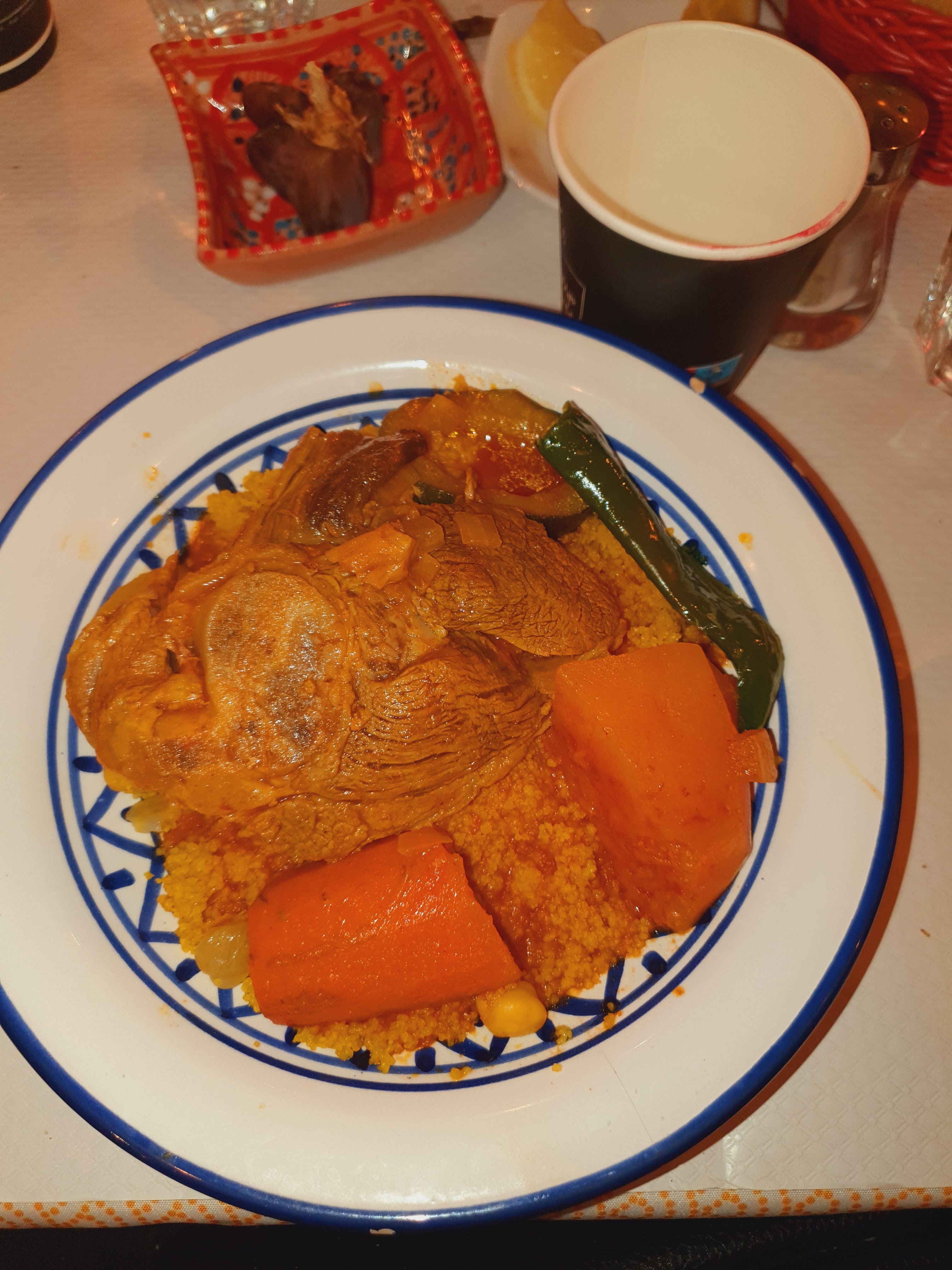 Service impeccable, quantité très généreuse. Calme, couscous agneau bien épicé bien 🌶️comme on aime 🇹🇳