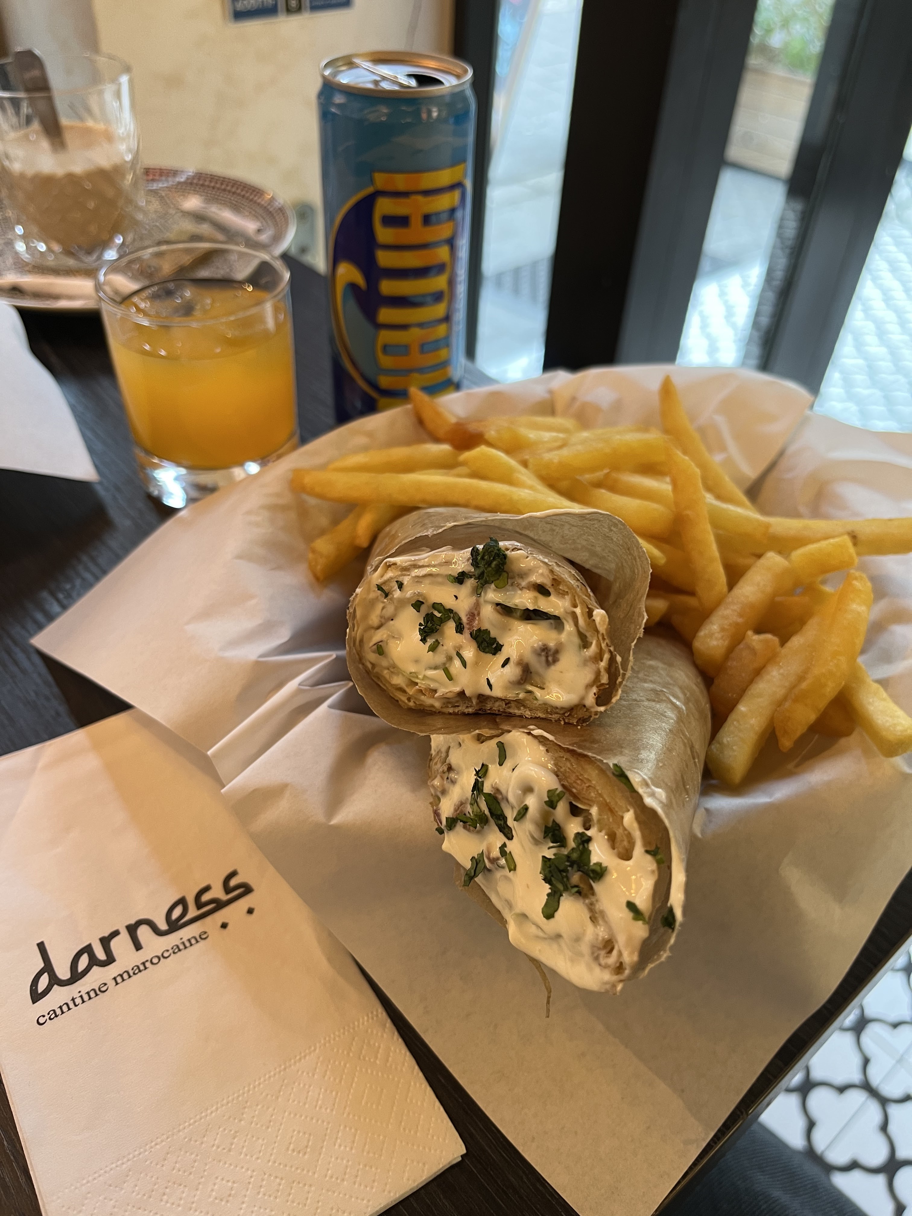 Un premier KAZDAL, Servi dans un pain msemen (crêpe marocaine) sur le pouce et depuis j’adhère et le recommande à 100 % ! Le DARNESS, Le vrai goût de la cuisine marocaine maison ! 🇲🇦😍 Ps : Une décoration agréable et originale !