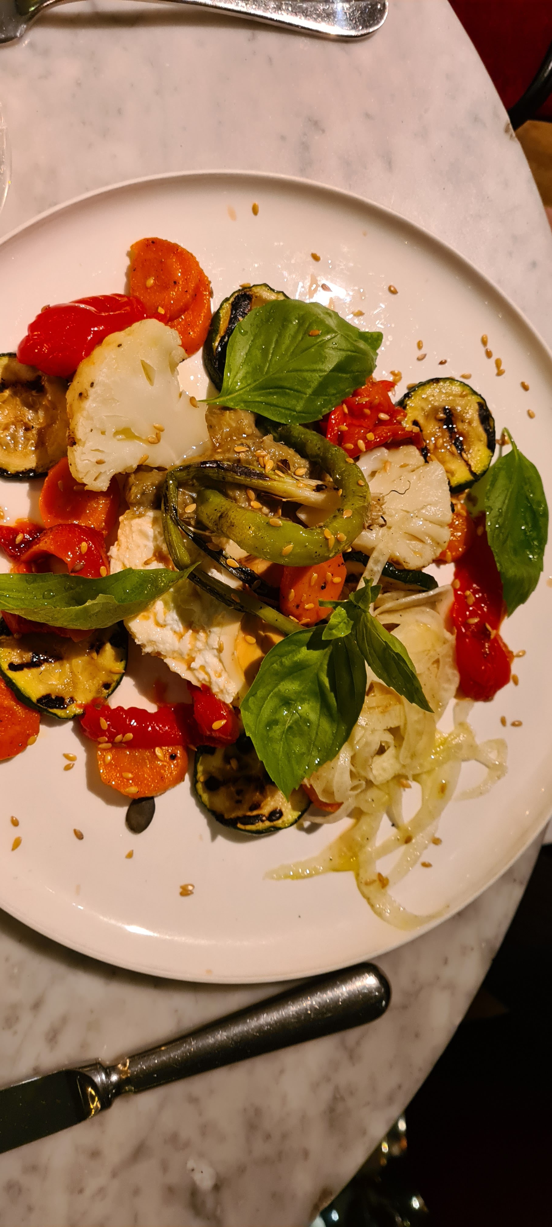 La salade de légumes et burrata fumé à 19€ avec juste la moitié de burrata et l’assiette remplie avec énormément de choux frisé et quelques légumes. Franchement c’est un grand n’importe quoi ! Et en plus le serveur au lieu de nous apporter l’addition ( nous l’avions demandé) , il écrivait des messages sur son téléphone ! Je ne suis pas prête à y retourner…