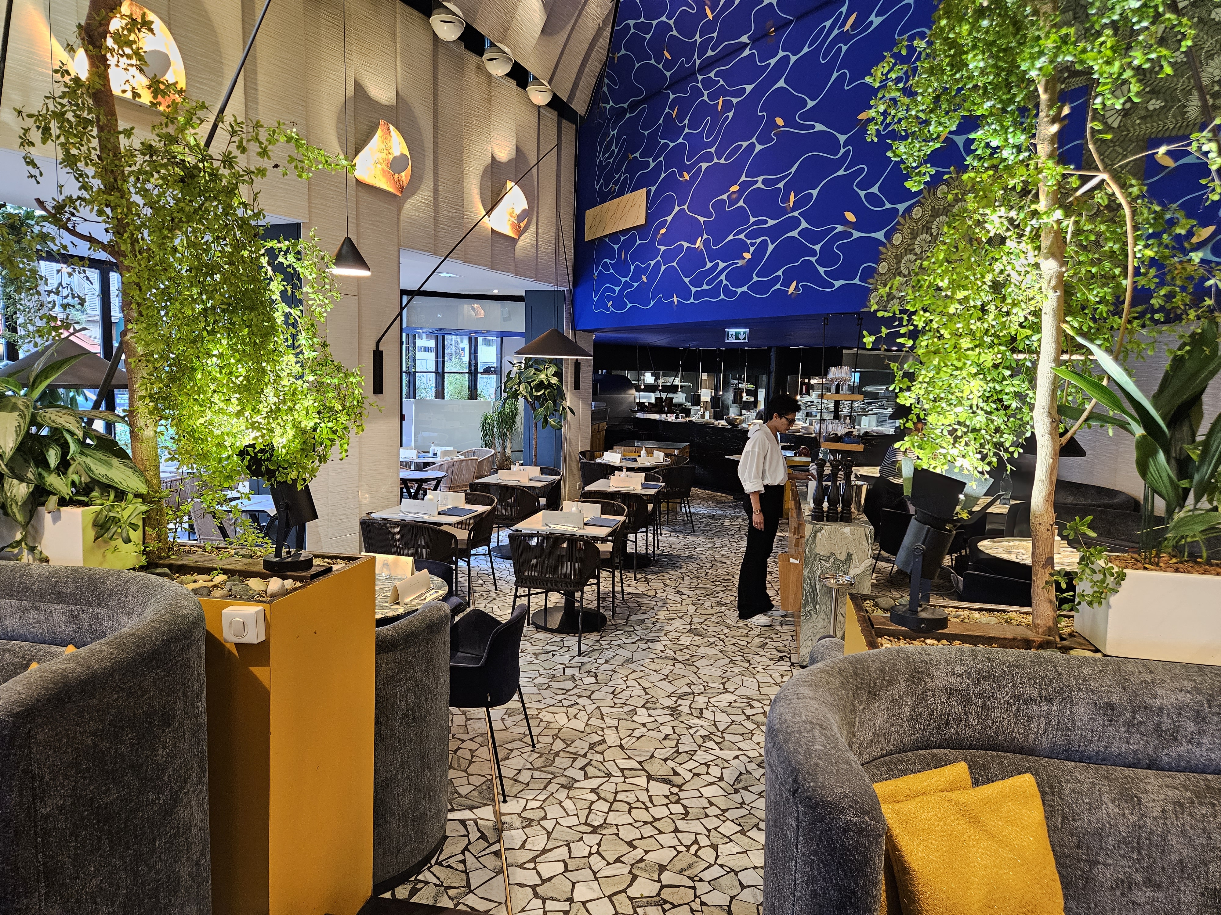 Restaurant que je recommande. L’intérieur est très spacieux et agréablement décoré. Une petite musique et un jeu de lumière tamisé qui peut venir dans la soirée pour accompagner le dîner, cela était fort agréable. Les serveurs sont accueillants, bienveillants et conseil sur les plats ou les boissons au besoin. J’ai passé une excellente soirée !