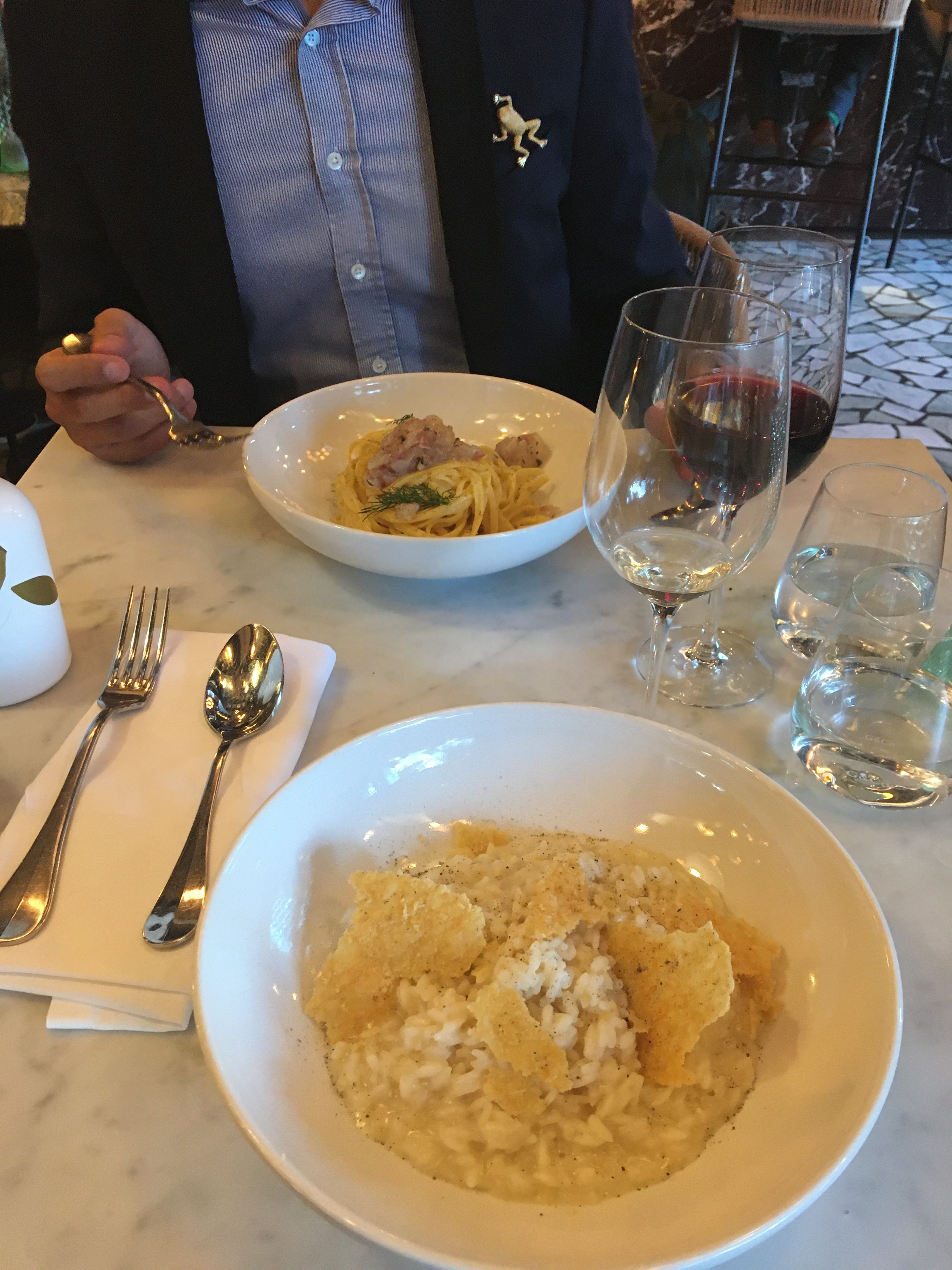 Accueil poli, bonne ambiance mais très bruyant, nourriture médiocre +, très loin des prestations de Cipriani. Grand point positif: le personnel est bien habillé et souriant. Résumé: un endroit convivial mais pas gastronomique.