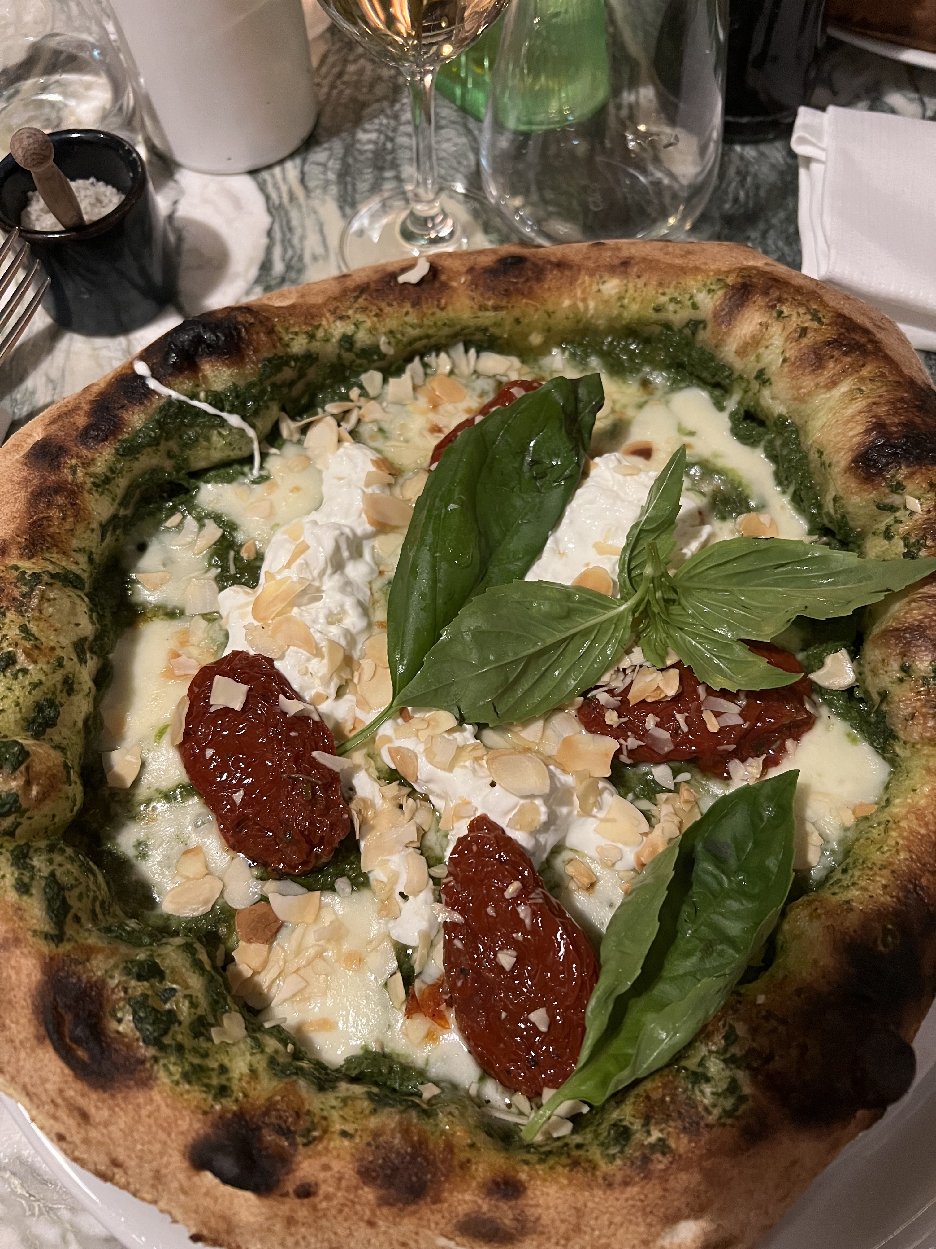 Tout d’abord, je dois dire que l’expérience du restaurant est réussie. Nous rentrons dans un cadre super sympa et sommes très bien accueillis et placés (nous avions réservés) Les différents plats de la cartes sont variés mais classique, les prix corrects pour l’adresse et le service. Au niveau du goût, j’ai adoré ! Pizza napolitaine avec de très bons produits notamment une super sauce tomate qui pose la base pour un plat très bon. Je recommande Je recommande
