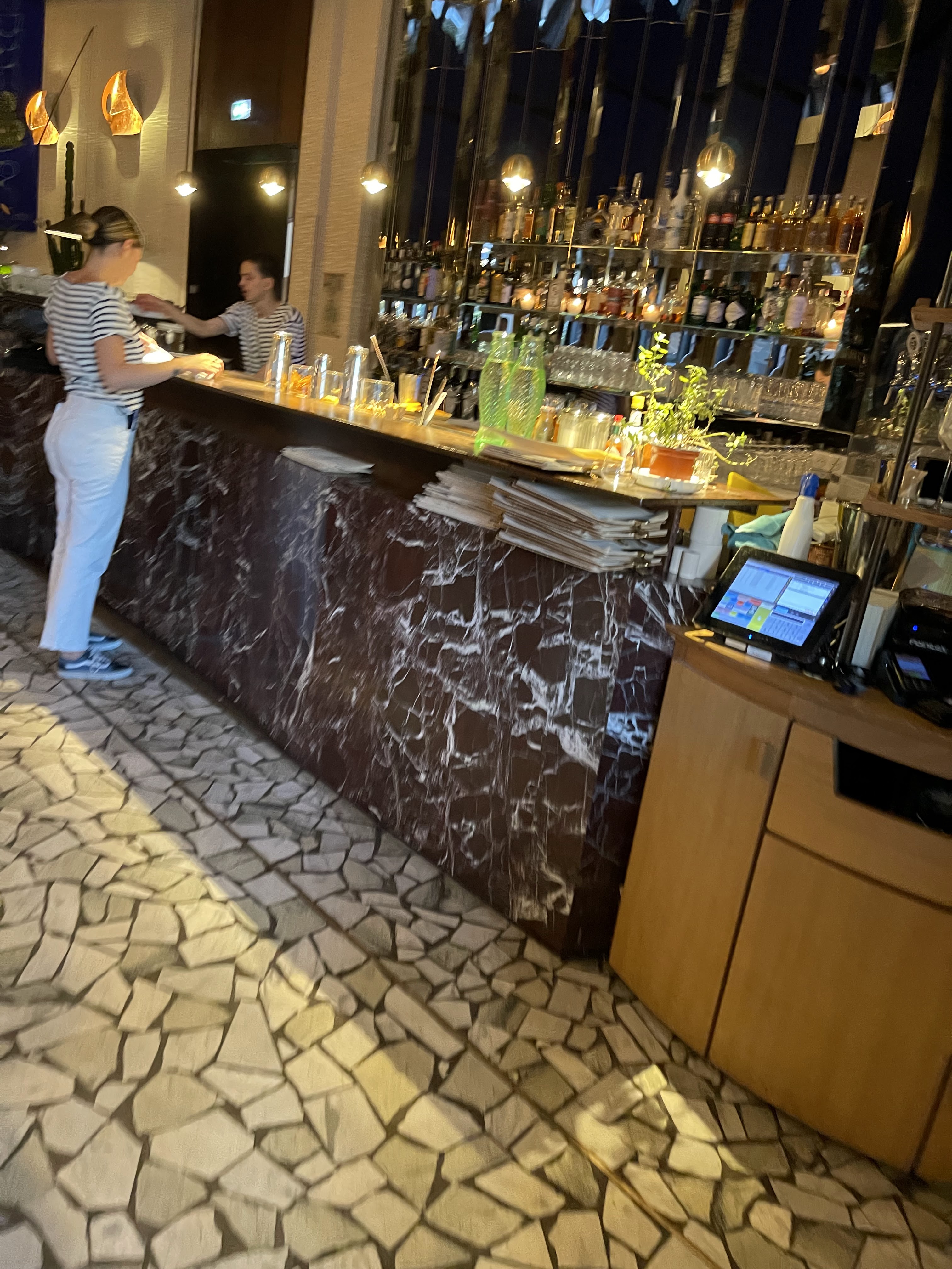 Un très bon italien ! Nous y sommes allés hier soir avec mon copain et c’était un super moment, les coktails sont très bon et les pizzas aussi ! On a été servi très vite quand il n’y avait pas tant de monde que ça dans le resto, ensuite on a du attendre pas mal pour que la serveuse nous calcule nous mais bon c’est pas très grave ! Le lieu est absolument canon et une ambiance très chic y règne 👌🏼 ( détail qui m’a perturbé pourquoi les serveurs sont en marinières alors qu’on est sur un resto italien 😭 )