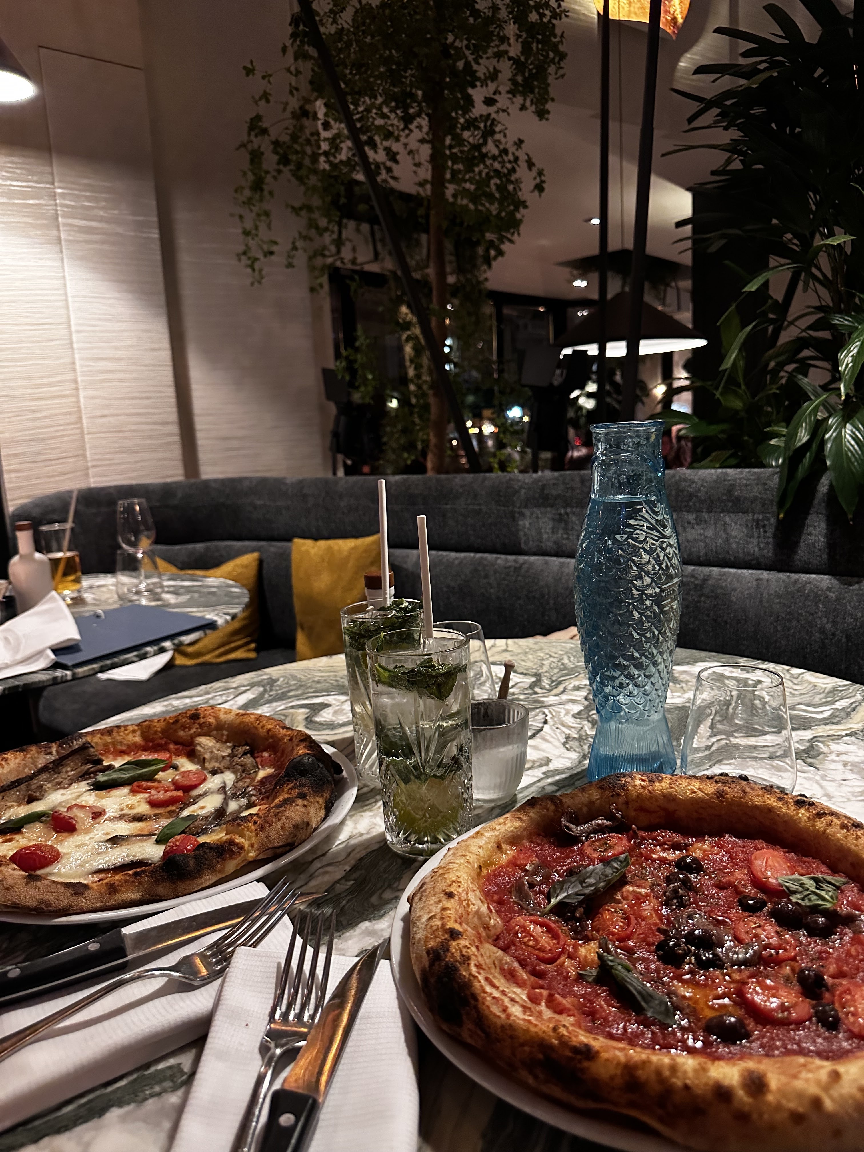 Le restaurant est très beau le cadre est agréable, par contre même si la pizza est bonne elle ne vaut pas 25 euros. D’autre part les boissons surtout les cocktails sont vraiment mauvais, quasi sans alcool et extrêmement cher pour la qualité.