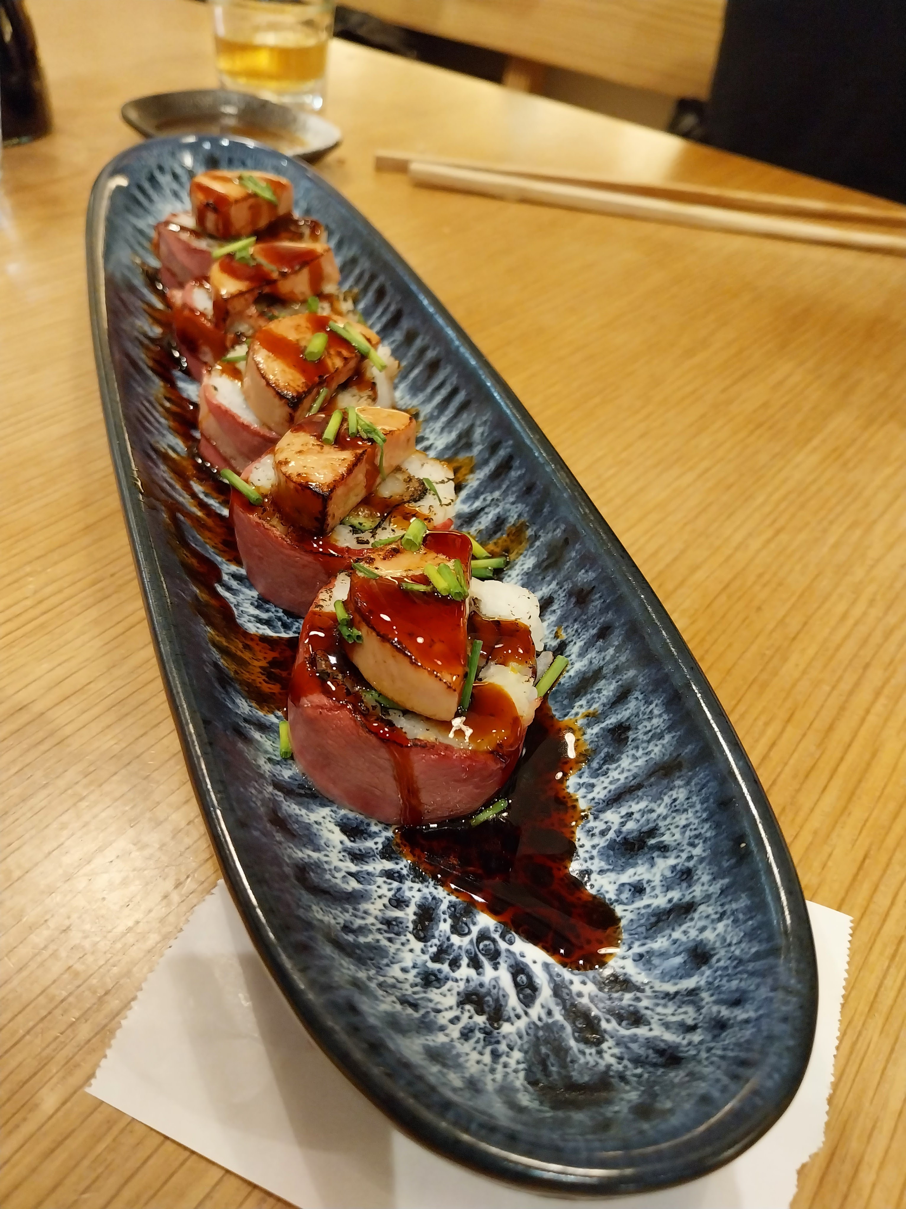 Très belle expérience, j'adore les sushis et ils sont très bon avec une touche d'originalité. La décoration est très sympa, le personnel aussi. Belle découverte, pensez à réserver sinon vous devrez emporter.