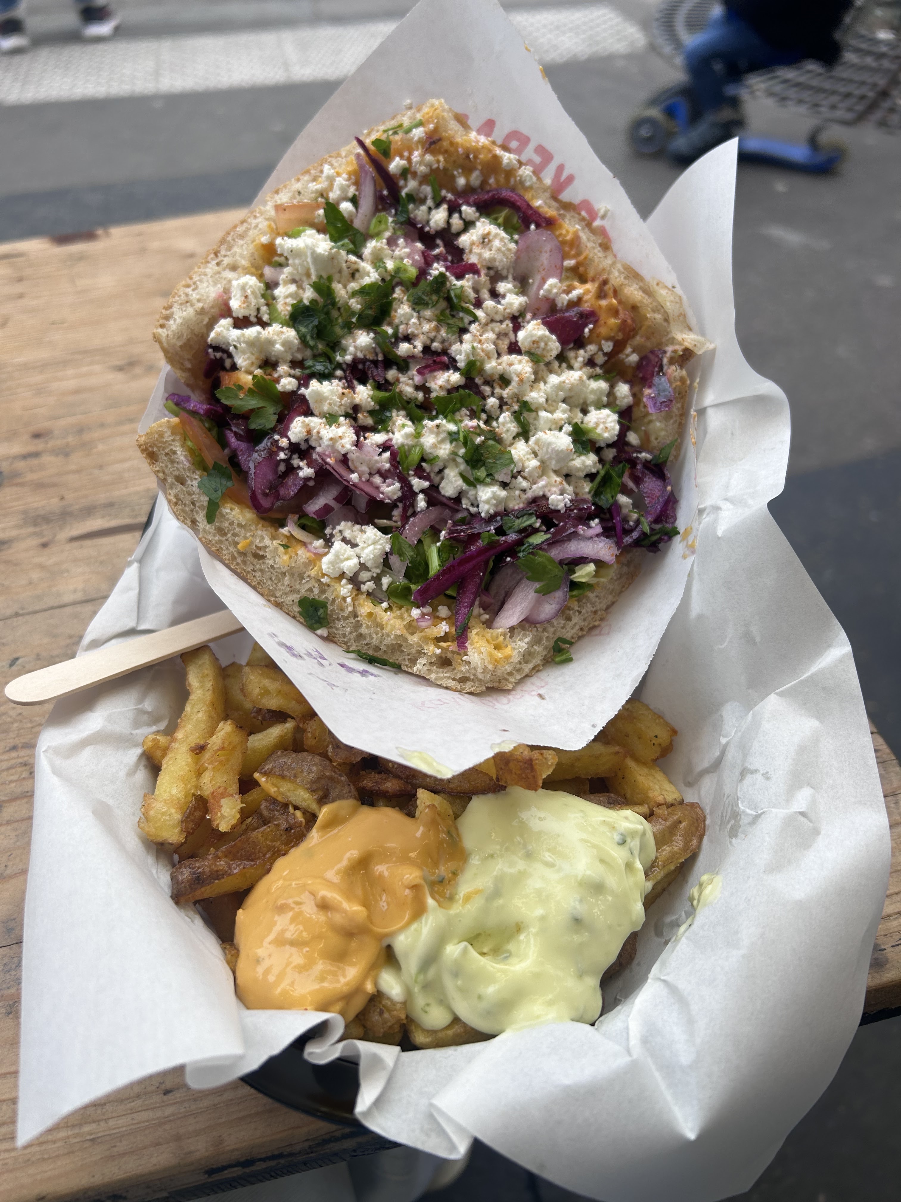Tout simplement délicieux. L’option végétarienne est délicieuse, les légumes frits à l’intérieur du sandwich sont parfaits et les falafels sont à tomber par terre. Les frites maisons sont également très bonnes. L’accueil était super. Le seul bémol est lorsqu’on souhaite s’asseoir, le restaurant étant petit. Mais la nourriture nous fait oublier ce petit désavantage !