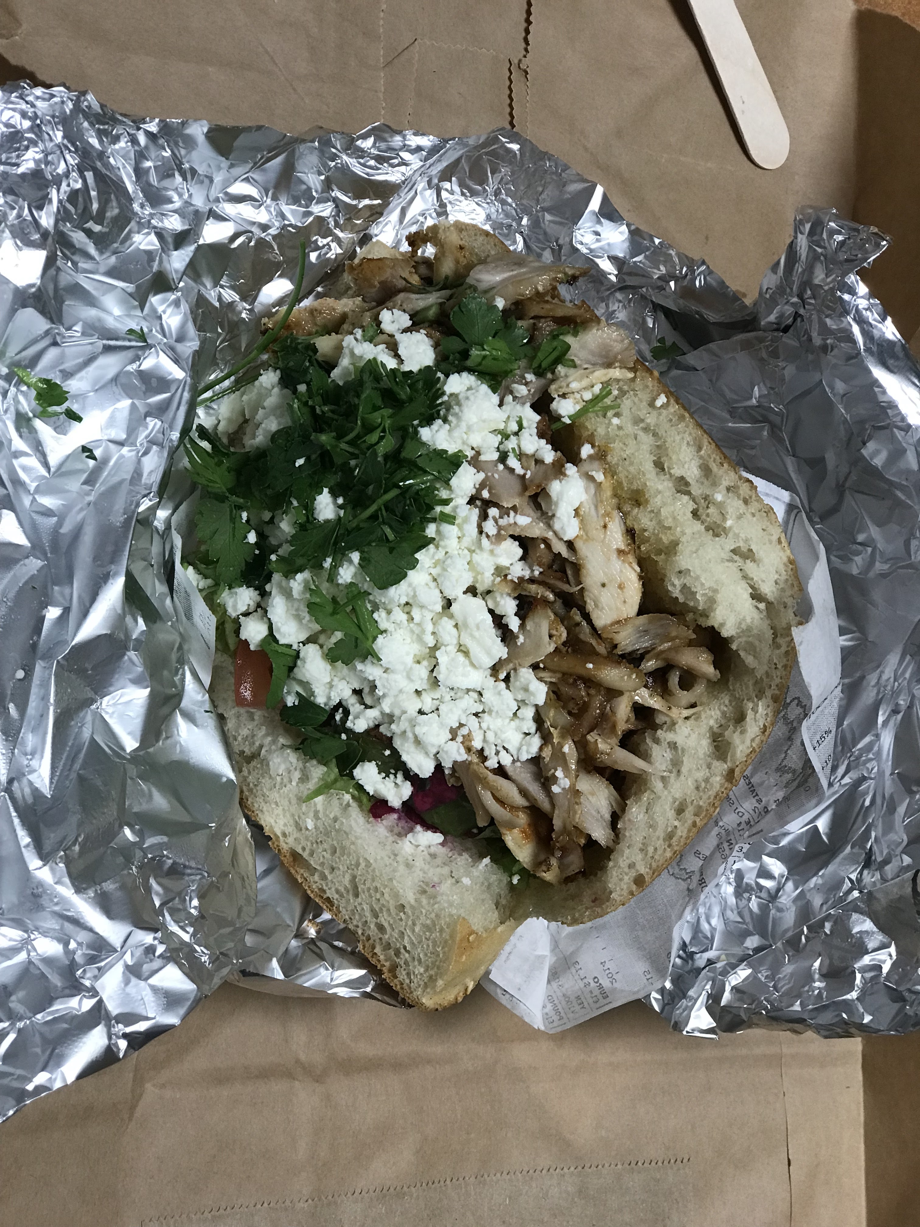 De très bons rouleaux de shawarma ici. Bonnes options végétariennes.
