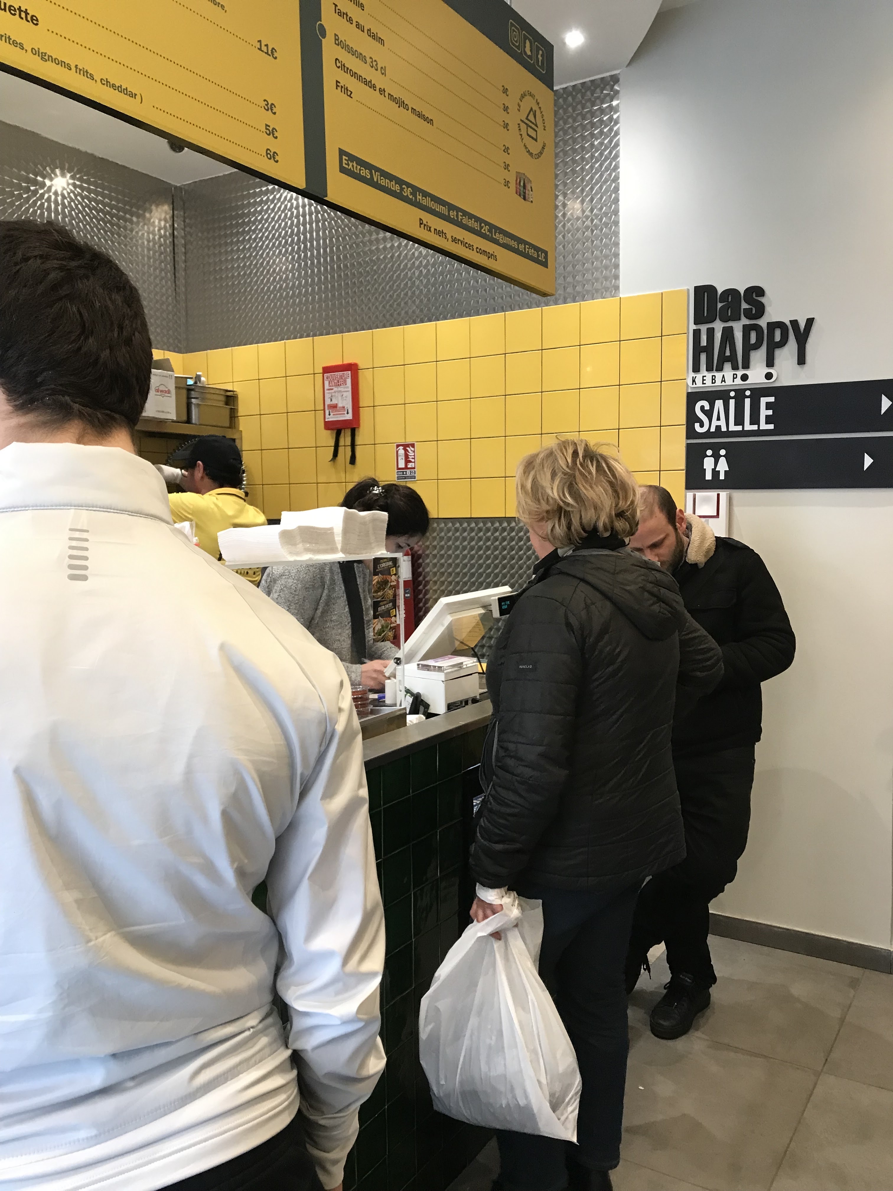 Ça fait 3 semaines que je passe devant la broche qui rôtis et que ça me donnait l’eau à la bouche. J’y ai pris hier un Berliner avec le pain maison. Mon dieu ça faisait des années que j’avais pas mangé un aussi bon kebab. Le pain est croustillant, la viande est juteuse et savoureuse, les légumes sont frais, la petite touche de citron dans la sauce blanche est à tomber par terre. Je me suis régalé. Quel bonheur !