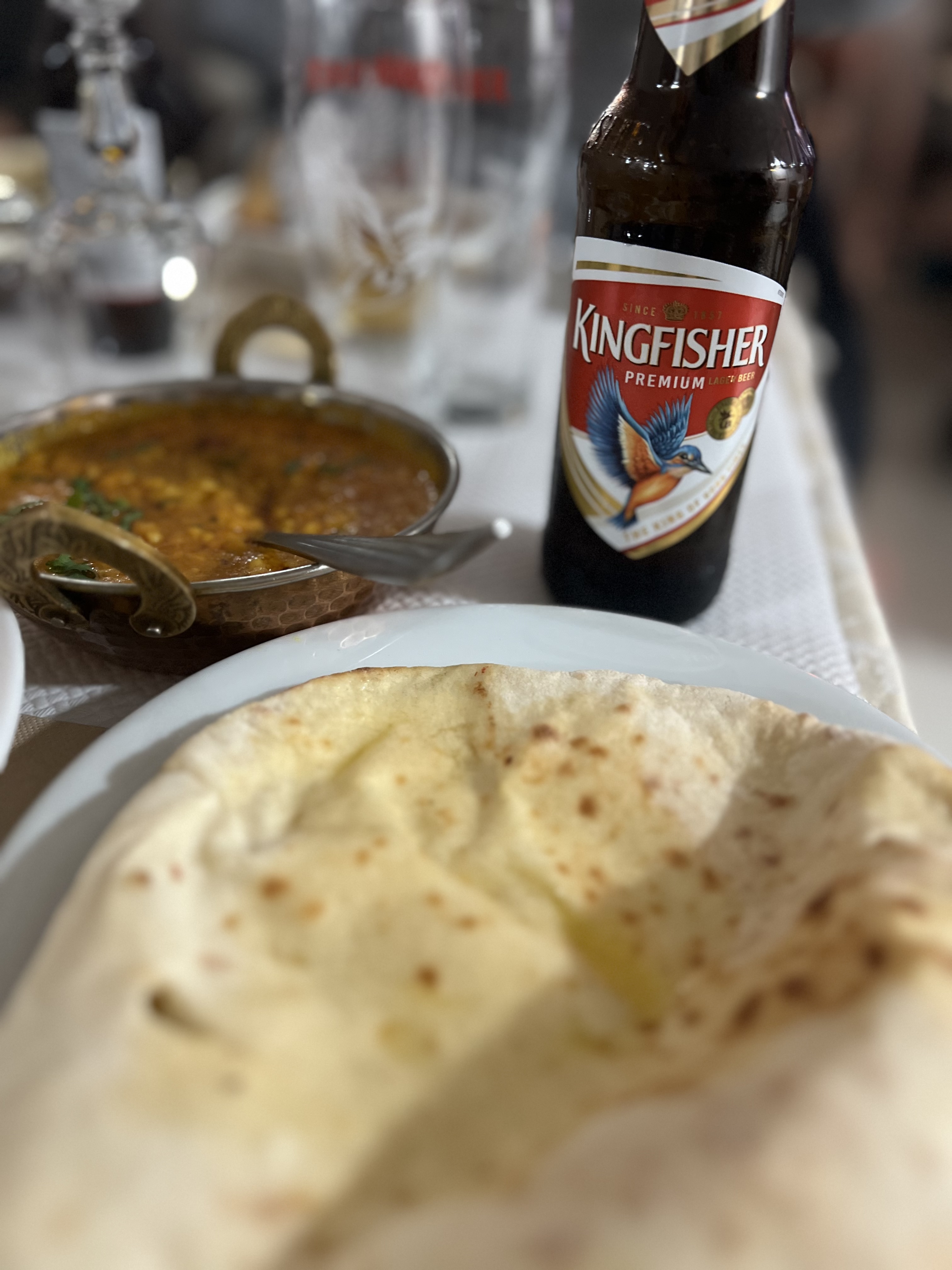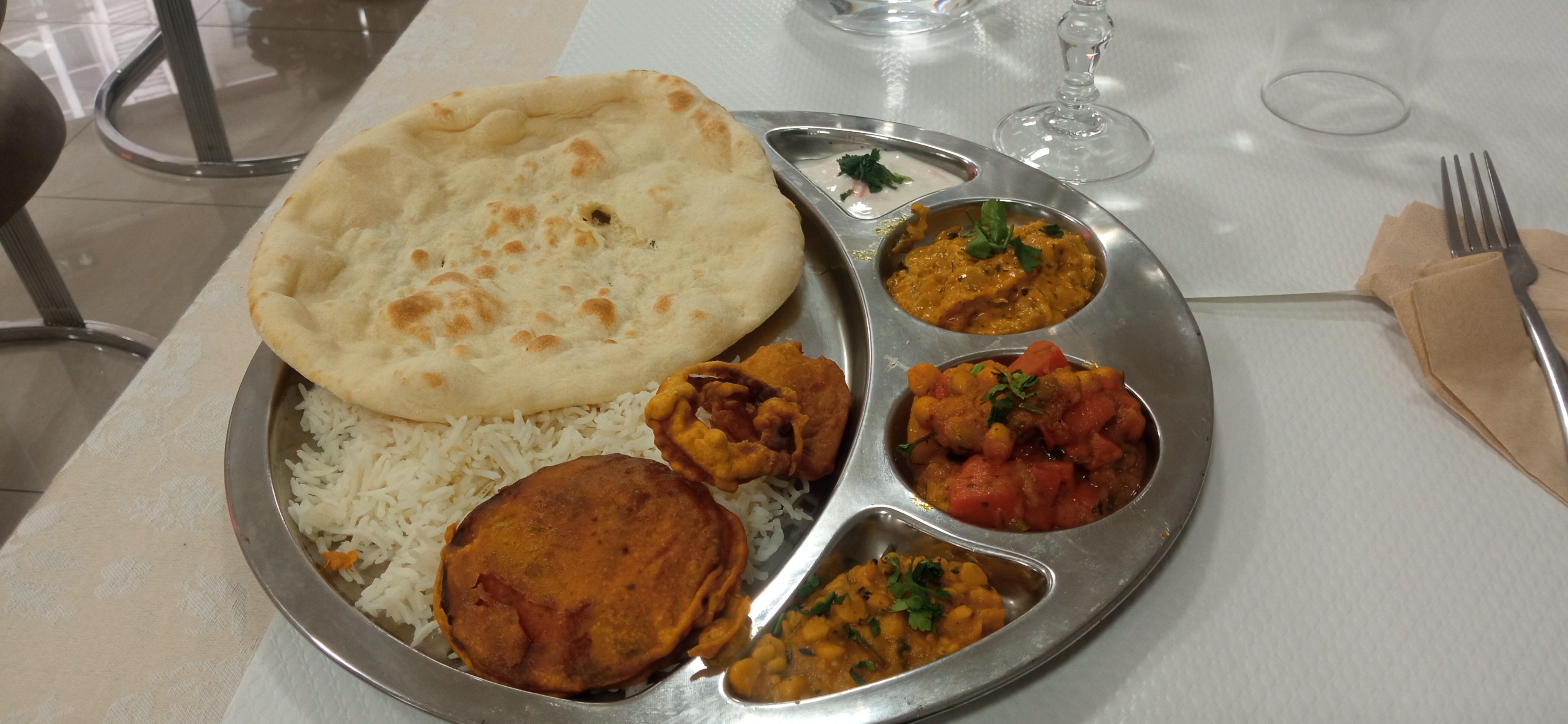 Nous avons pris un poulet au curry et un butter chicken avec des naans, les plats étaient délicieux et copieux. Le service est très agréable et rapide, la salle est grande et propre. Idéale pour manger de la bonne cuisine indienne