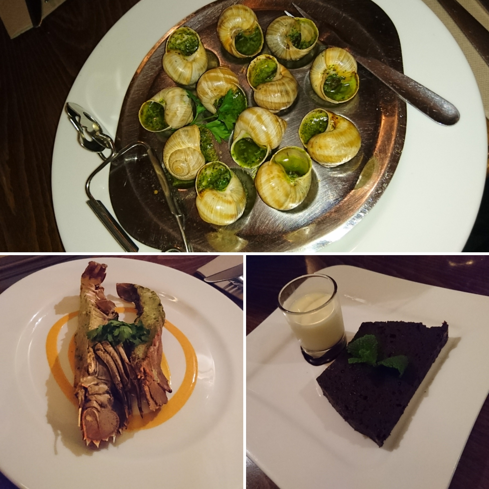 J'ai apprécié une entrée d'escargots suivie du homard et de la carre (tout chocolat). L'escargot était bien parfumé et on nous a également fourni du pain pour que nous puissions absorber l'huile. De délicieux légumes poêlés ont été fournis avec le homard succulent, et le gâteau au chocolat complet était une belle finition. Le service est devenu plus occupé vers la fin lorsqu'il y avait plus de clients, sinon il était attentif. Ils n'avaient qu'un serveur et un chef.