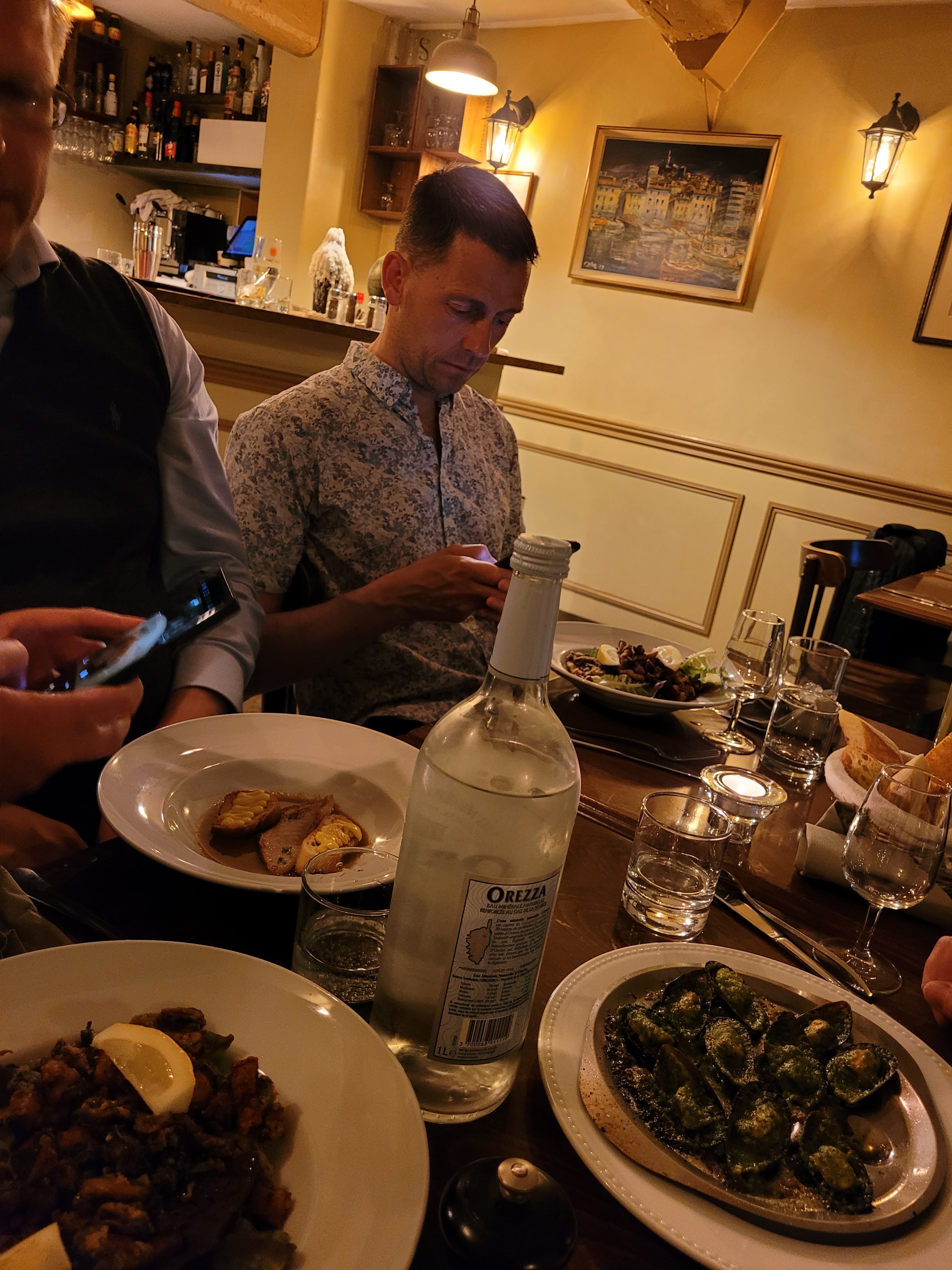 Nous avons eu un très bon dîner (légumes, poisson, calamars) et un vin très savoureux. Les convives, la serveuse et le chef sont très sympathiques et attentionnés.