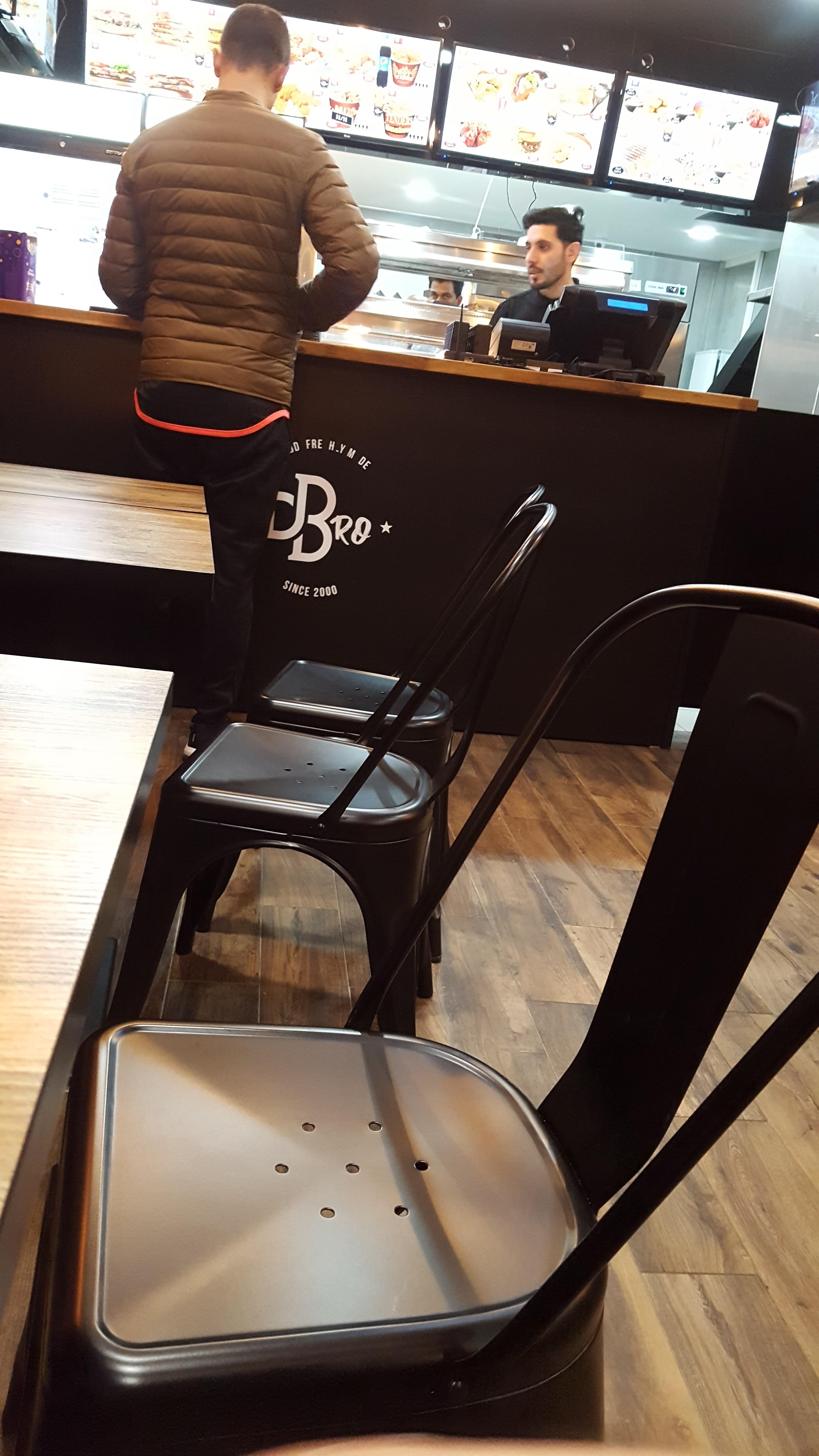 Fast-food avec une touche indienne, une déco style industriel sympathique, attention la viande est un peu épicé même pour les tacos escalopes donc les personnes qui n'aiment pas du tout épicé ou pour les enfants je vous conseille les sandwichs à base de tenders... Possibilité de charger les téléphones Wc propre À proximité des bus