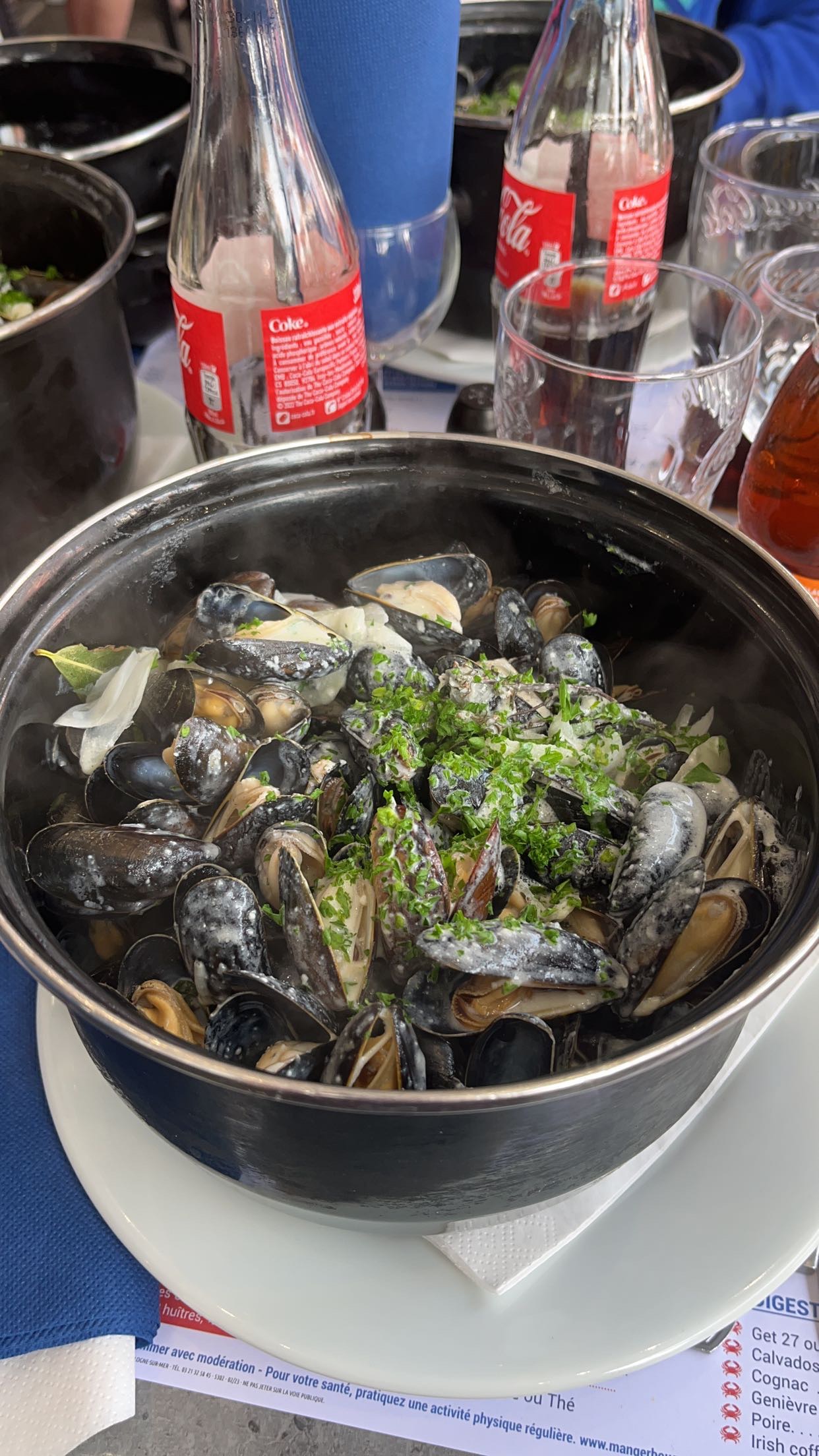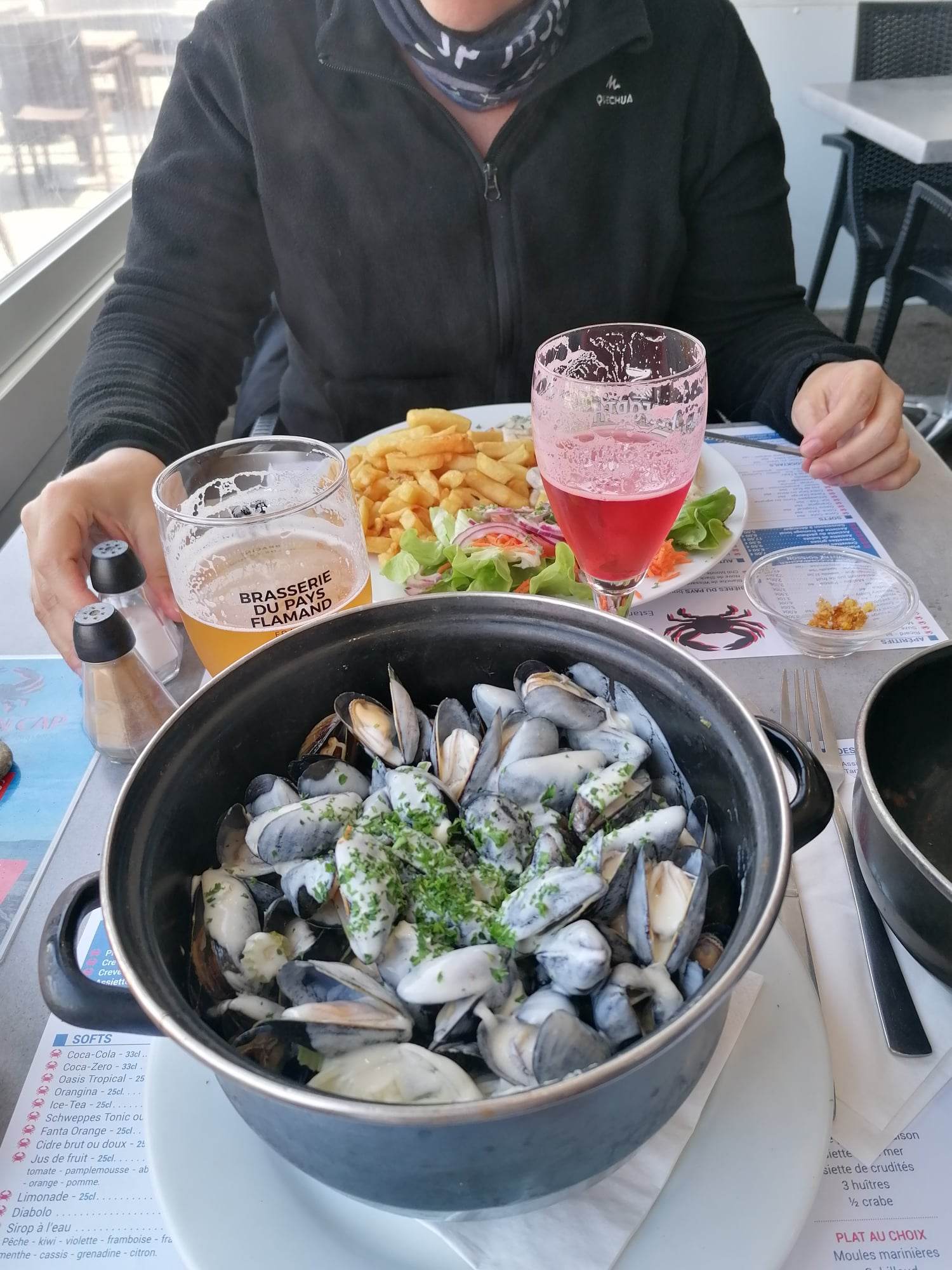 Le seul resto où il a été possible de manger.. vers 13h 30 🙃 Merci à eux Les moules marinières manquaient d'aromates.. seulement des oignons ☹️☹️☹️ Mais la vue sur la plage est superbe.. On ne peut pas tout avoir.