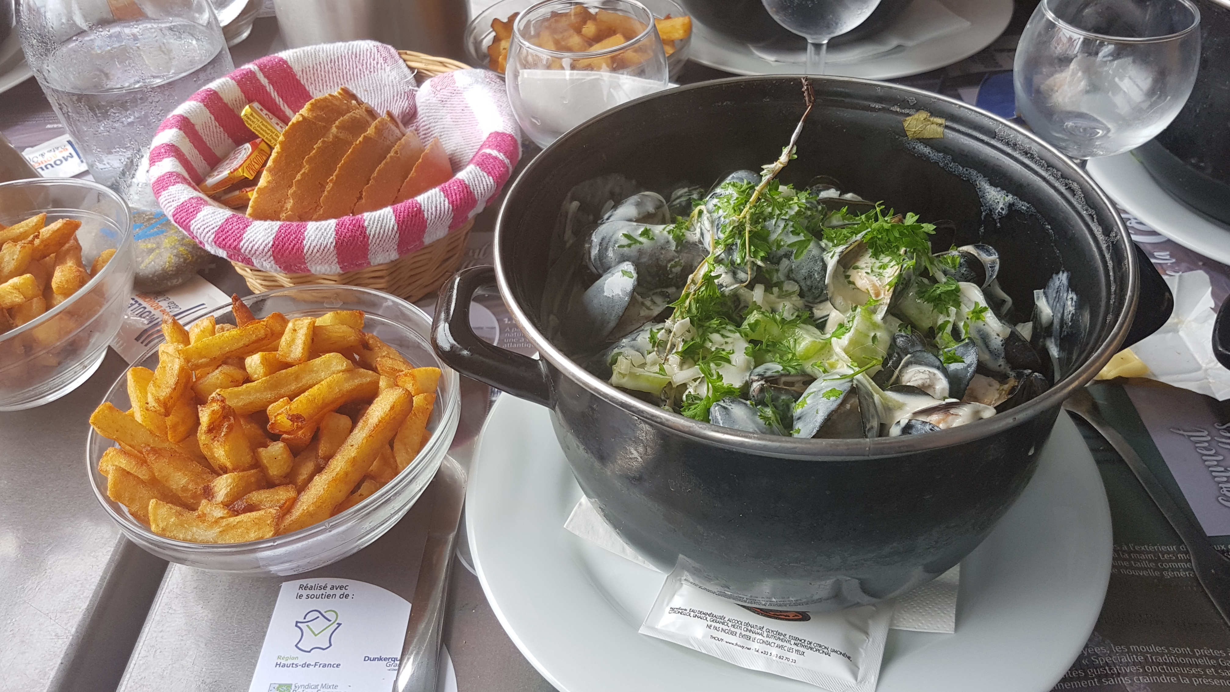 moules au vrai roquefortet herbes fraîches ...frites maison excellentes...petit Chardonnay bien frais..café de très bonne qualité. ..ambiance familiale sympa...Nous reviendrons....D et D de Calais