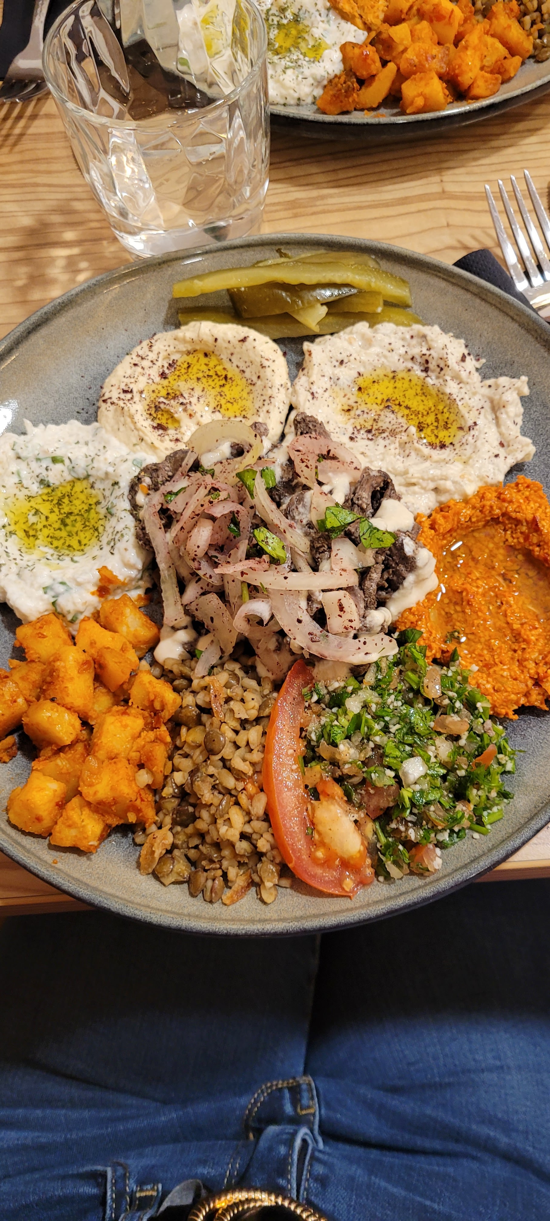 Ça ne vaux pas un 4,8 d’étoiles Pour information on ne coupe pas comme ça le persil pour le Taboulé Et en évite de dire que le houmous est frais quand il a exactement le même goût que les conserve que l’on achète dans une épicerie fine libanaise Le messe froid de lentille ce n’ai pas du tout ce que j’ai eu dans mon assiette Et le mezze de fromage j’avais clairement pas un goût de fromage Bref hyper déçu 29€ pour ça Le seul point positif c’est la viande et la sauce à l’ail !