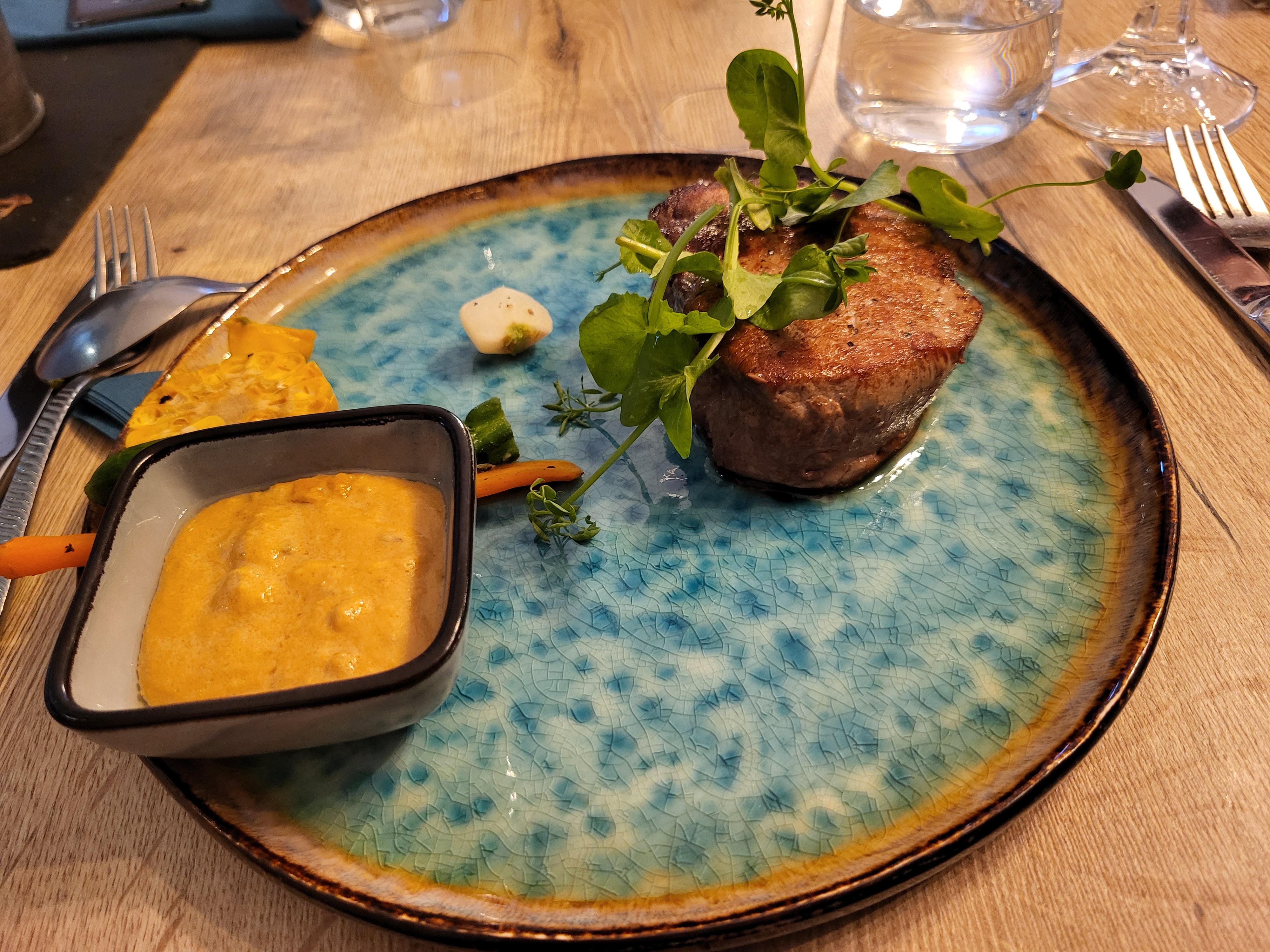 Un restaurant et un chef atypique , un service agréable, une cuisine copieuse, des produits locaux avec un prix plus que raisonnable, je recommande +++ !