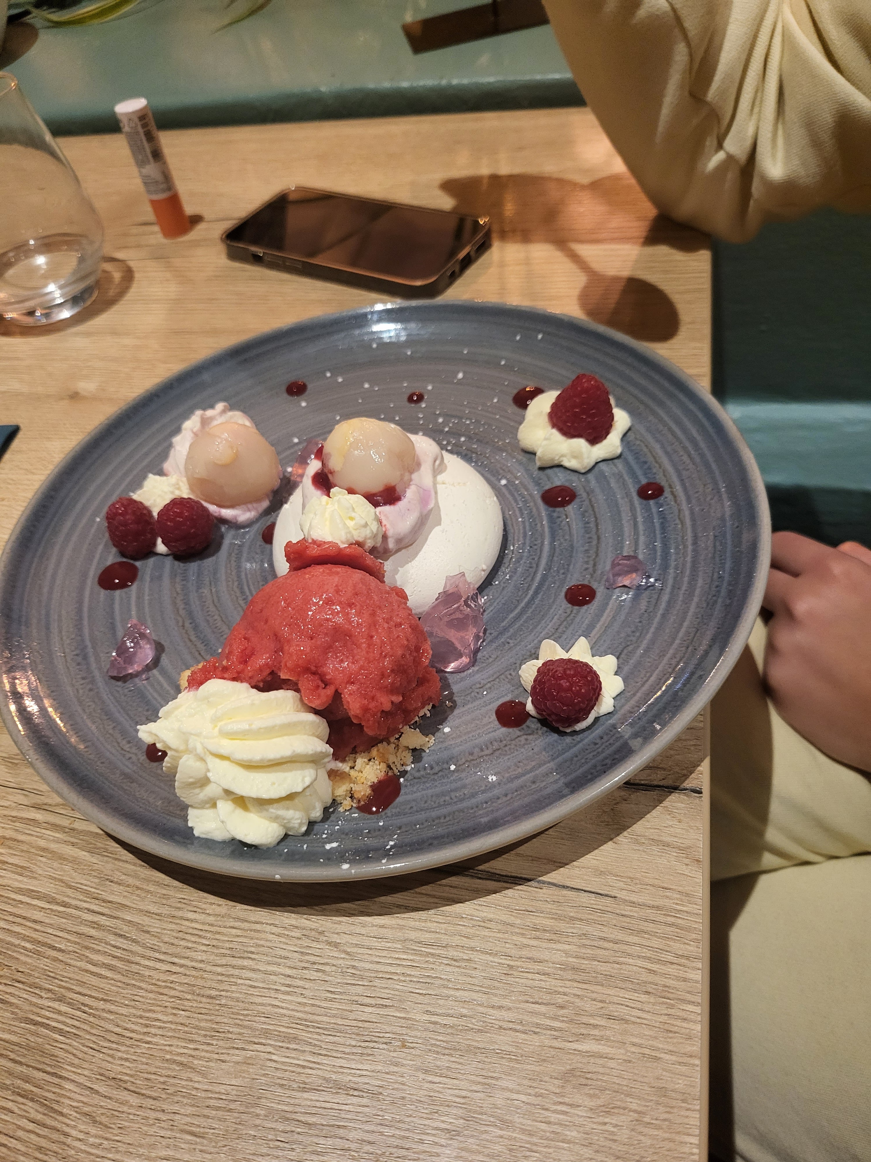 L’endroit est calme, on ne se sent pas oppressé lorsque l’on mange. Les ingrédients proposés sont bons, les assiettes sont bien décorées, la qualité est à 4 sur 5 étoiles car il reste des choses à améliorer, par exemple sur le risotto saint Jacques, qui était compact. Le dessert par contre était très bon et frais !