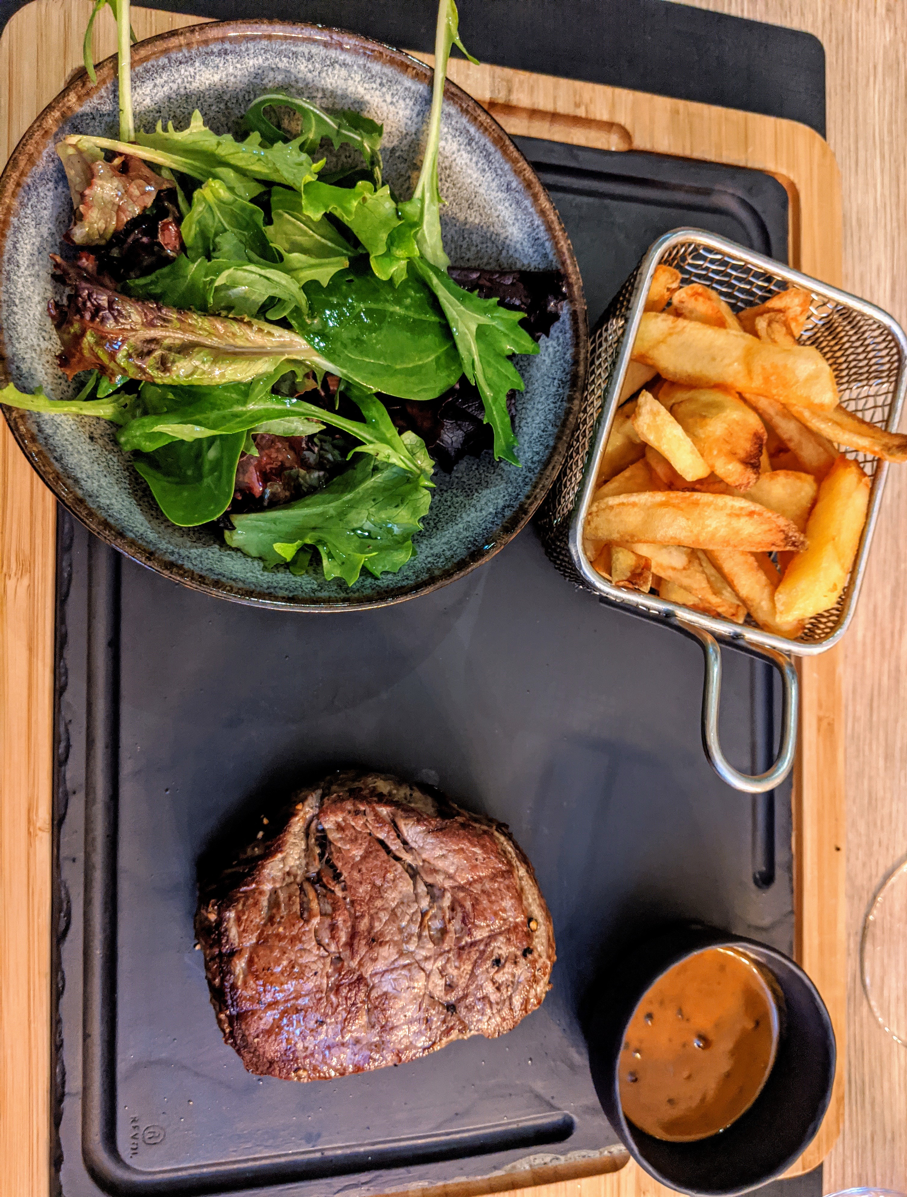 Agréablement surprise de ce petit restaurant local. L’attente était très courte pour les apéritif les plats ou les dessert. Serveurs à l’écoute et patient concernant les demandes personnels. De plus la qualité de la viandes est juste incroyable je vous conseils également les frites cuites dans la graisse de porc. Mon copain et moi même avons adorer ce restaurant et espérons y retourner bientôt en vu de la qualité