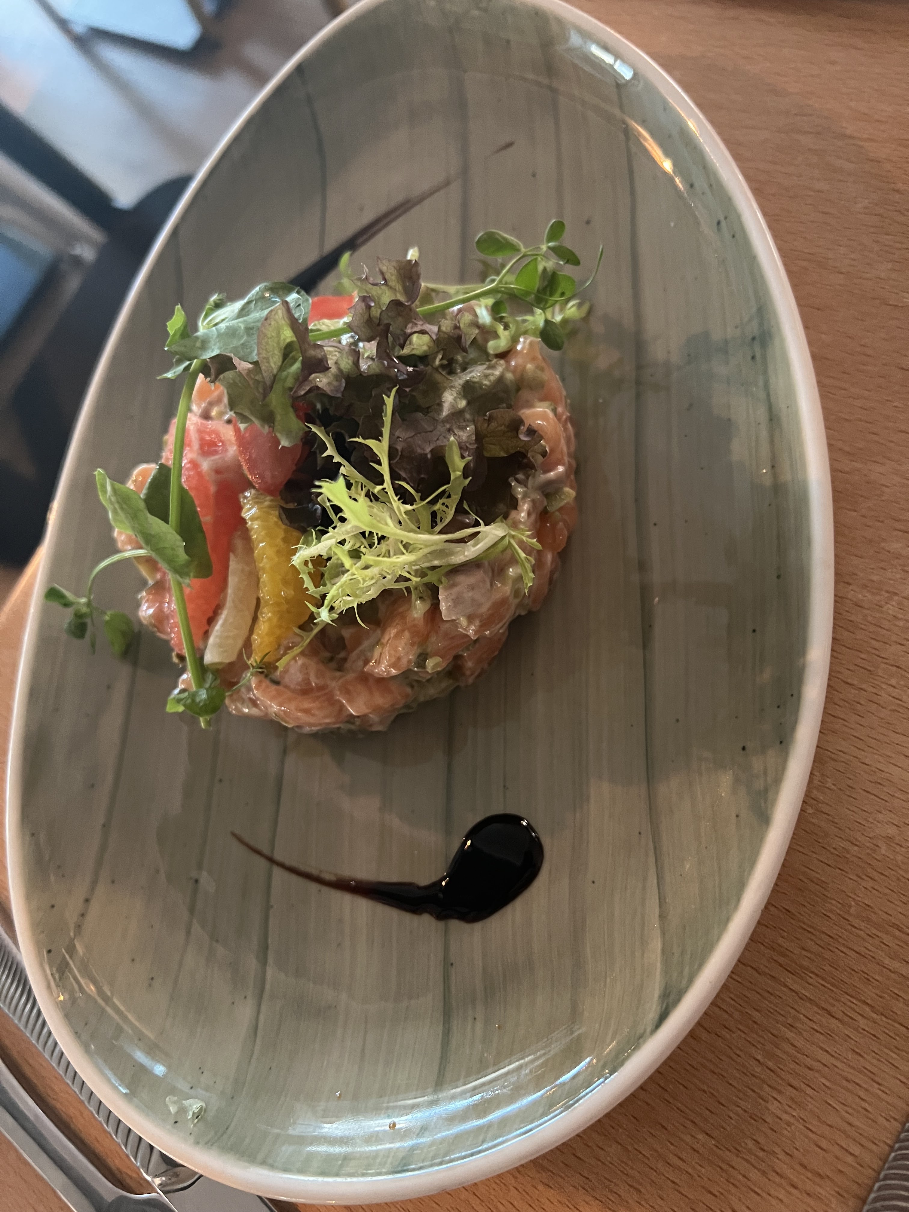 Franchement pas mal. Carte varié. Tarif correct. Bonne nourriture. Personnel aimable. (~40€ par personne : entrée plat dessert boisson) (photo d'une entrée)