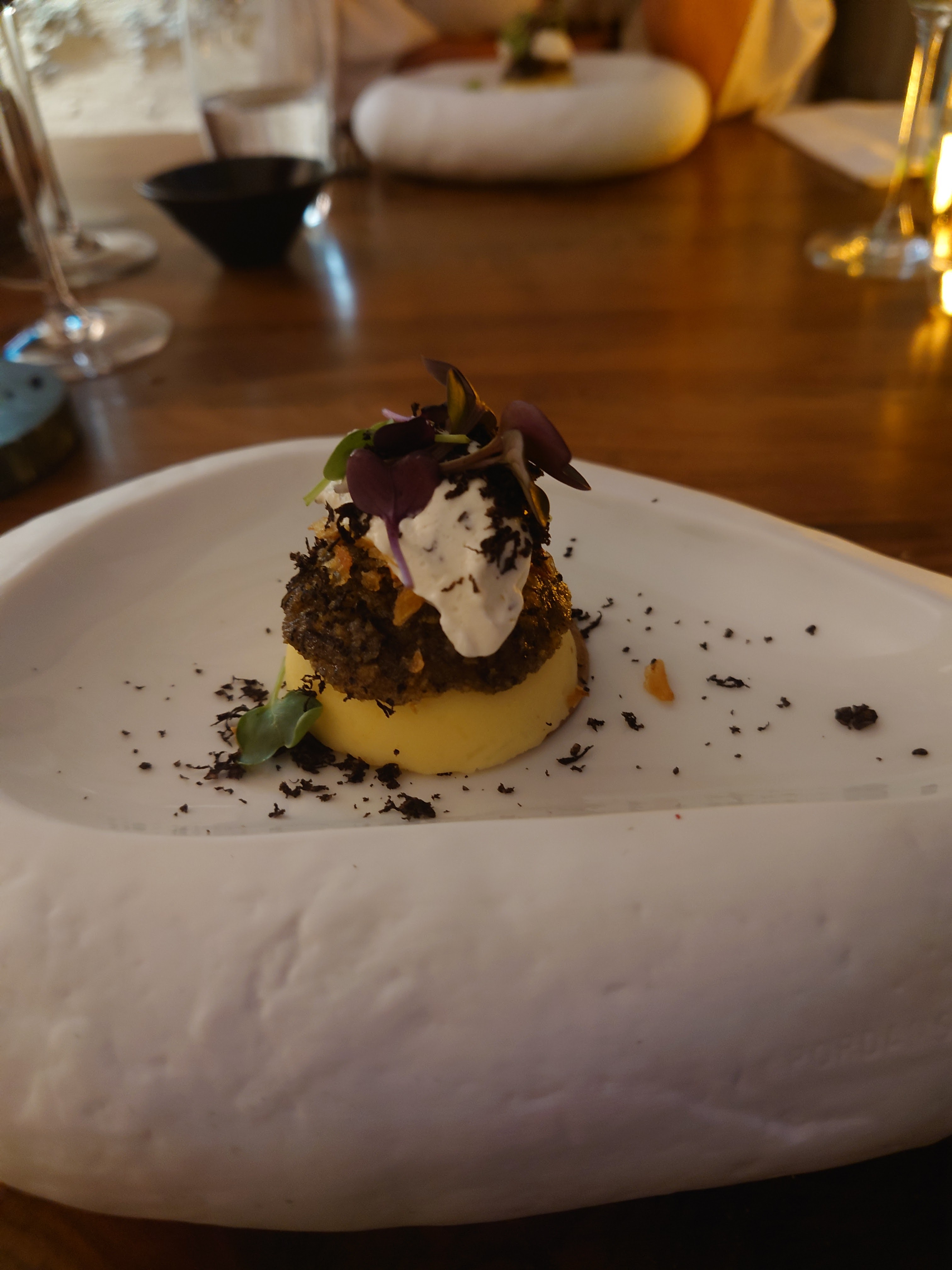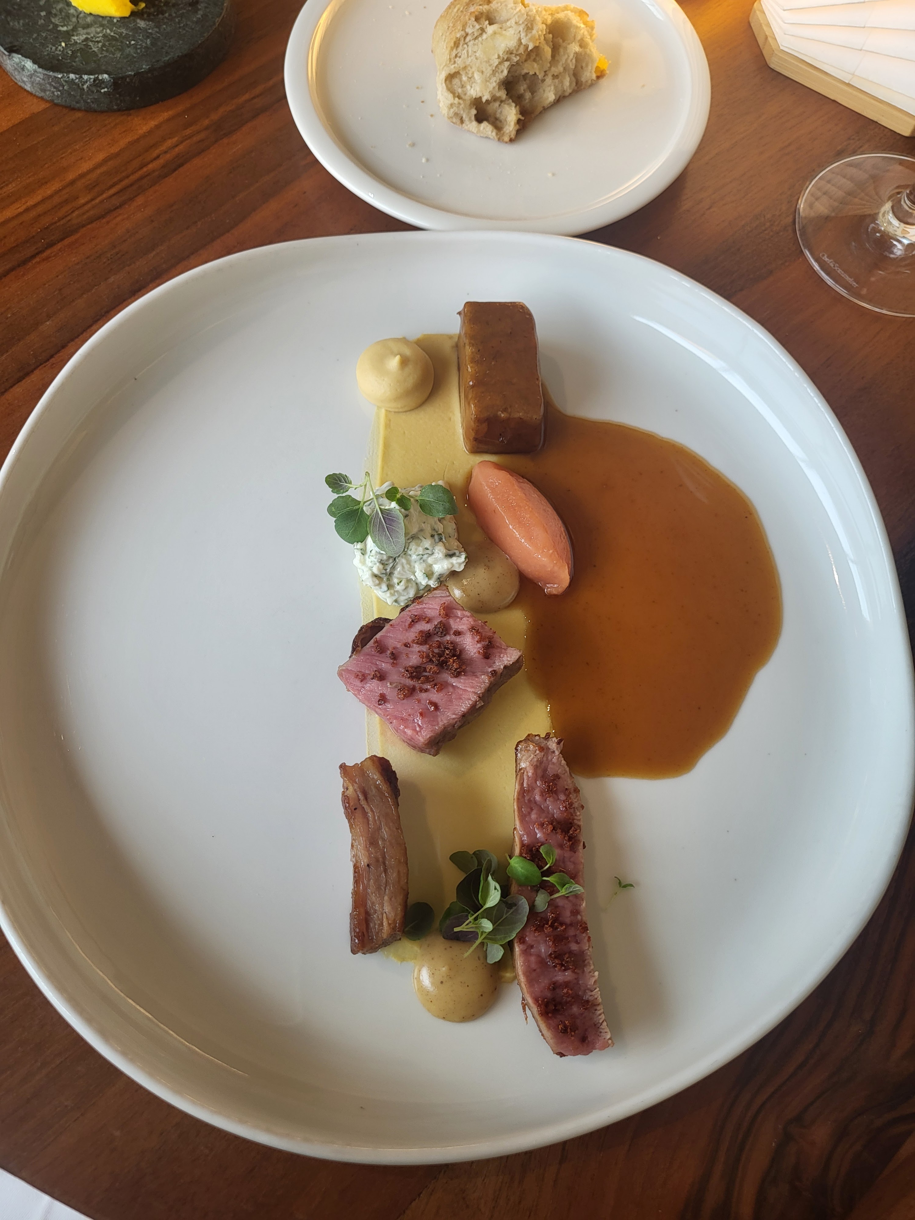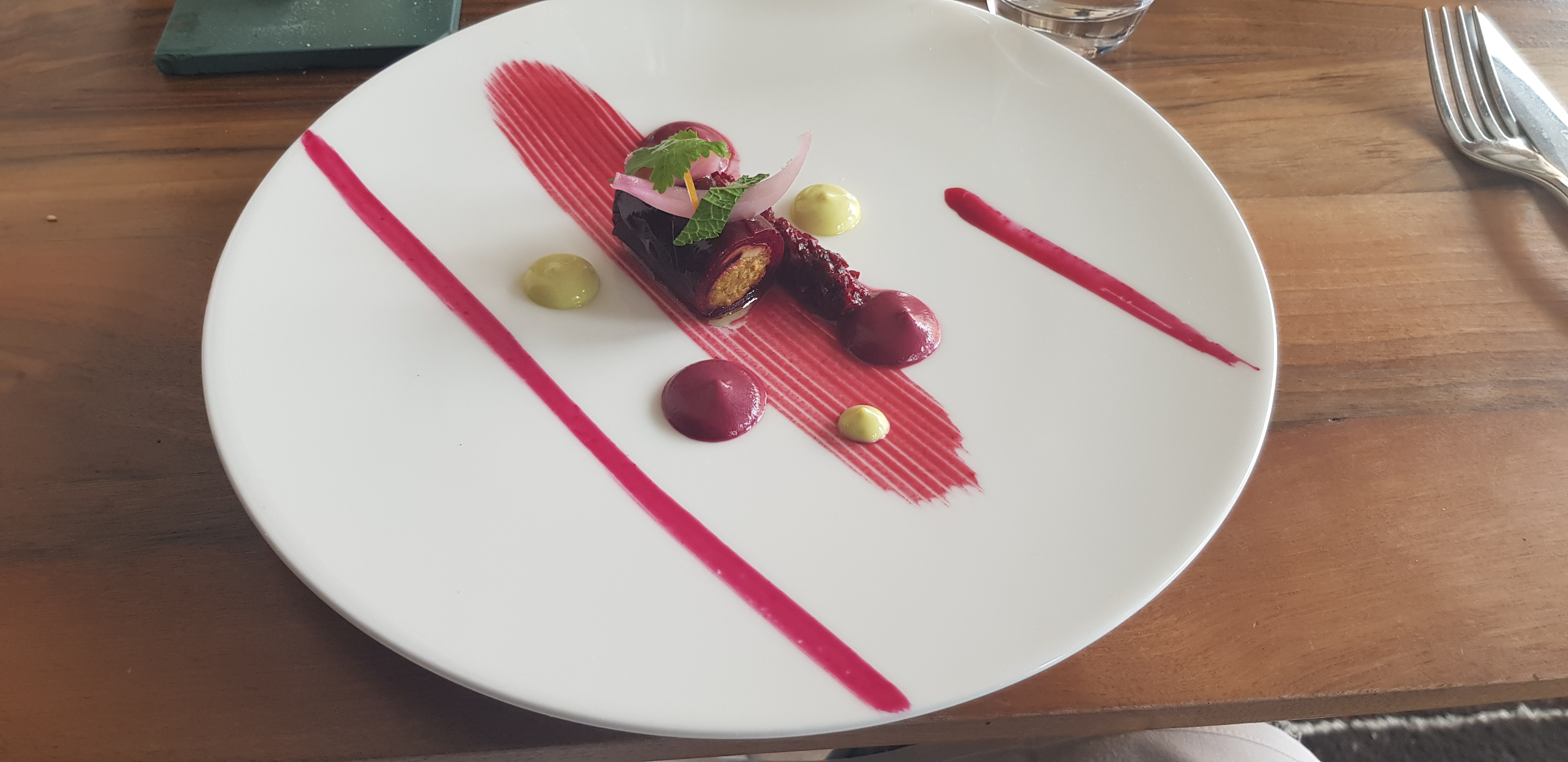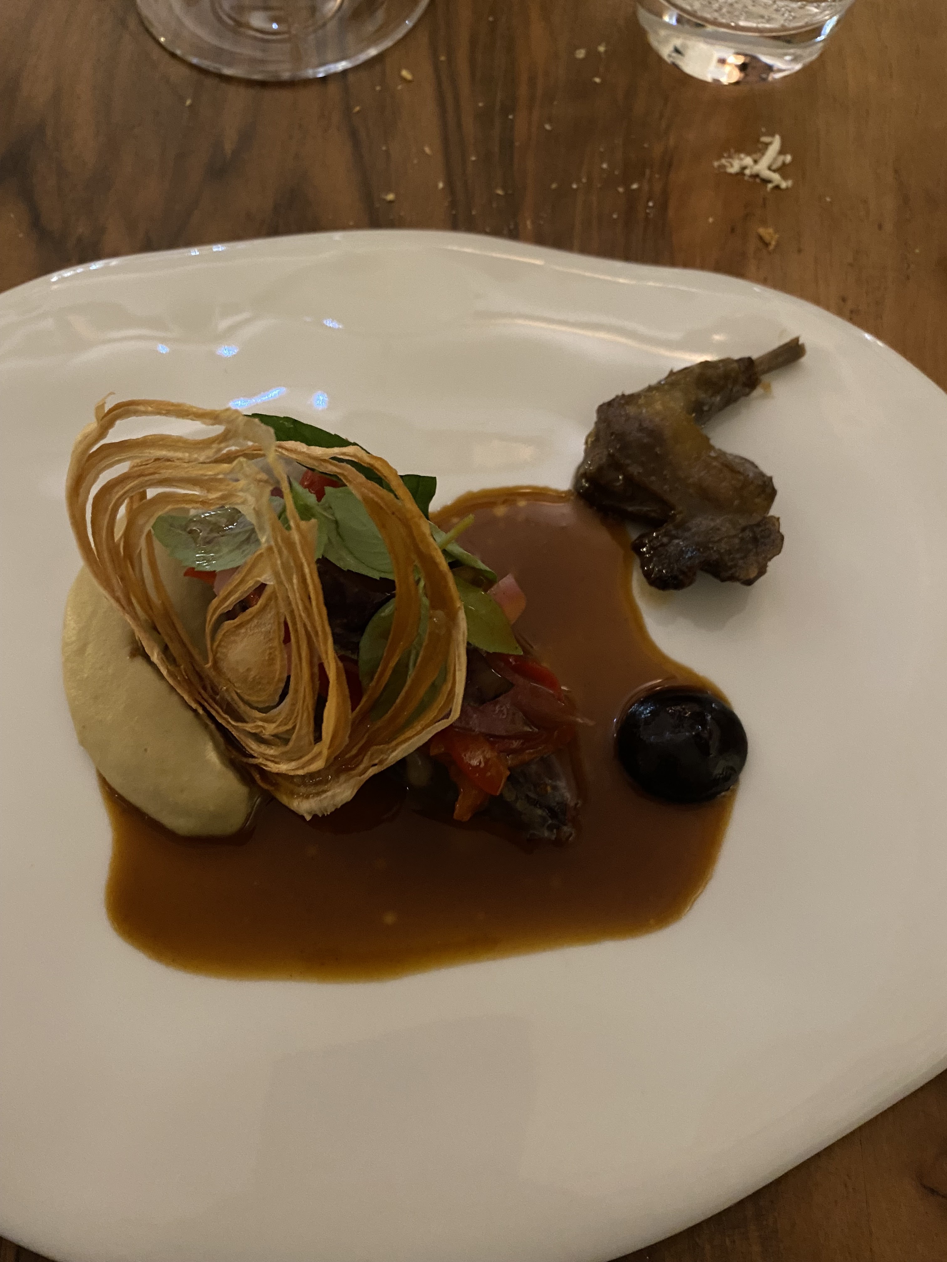 Tout simplement l’un des repas les plus agréables de notre longue vie (heureusement riche en voyages). Créativité, subtilité, harmonie visuelle et envolée parfaite des vins locaux - proche de la perfection avec un service à la hauteur.