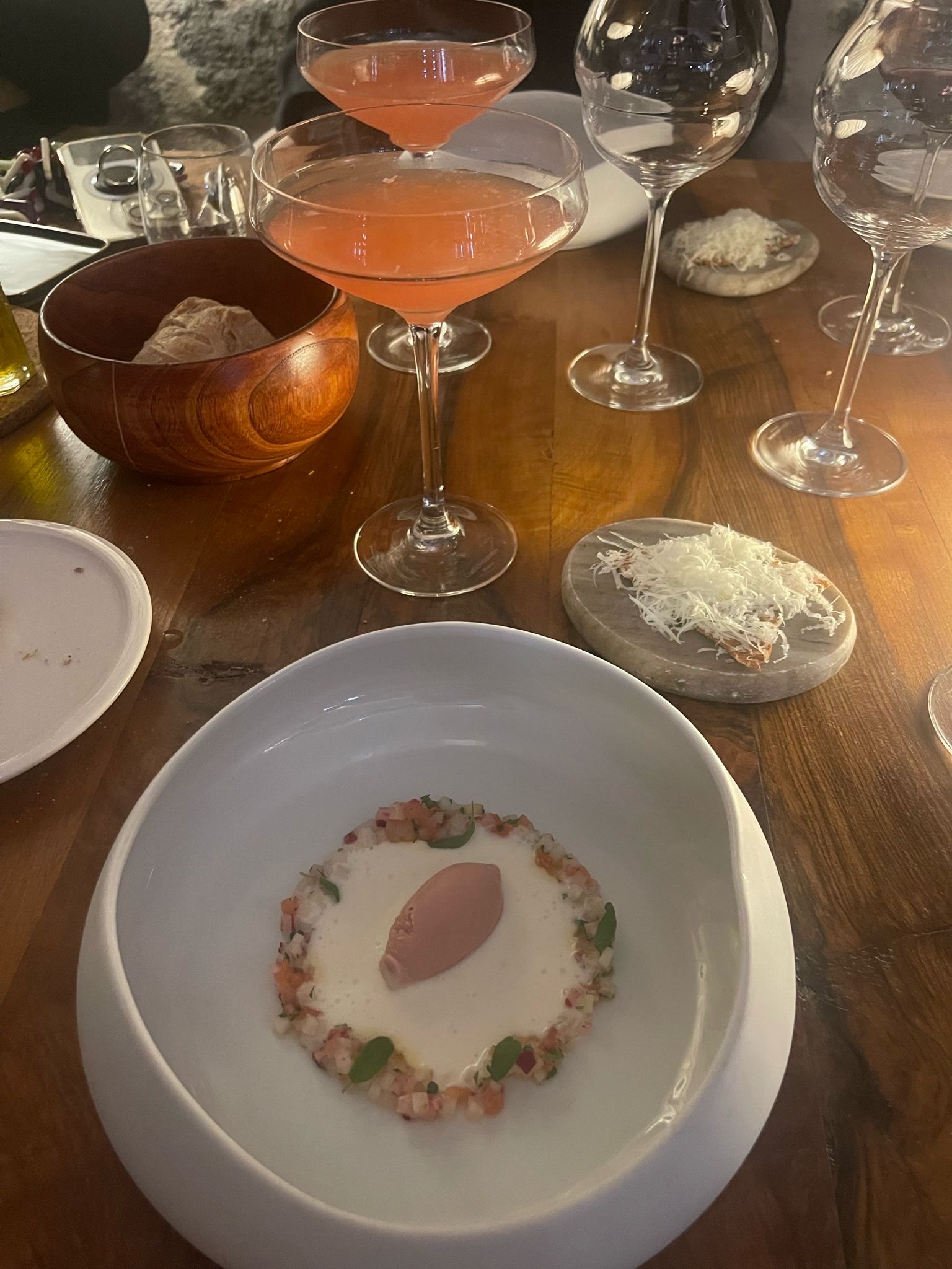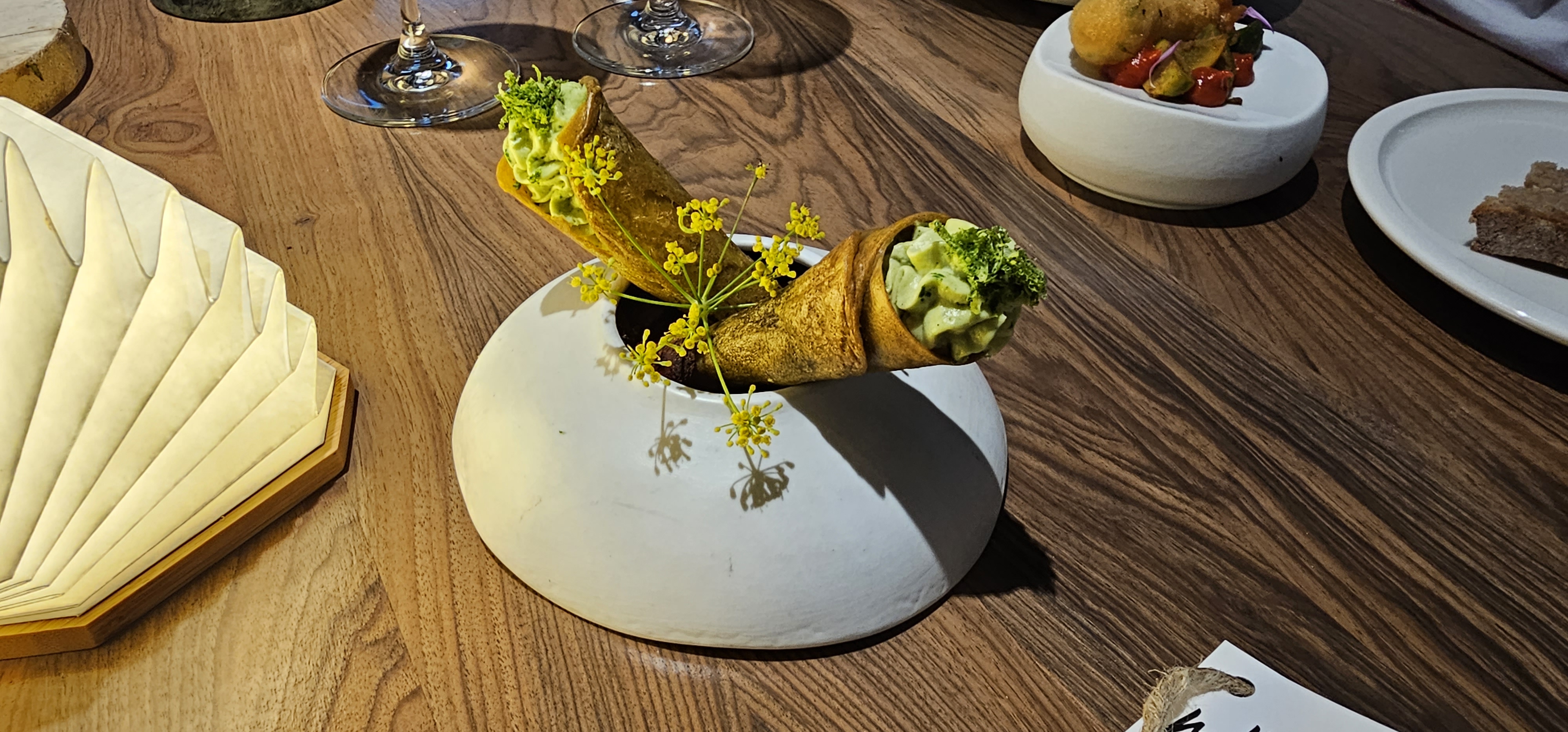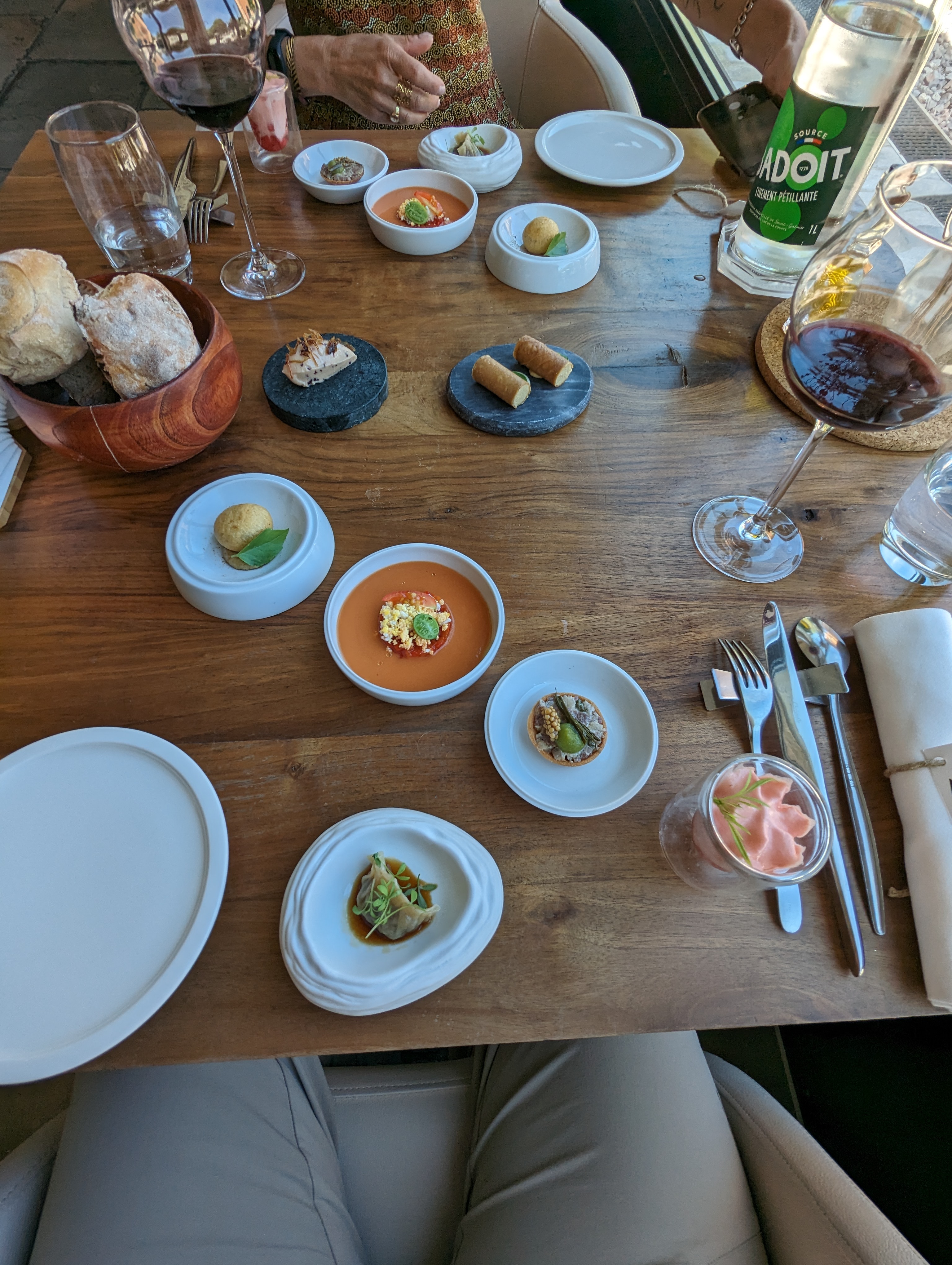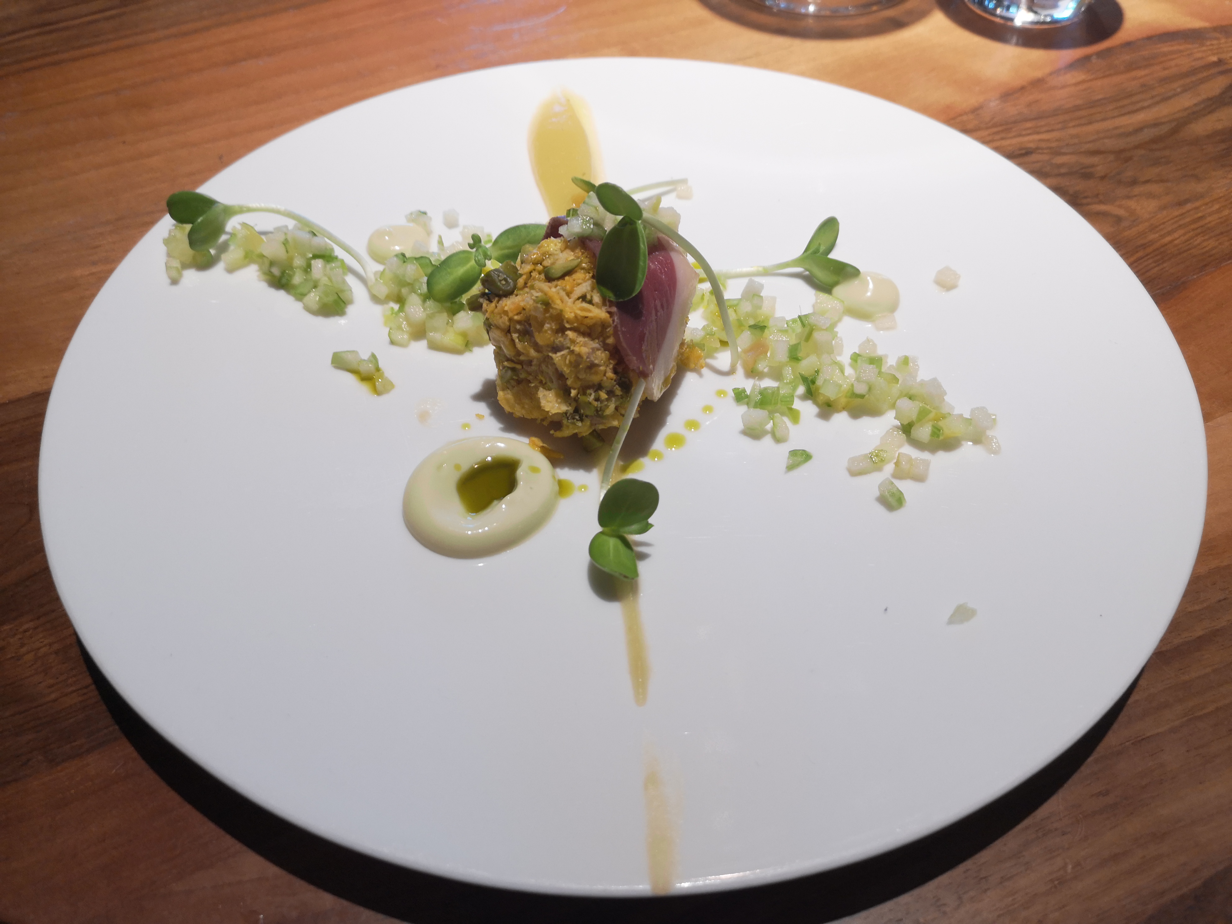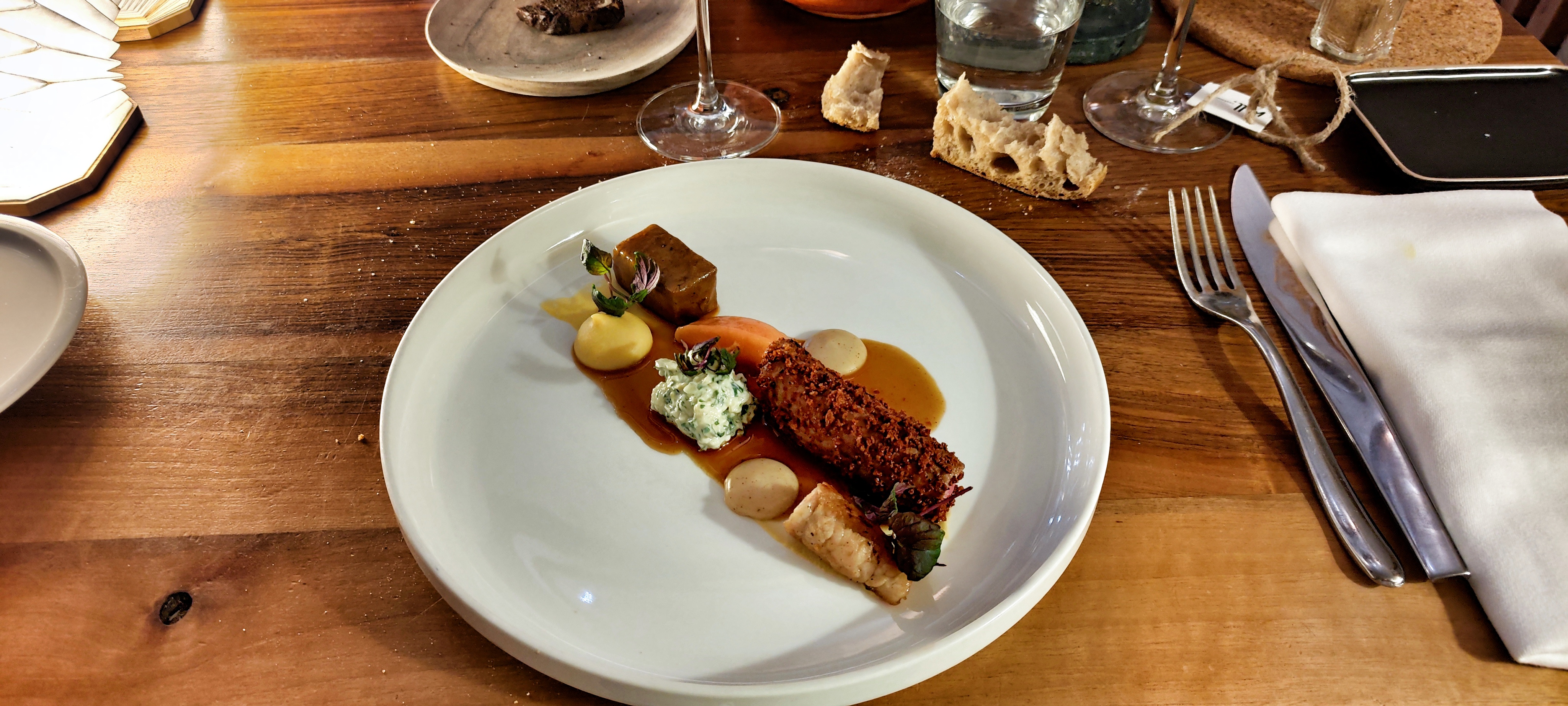 Tout simplement l’un des repas les plus agréables de notre longue vie (heureusement riche en voyages). Créativité, subtilité, harmonie visuelle et envolée parfaite des vins locaux - proche de la perfection avec un service à la hauteur.