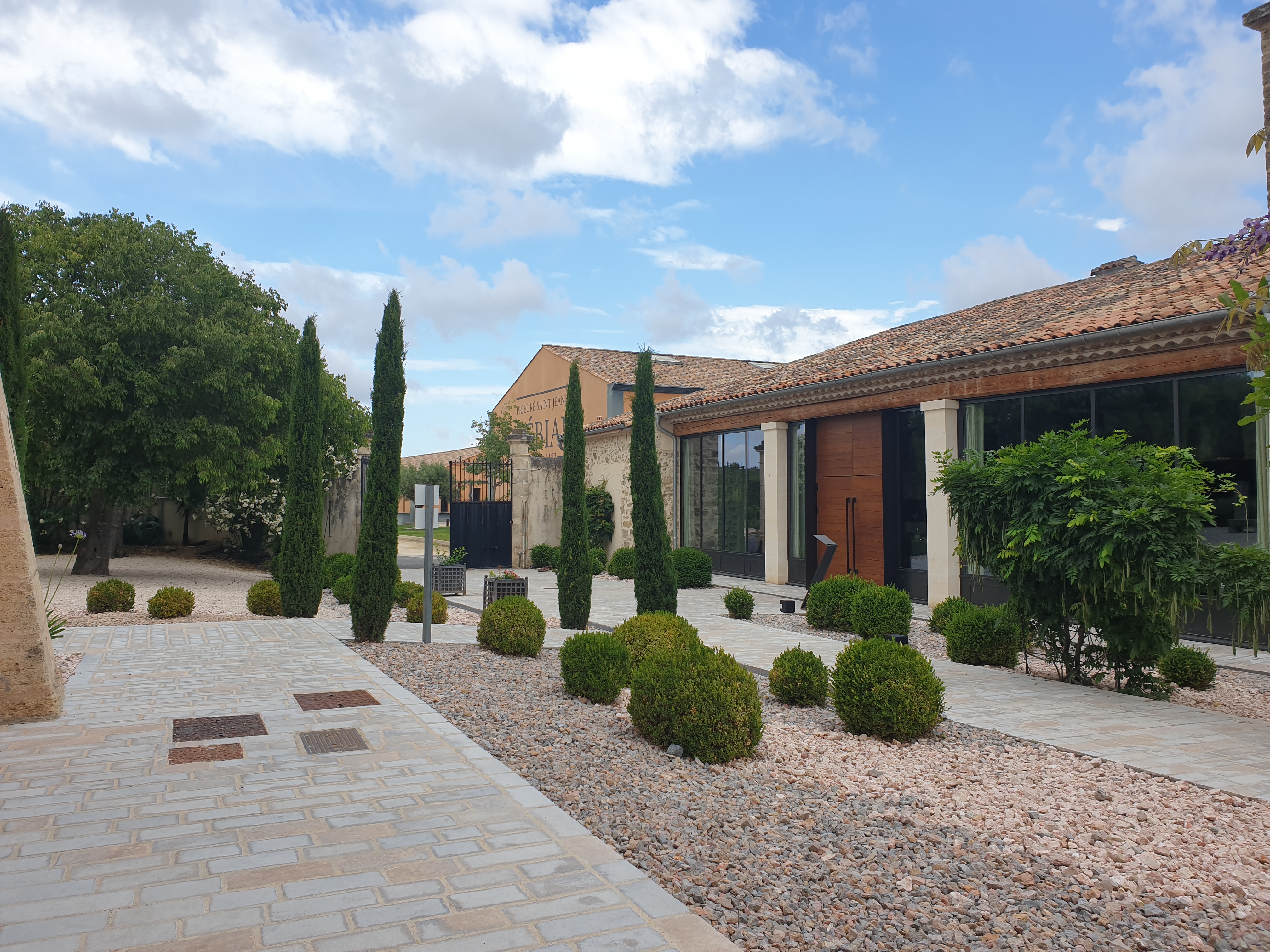Site du prieuré rénové avec goût, salle de restaurant contemporaine où nous avons déjeuné. Service impeccable et très aimable. Nous nous sommes régalés des amuses bouche au dessert avec un accord vin classique et local
