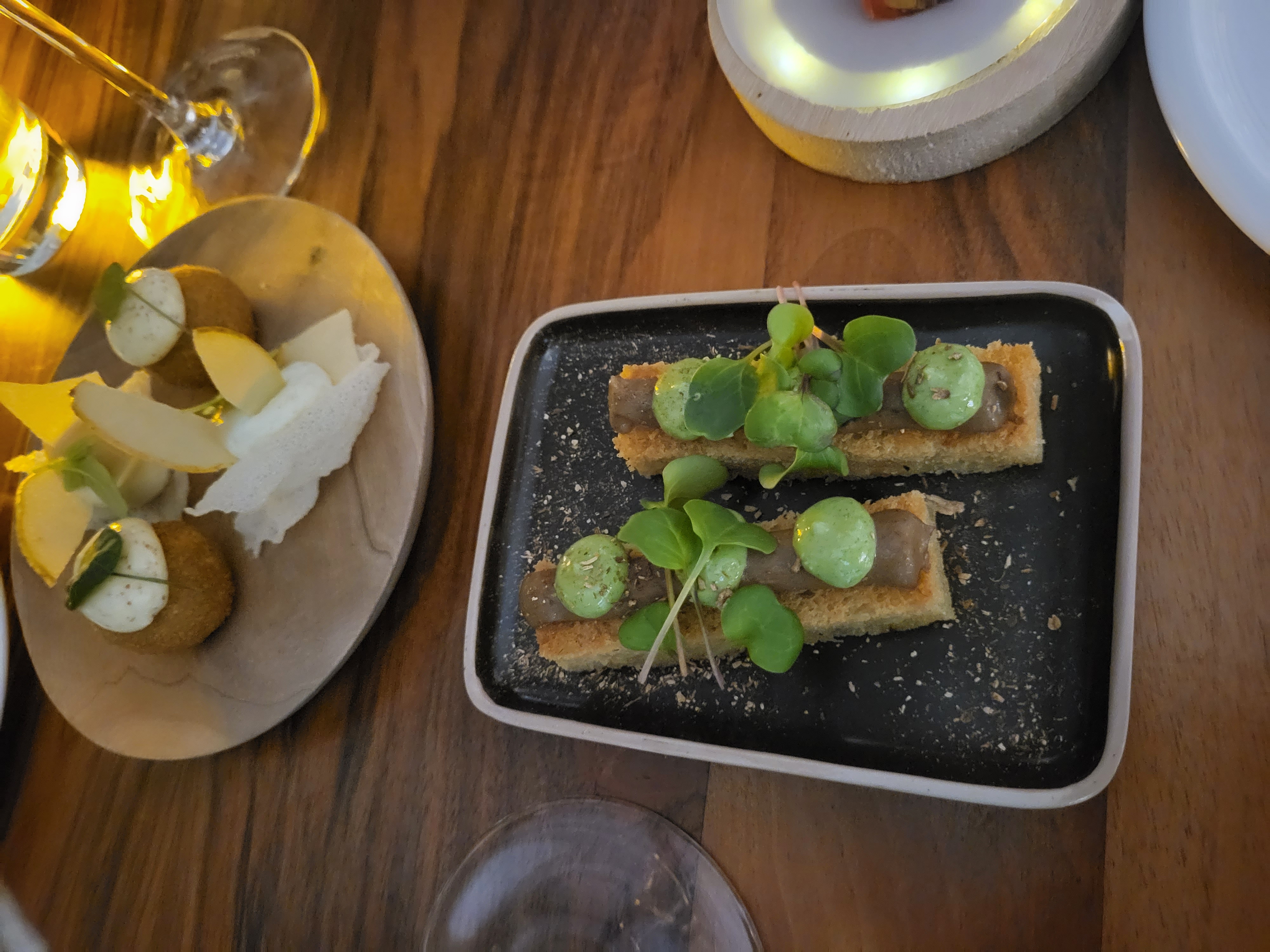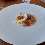 Nous avons dîné dans ce fabuleux restaurant en couple. Nous nous sommes laissés porter par l’inspiration du chef et n’avons pas été déçus. Chaque plat est un délice et réserve une surprise gustative ! Le service est très soigné et l’accueil est chaleureux.